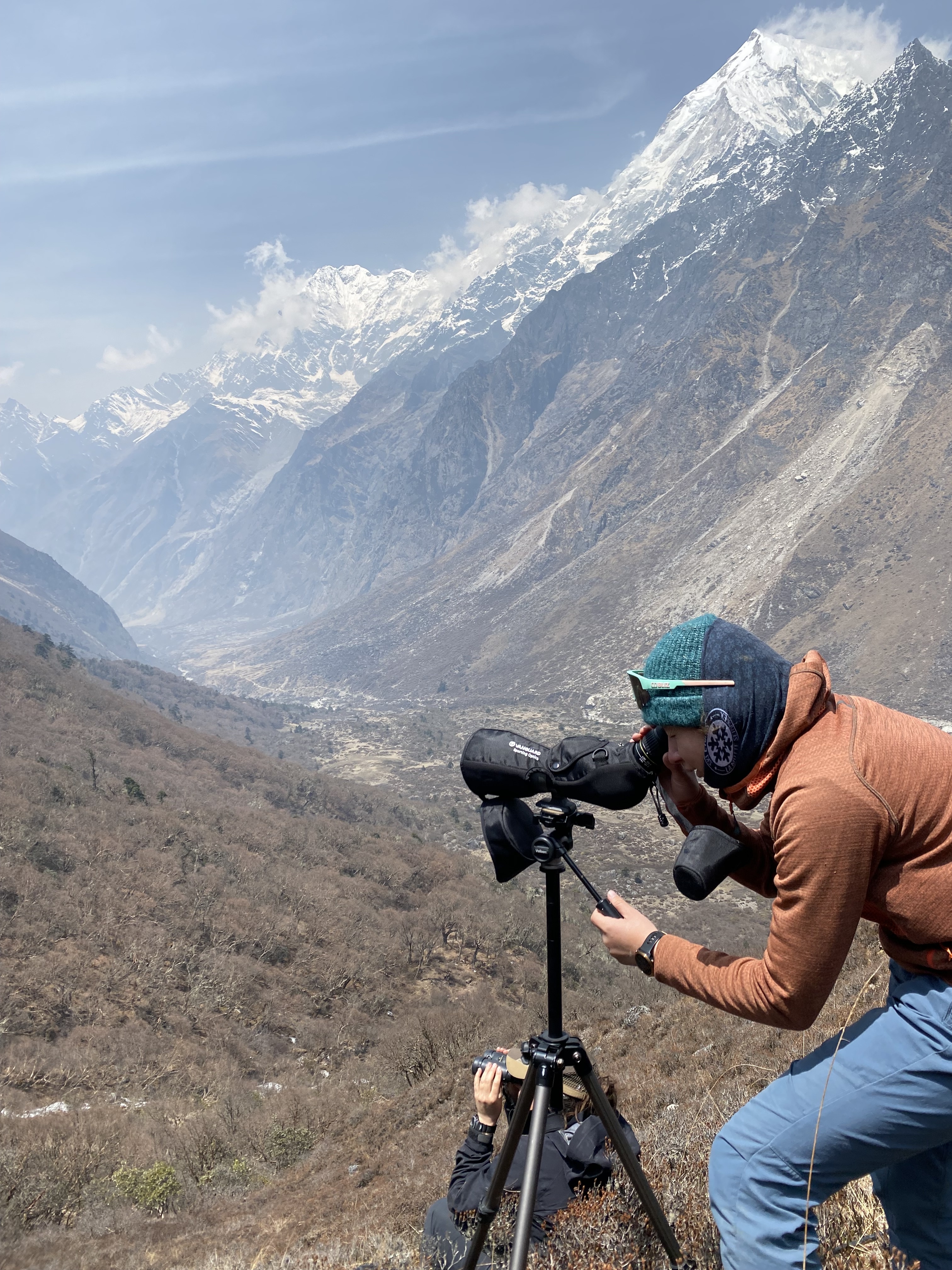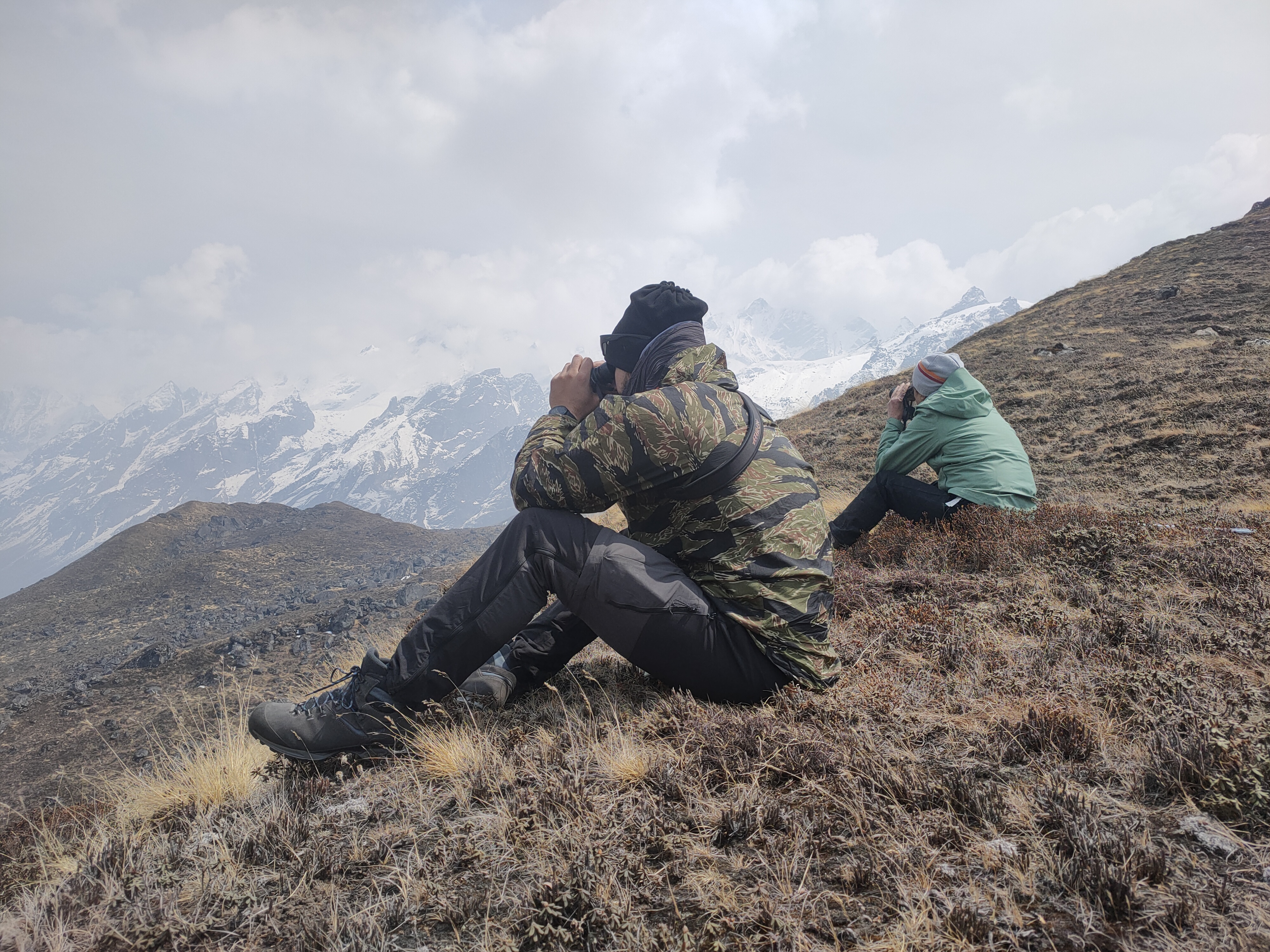 Aujourd’hui première journée de prospection sur les traces de la panthère des neiges. Nous avons effectué un transect au dessus de Kyanjin (3800m) et avons réalisé le premier 4000m pour certain !