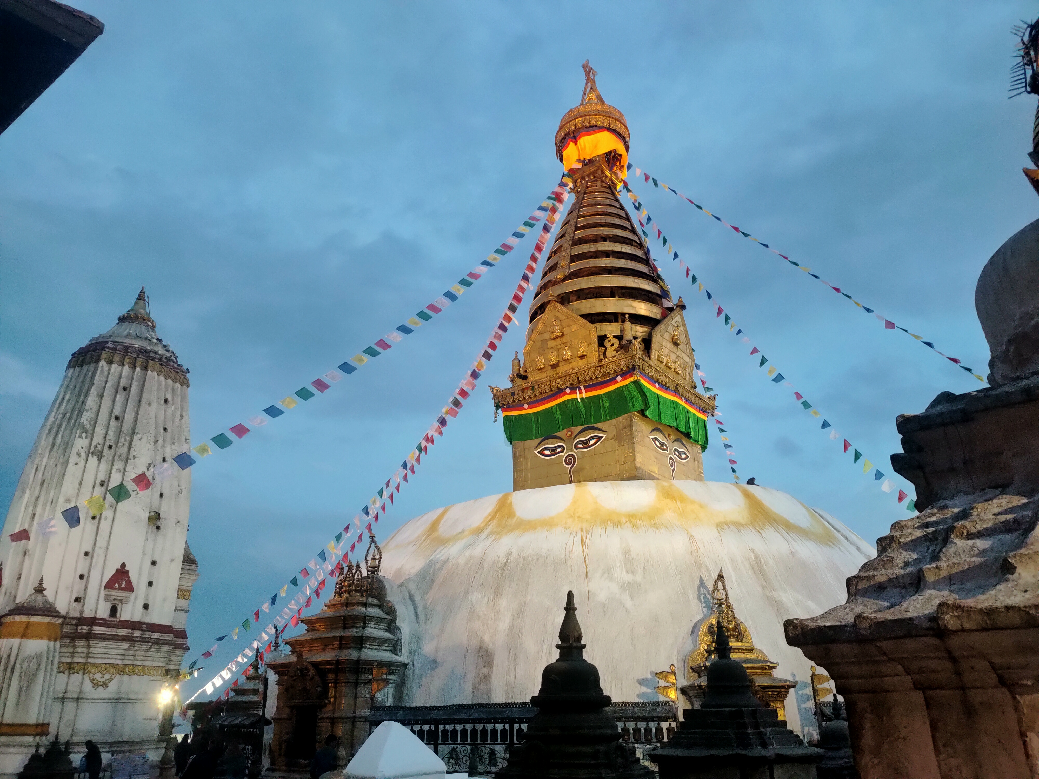 Après une douche et un temps de récupération bien mérité, direction le plus haut temple de la ville : « Swyambunath » ou « temple des singes » car de très nombreux primates y habitent, notamment les Macaques resus (Macaca mulatta), très bien habitués (trop parfois) à la présence de l’homme.