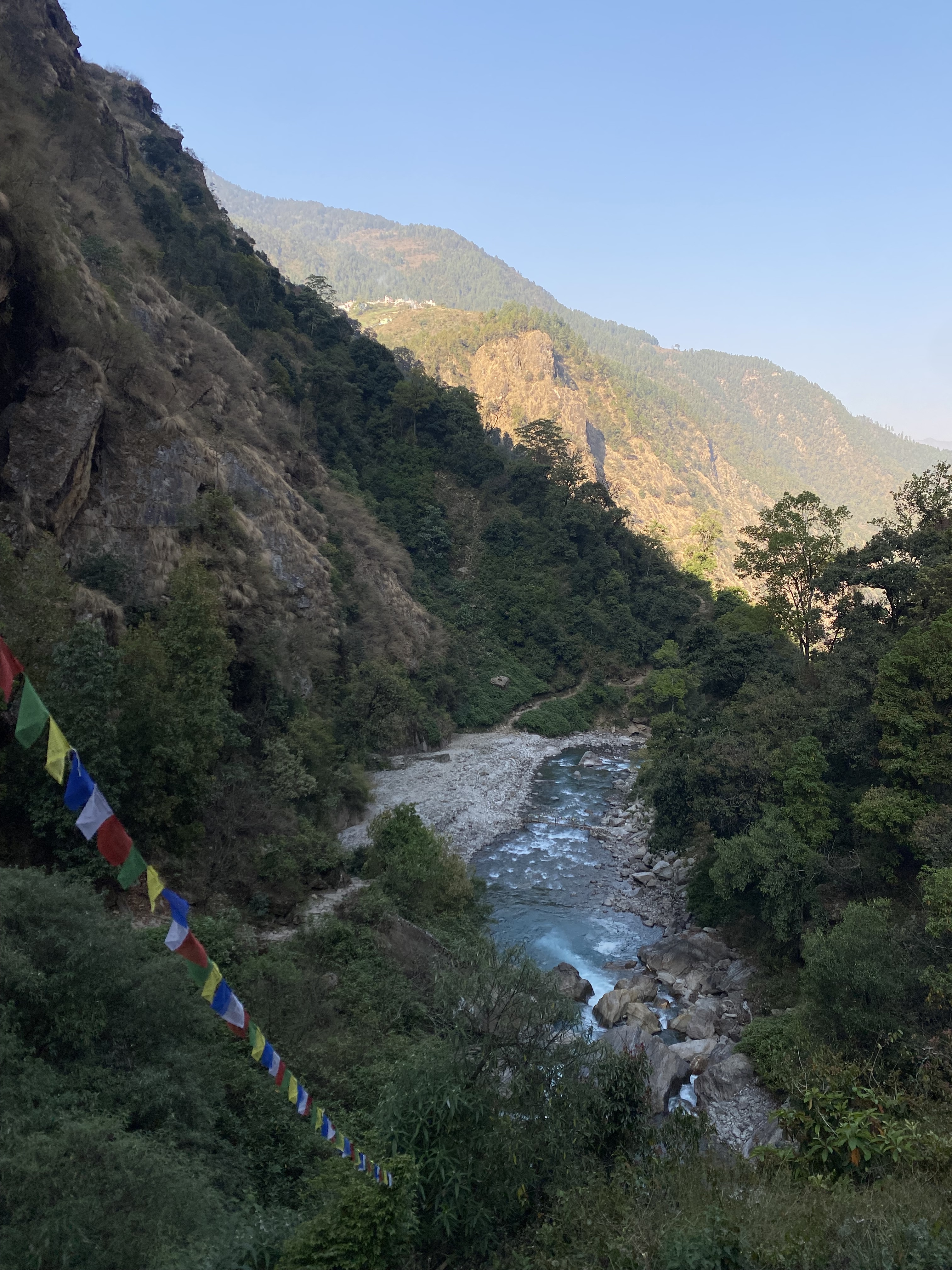 Après deux heures de marches et quelques premières observations de Langur gris (Semnopithecus entellus) (un primate), nous arrivons à Poïro, une petite guest House perchée juste au-dessus de la rivière...