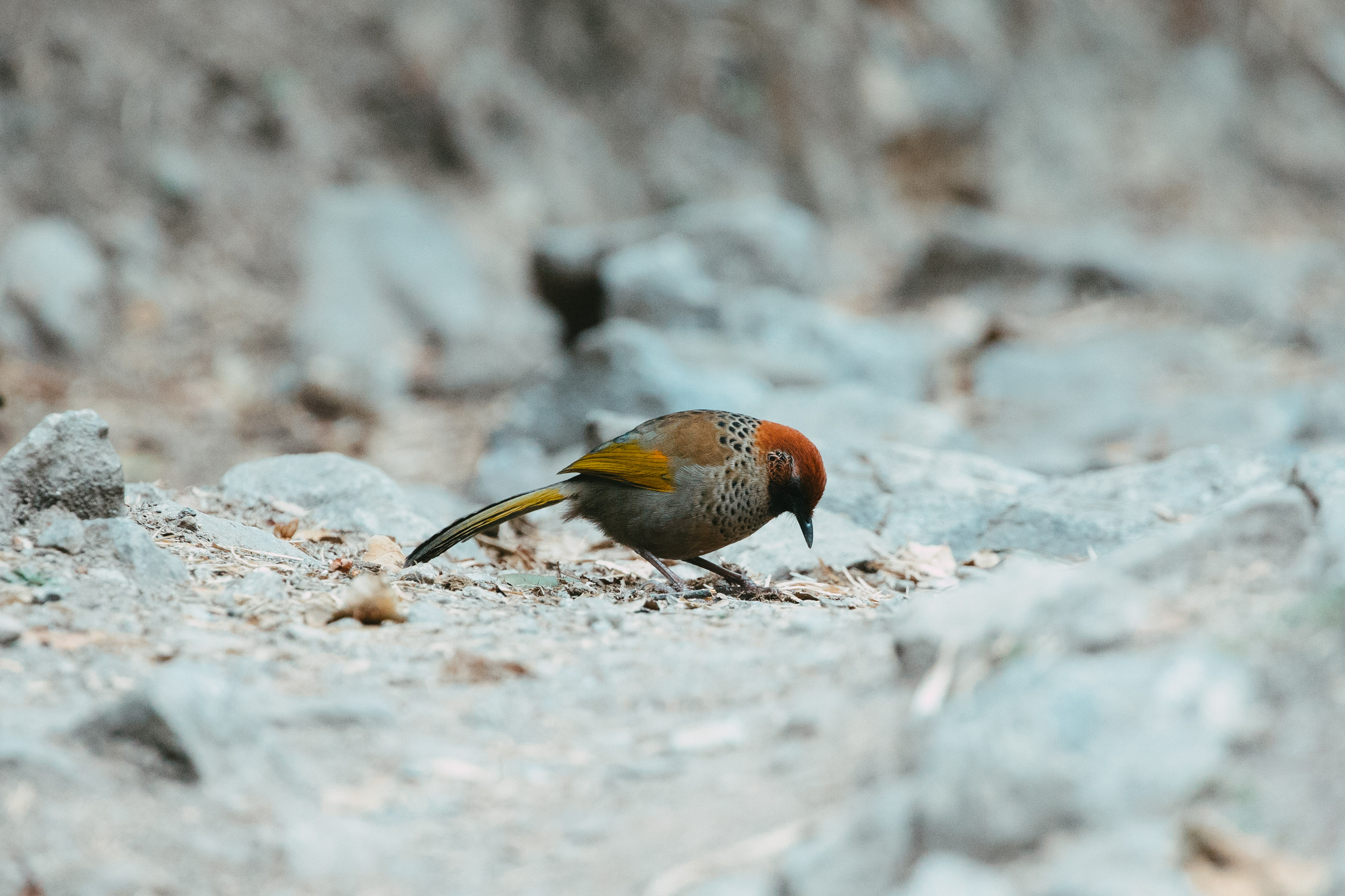 Départ à 7h aujourd’hui ! Après 20 minutes de marche nous avons la chance de pouvoir observer un Pika (petit rongeur), un Muntjac et un magnifique corvidé la Pirolle à bec jaune ou Yellow-billed blue magpie (Urocissa flavirostris).