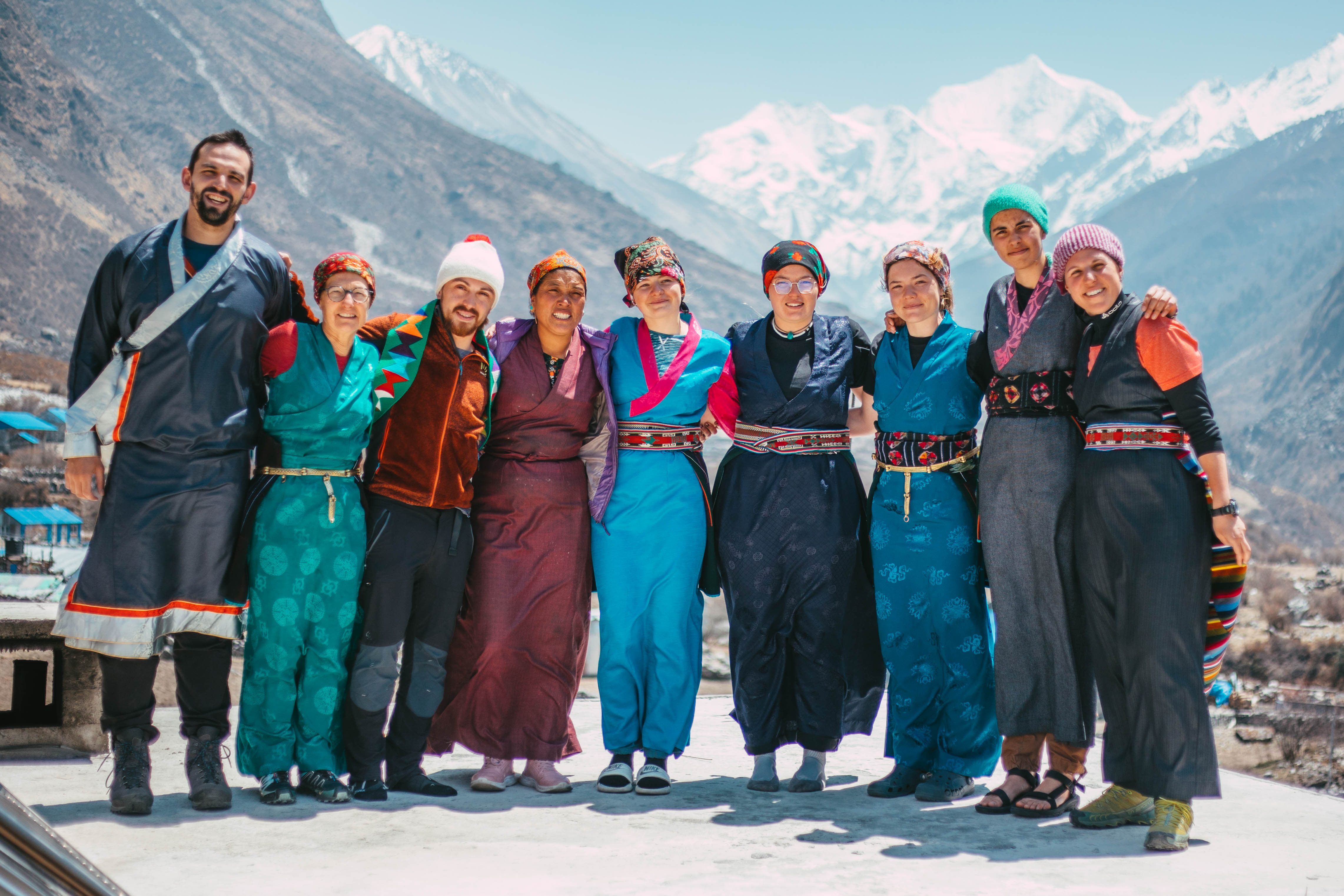 Nous rentrons au lodge, où Chhopema la propriétaire du lodge nous habille en tenues traditionnelle Tibétaines. Un super moment partagé par tous !