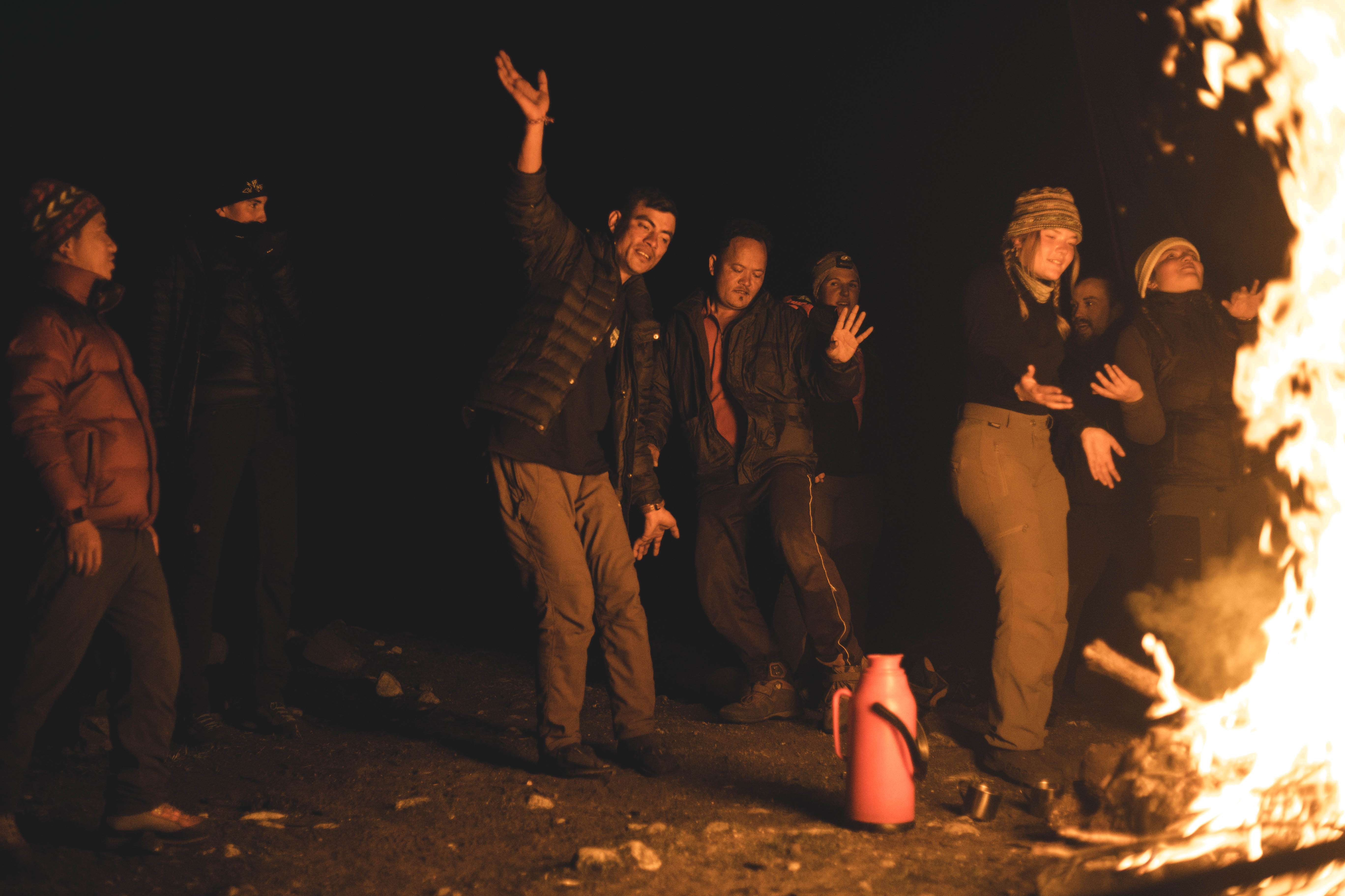 De retour au camp à 4280m, la soirée finit en chants et danses ! Place maintenant à une bonne nuit récupératrice !