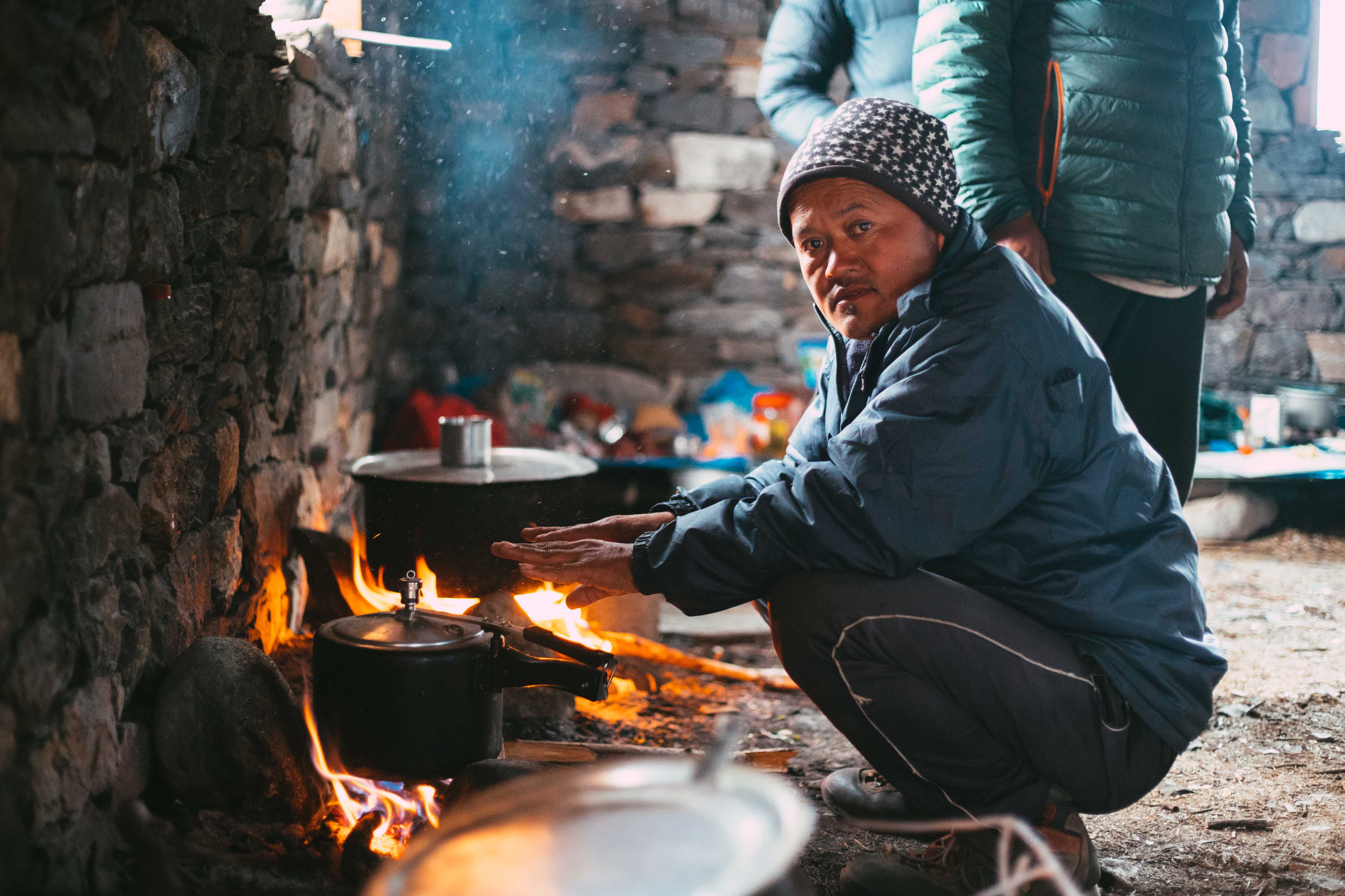 Après le petit déjeuner, le camp est rangé et tout notre équipe franco-népalaise repart.