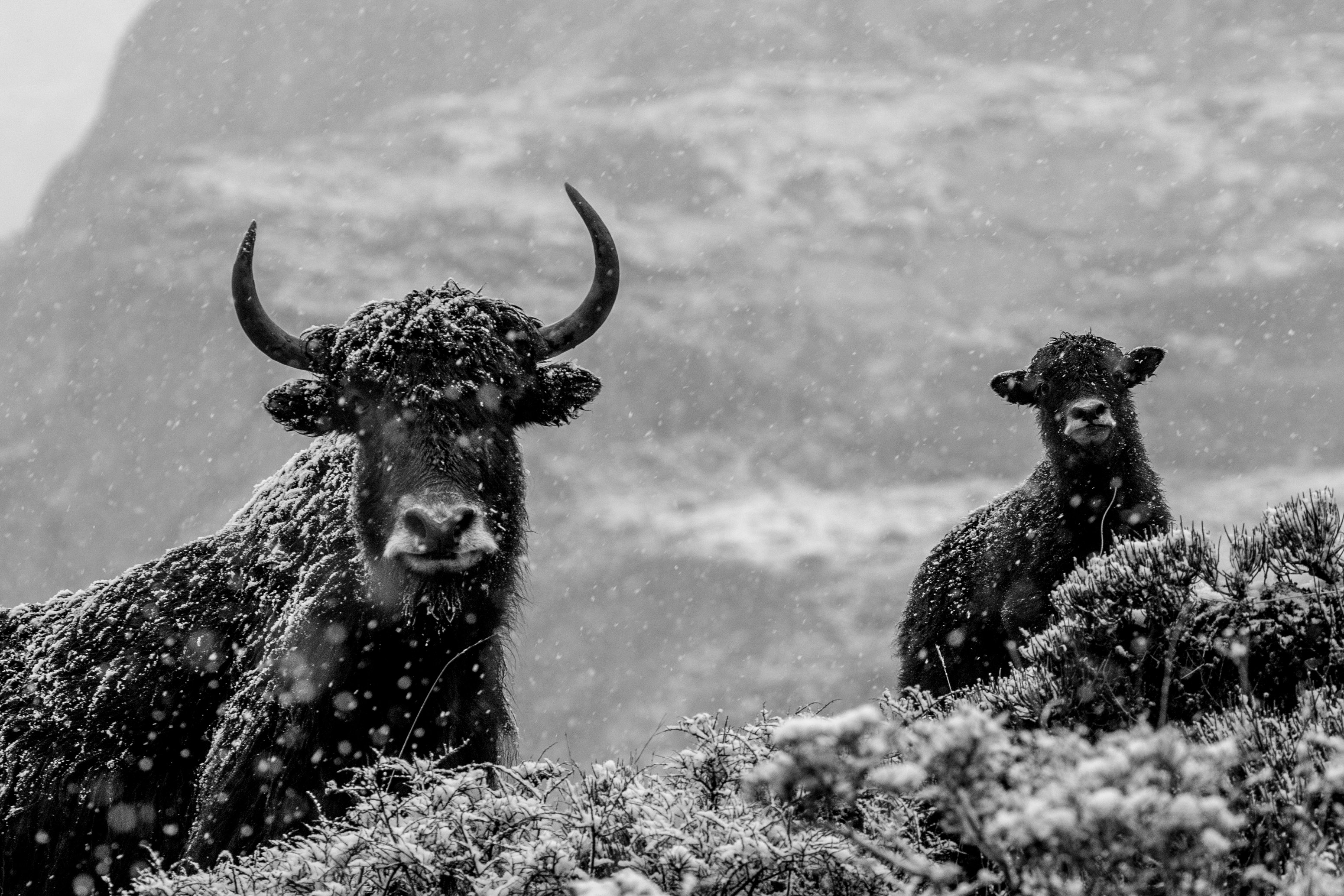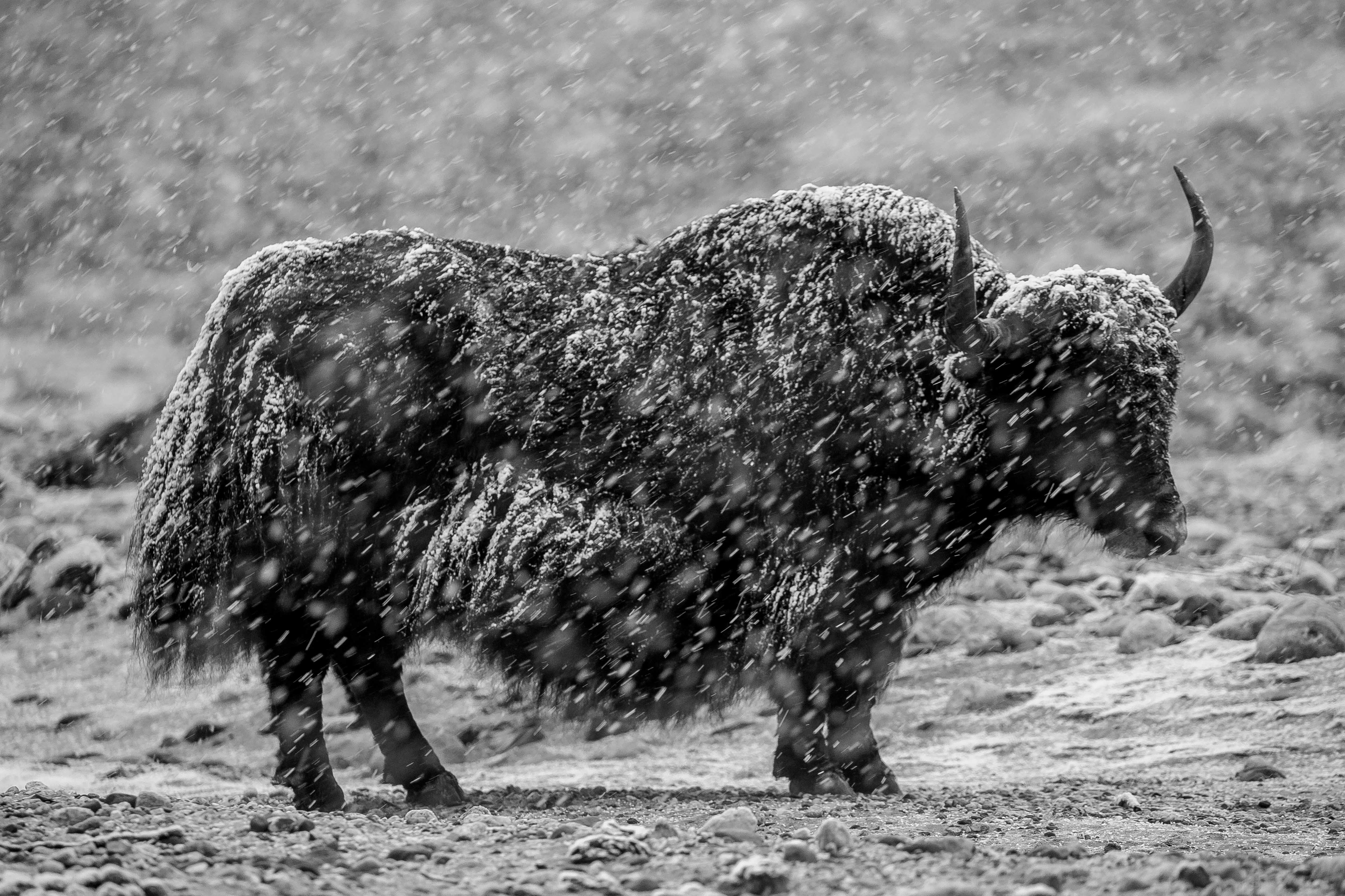 De retour au camp, Ryan et Clément prennent le temps de s’éloigner un peu afin de photographier les paysages, une petite bande de roselins ou un Yack curieux qui s’approche du camp, comme pour venir voir qui sont ces intrus sur son territoire.