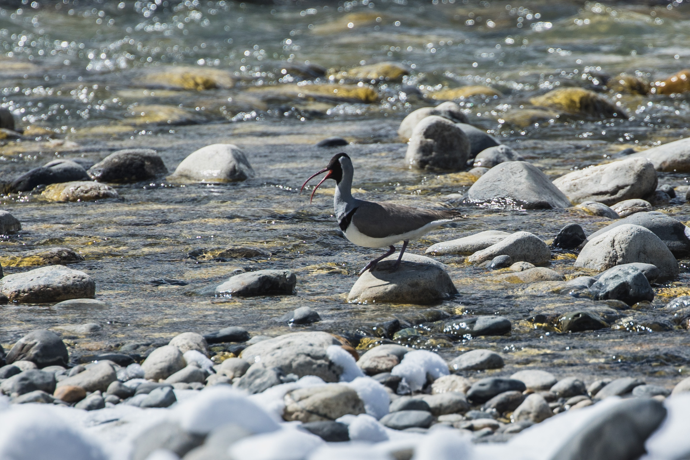 l’équipe a pu avoir la chance d’observer et d’entendre l’énigmatique Bec d’Ibis tibétain (Ibidorhyncha struthersii) qui vient passer en migration sur les rives de torrents glaciaires. On l’entend souvent plus qu’on ne le voit mais jusqu’au montagne d’Asie centrale où OSI l’observe sur un autre séjour au Kyrgyzstan on peut le découvrir.
