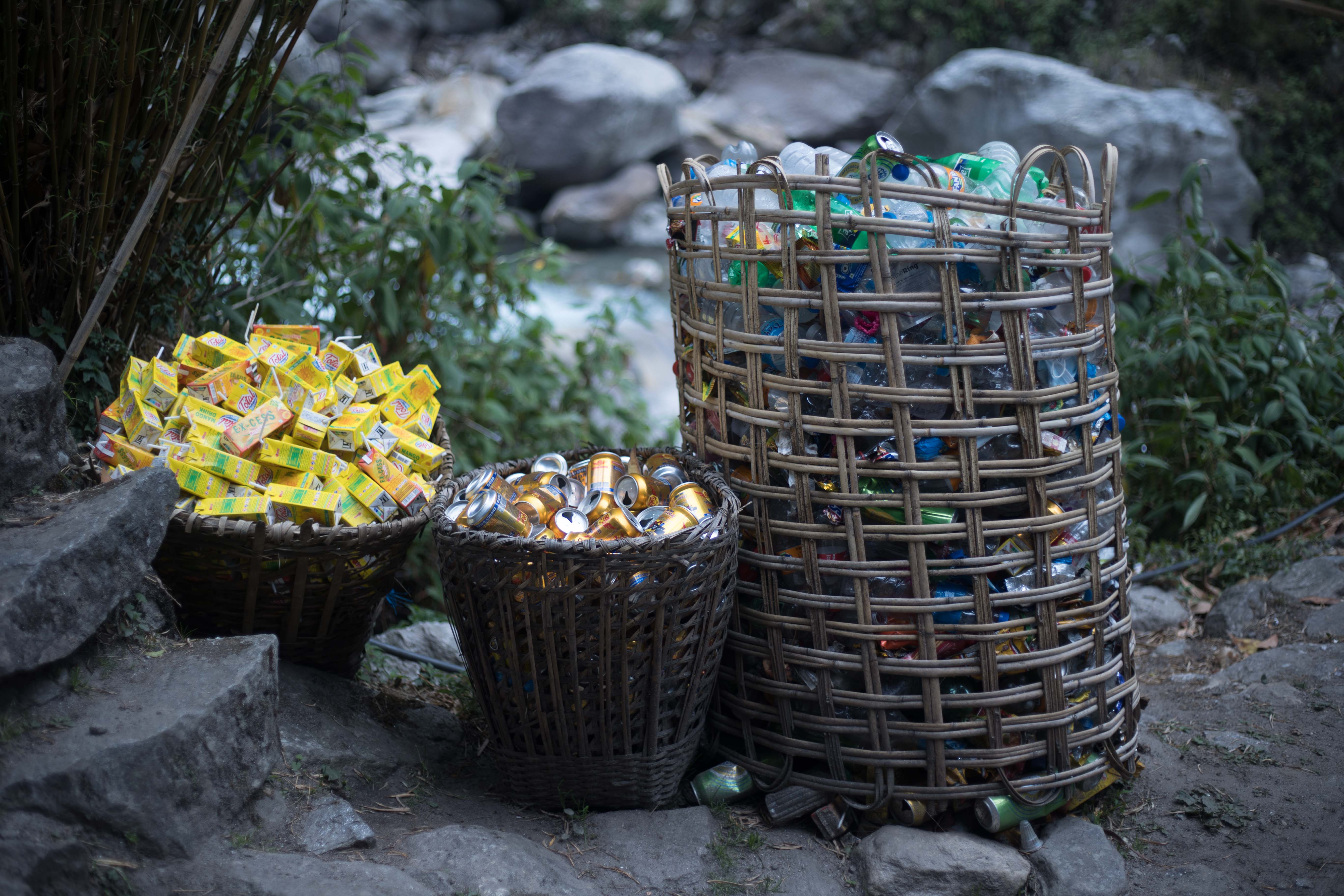 Plus de 200 litres de déchets supplémentaires sont ramassés sur la descente et descendus au premier village où il seront triés et transportés vers les usines de recyclage. La marche de la journée se termine sous une pluie tropicale. Après une douche presque chaude, l’équipe passe une dernière soirée en lodge.