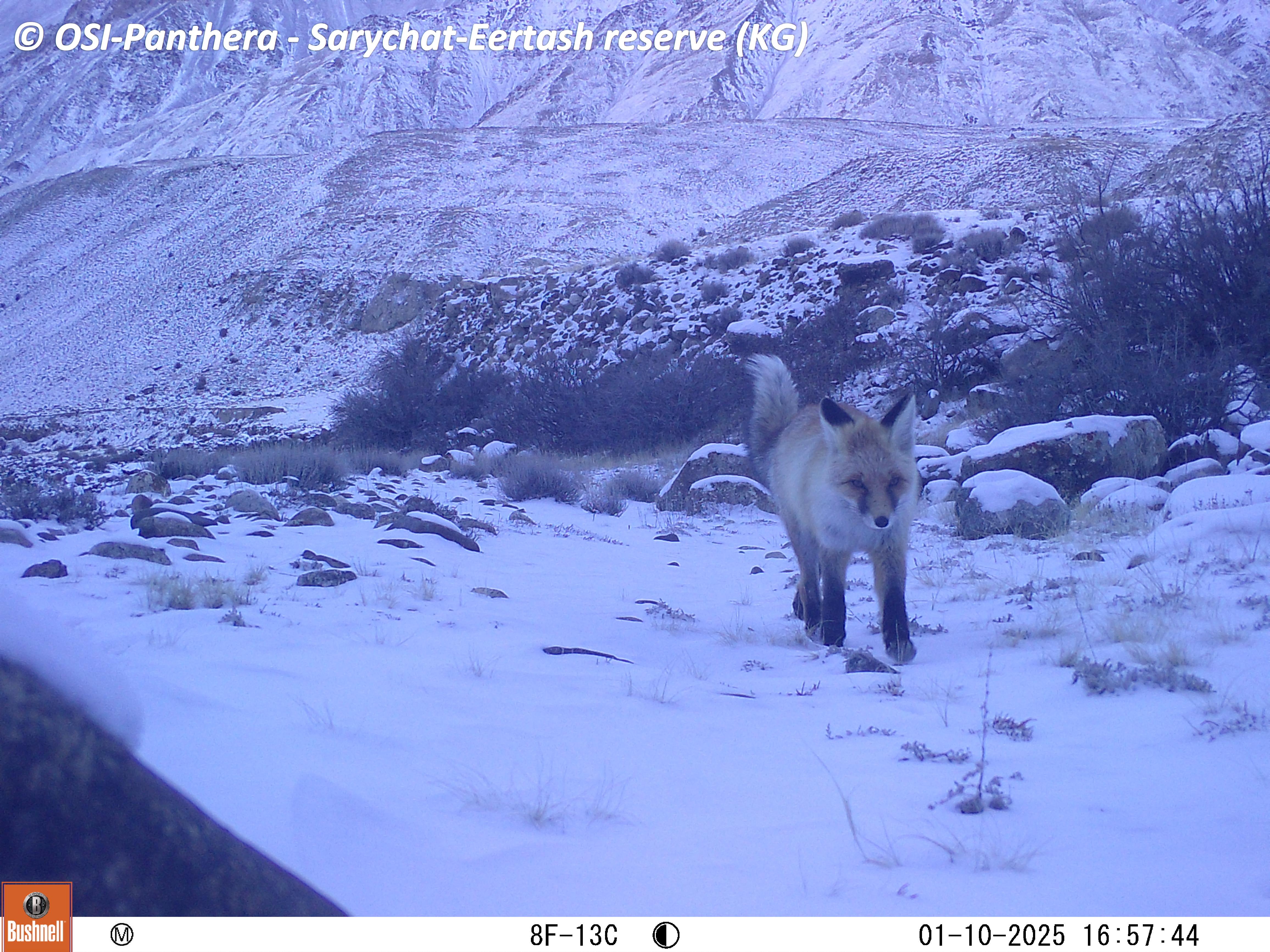 Les relevés de piège photo sont heureux : 18 passages de Panthère des neiges, 40 Ibex, superbe !