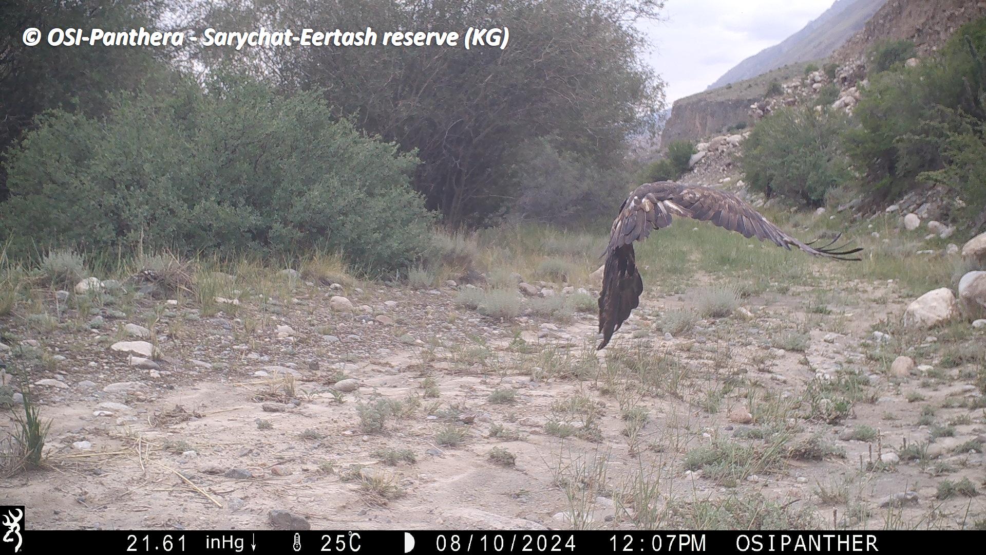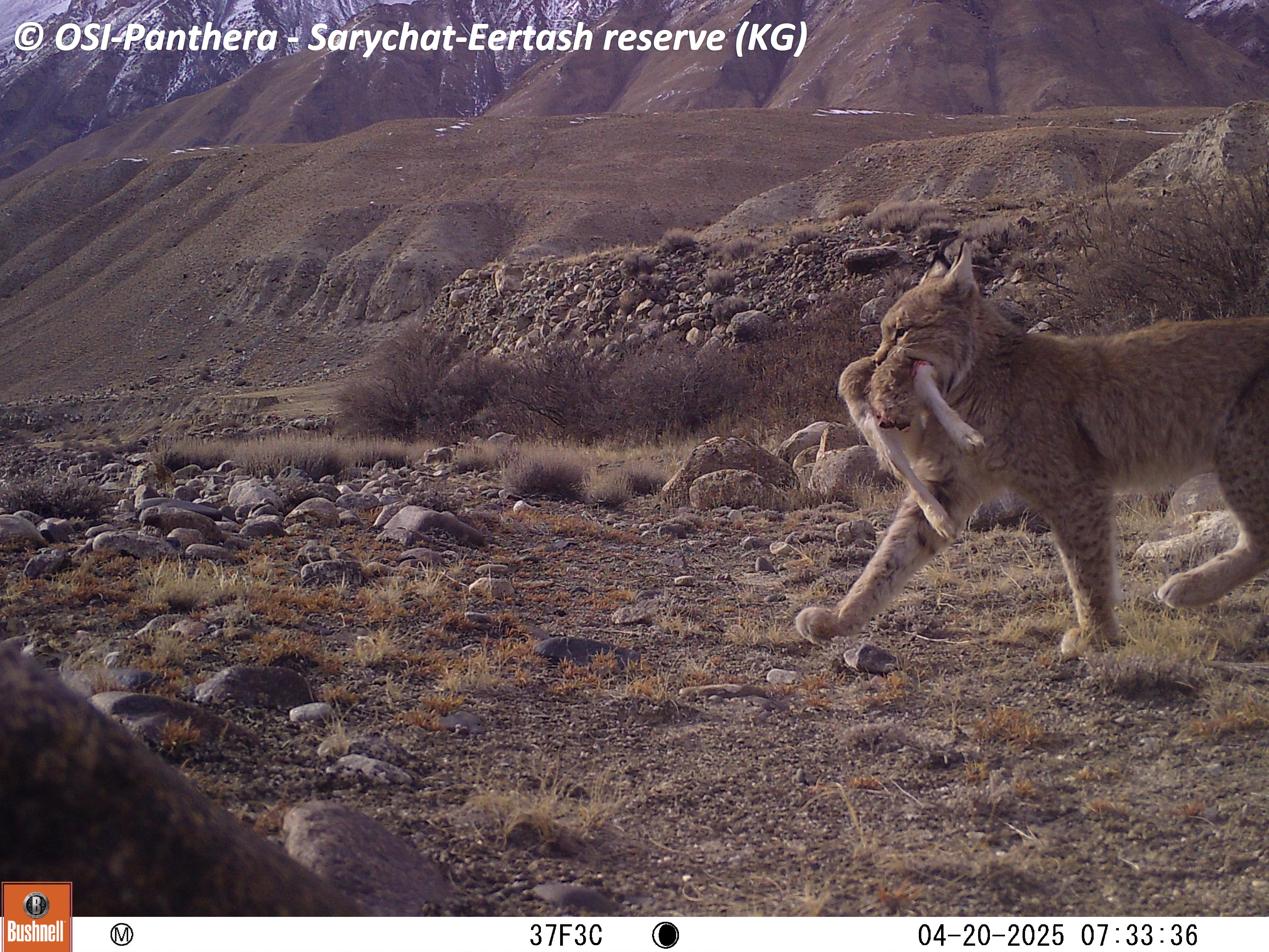 En fin d’après-midi, avant l’orage le groupe part relever un piège photo posé pour test l’an passé au croisement des rivières Eshegart et Eertash. C’est une grande surprise, celui-ci a capturé des images de loups, d’ours, de panthère en juin, d’ibex et d’Argali ainsi que d’un lynx avec sa proie !!