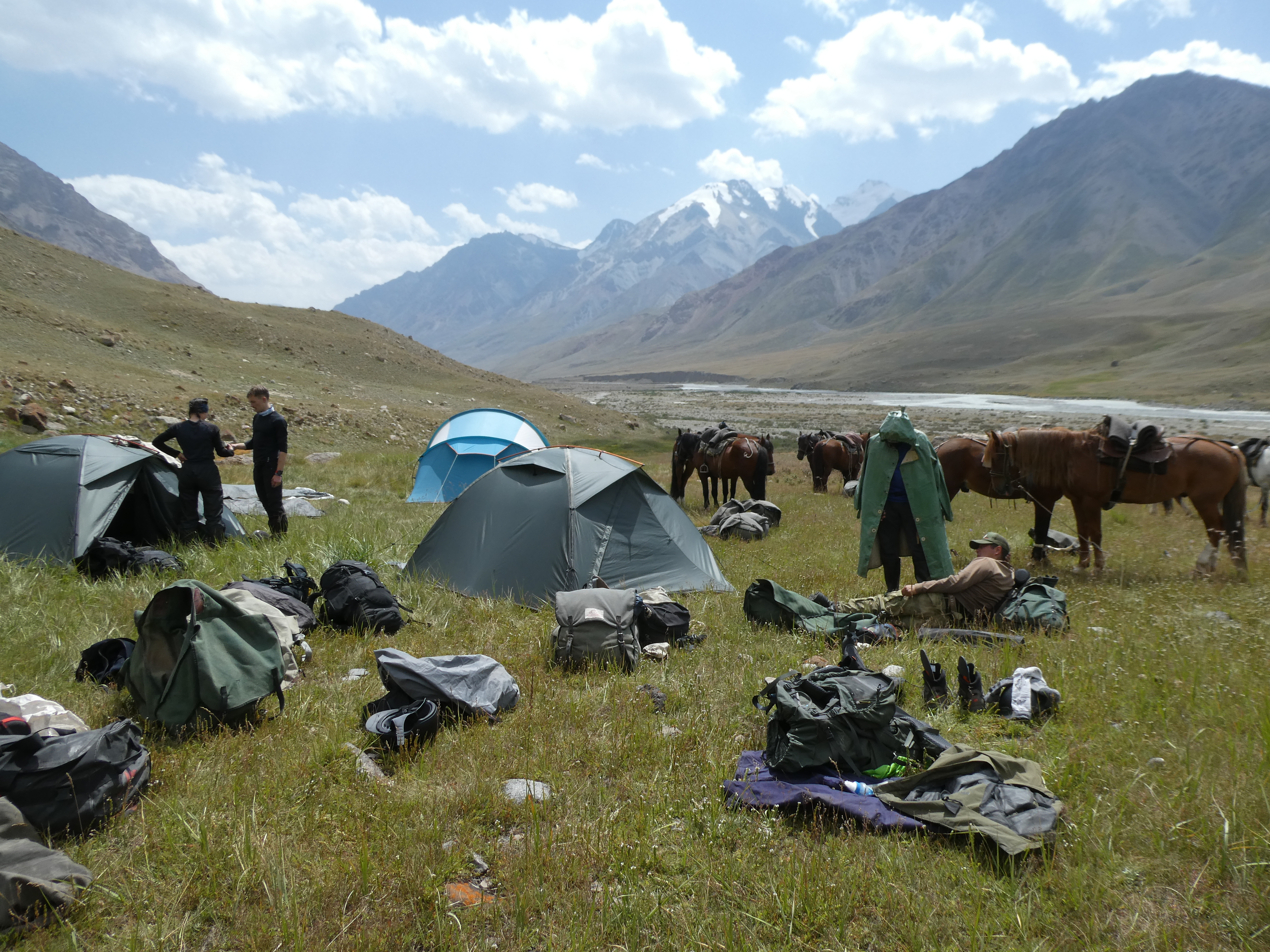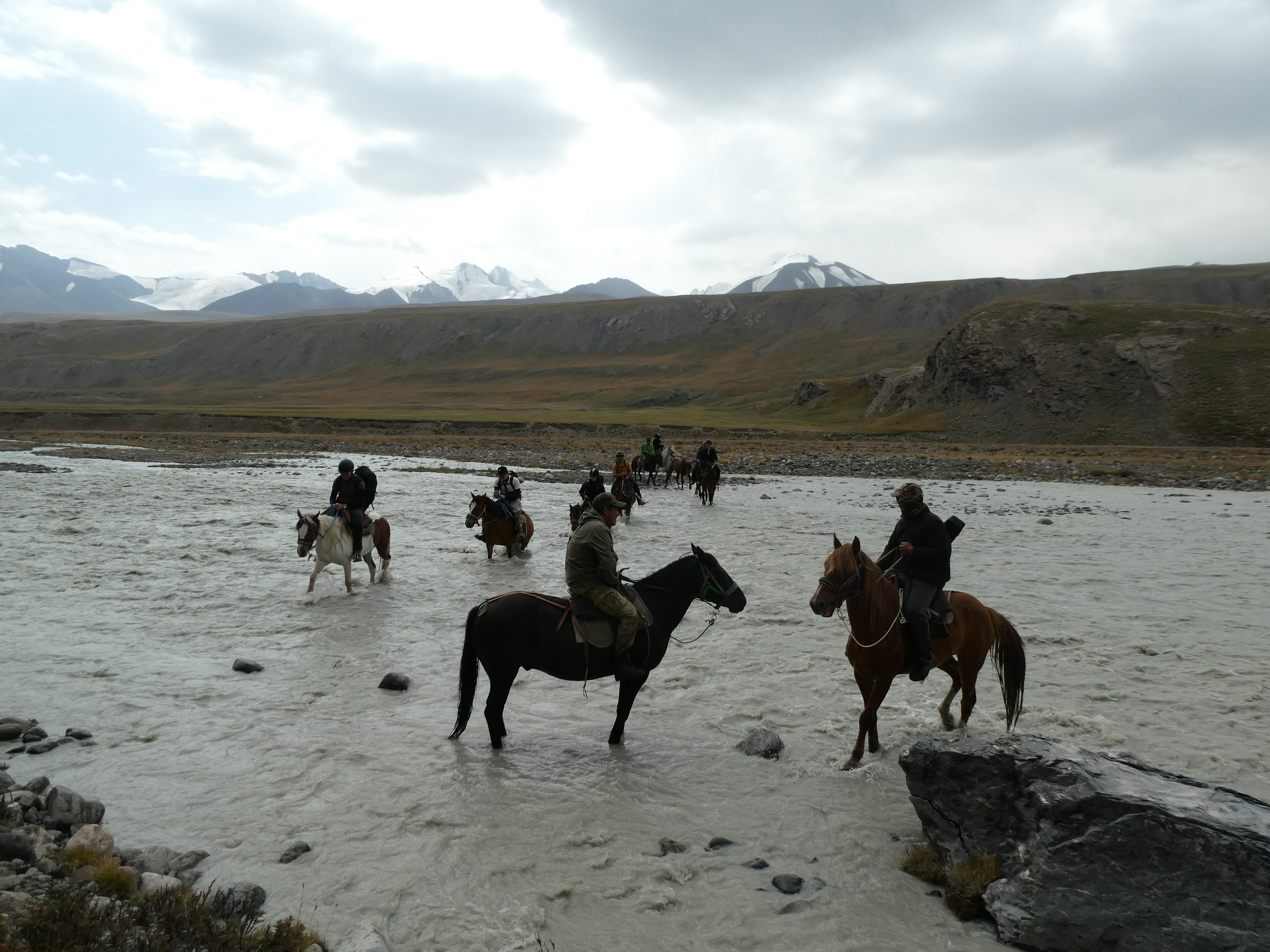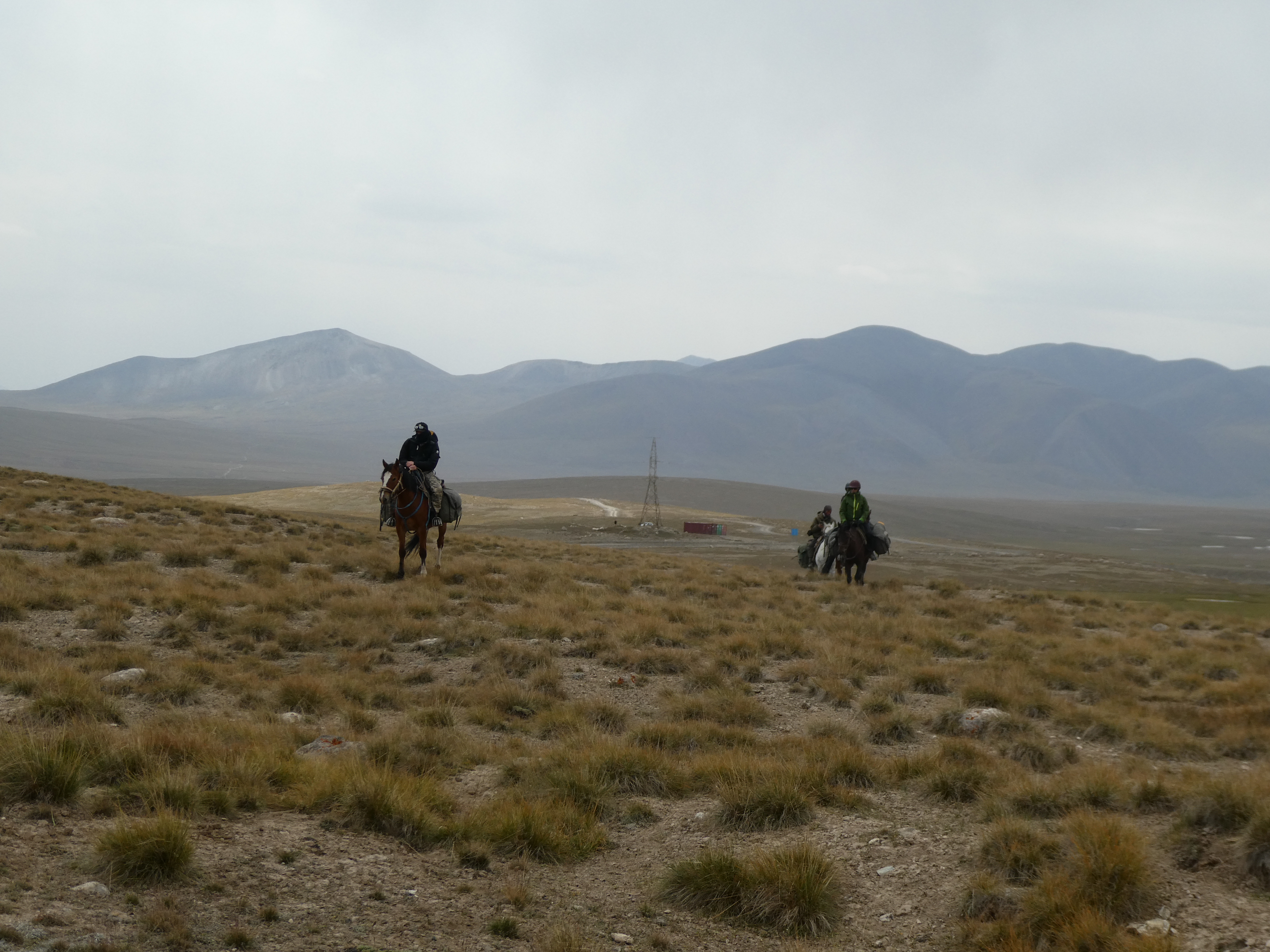 La nuit a été courte pour certains...! On charge les véhicules, les gardes redescendent également sur Issyk Kul. Un gypaète nous survole en guise d’adieu. En route au poste militaire de Kara Sai (car nous sommes à moins de 50km de la frontière chinoise, ce qui nécessite des autorisations particulières) nous croisons une multitude de cyclistes. En ce moment se tient la course « Silk Road » à travers les steppes et sommets kirghizes avec plusieurs centaines de participants du monde entier. Le fils d’un ami de Jean-Phi participe mais on ne le croise pas ! On passe par le col de Seok à 4000m vestige d’une histoire particulière sous l’ère soviétique.