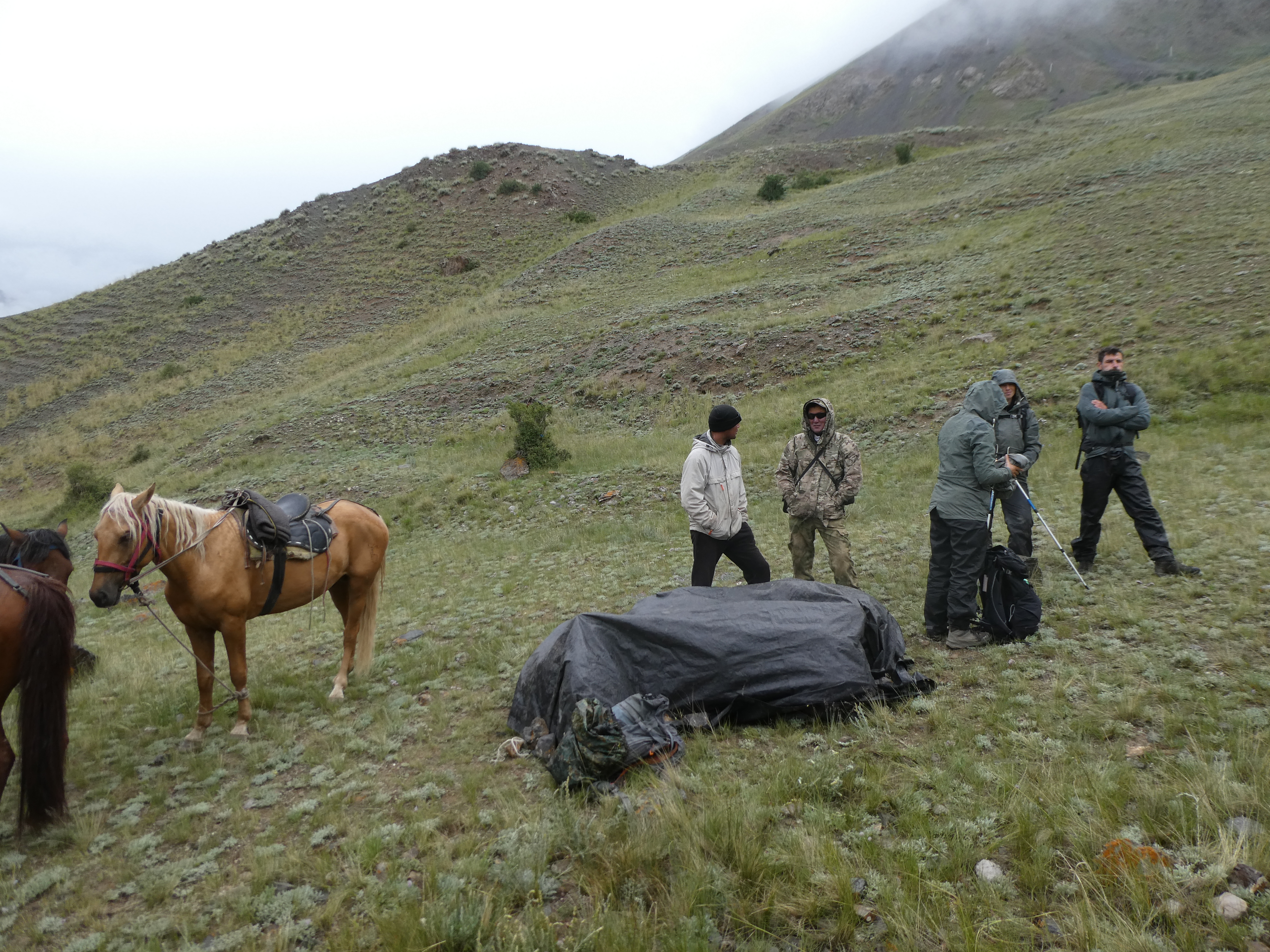 Aujourd’hui c’est encore une journée pluvieuse... ! Mais rien n’arrête l’équipe, ils lèvent le camp pour rentrer sur Eshegart. En route ils s’arrêtent pour le transect de Sirdibai 3 où ils observent de très très près un groupe d’une quarantaine d’Argali ! Une plaisir pour toute l’équipe !!