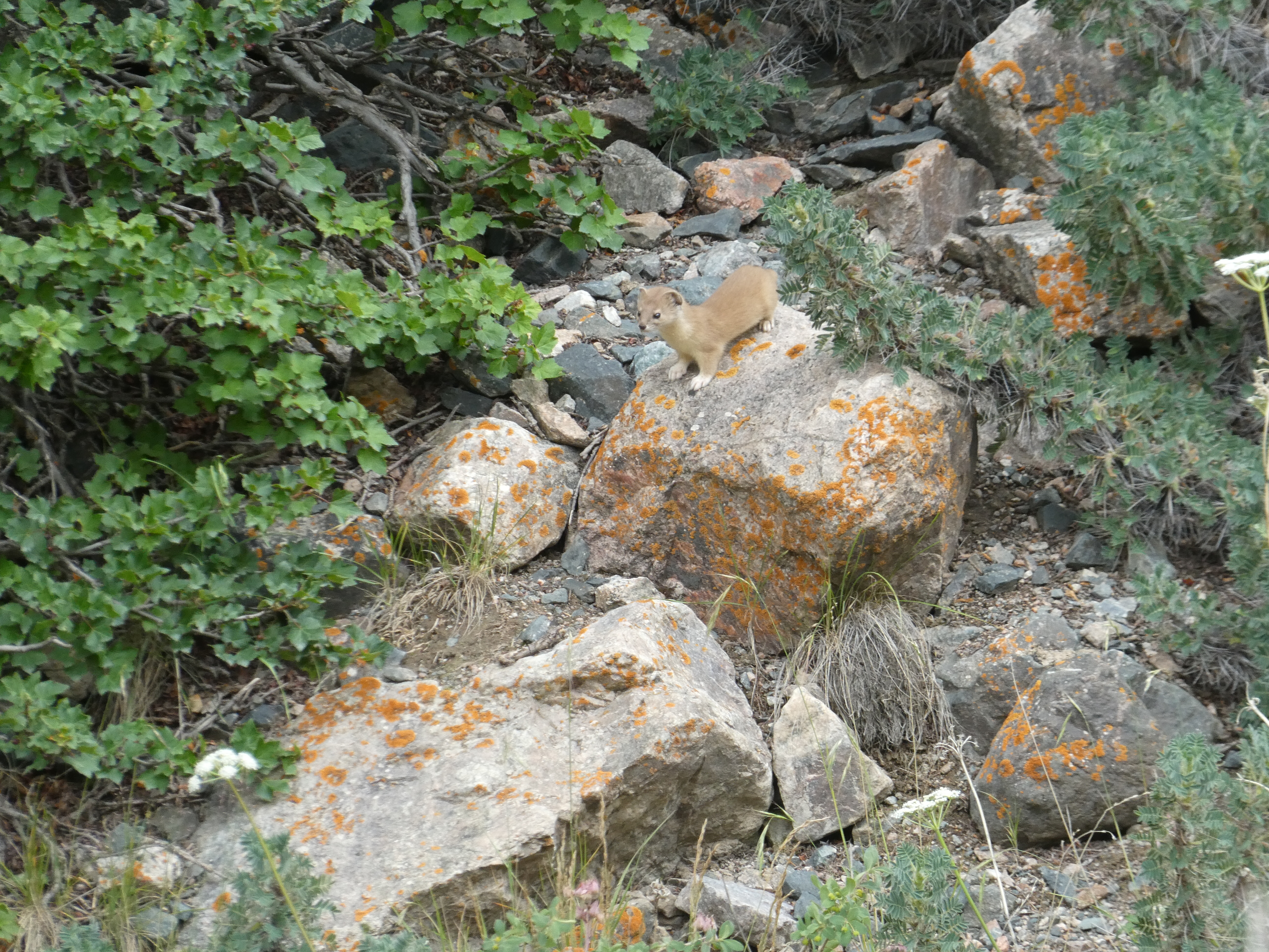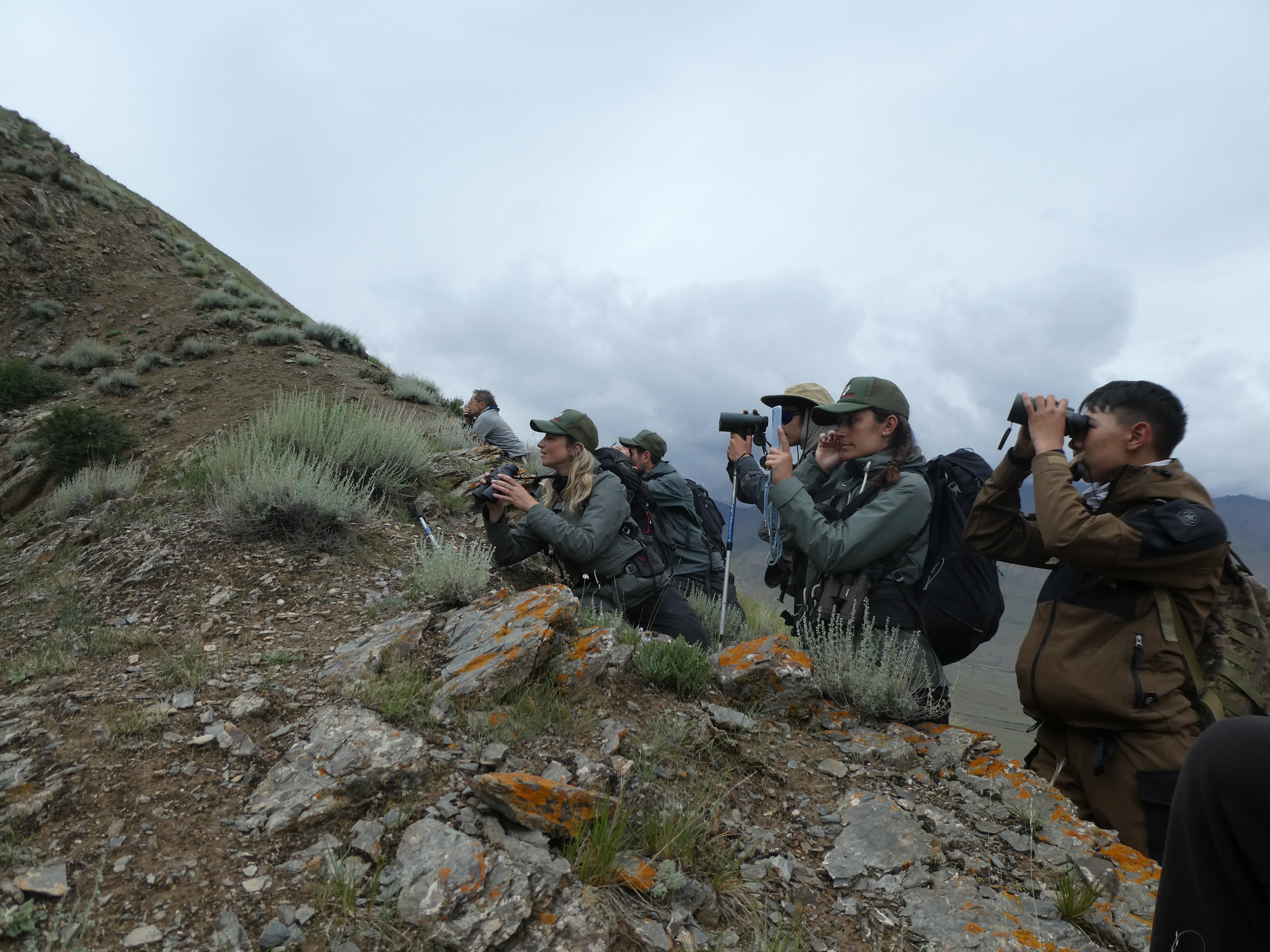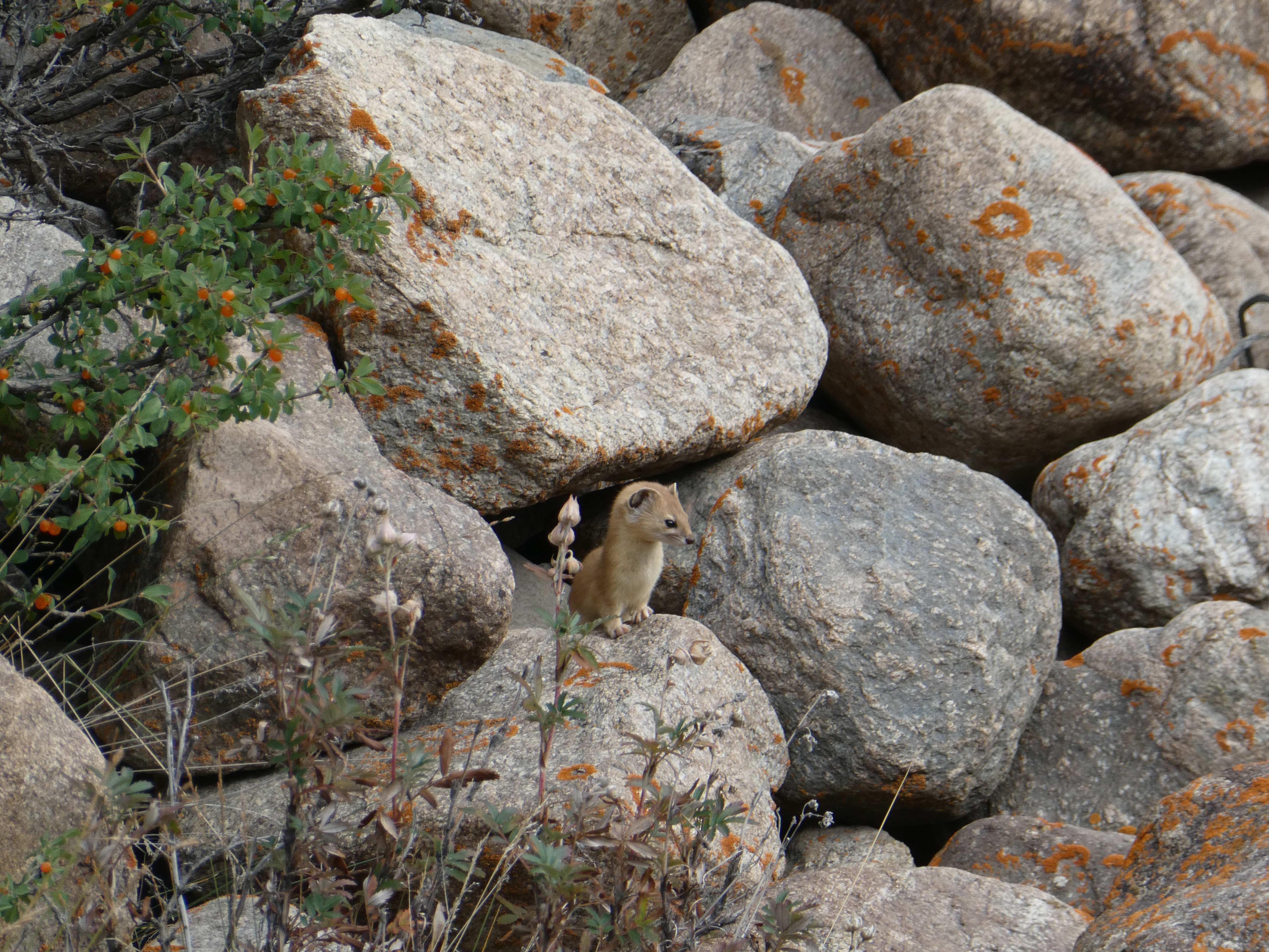 Dans ce vallon nous observons aussi 4 Perdrix de Daourie (Perdix dauurica) et une Belette de l’Altaï (Mustela altaica) . Le groupe en prend plein les yeux. Par contre ils apprennent aussi la patience, la pause de piège photo prend facilement 1h afin de bien cadrer et caler l’appareil qui devra rester en place toute une année malgré les bousculades de la faune locale. Ce coup-ci malgré le dévouement de Luc, Max et Anne-Lise cela prendra presque 2h... C’est long mais nécessaire pour les besoins de l’étude !
