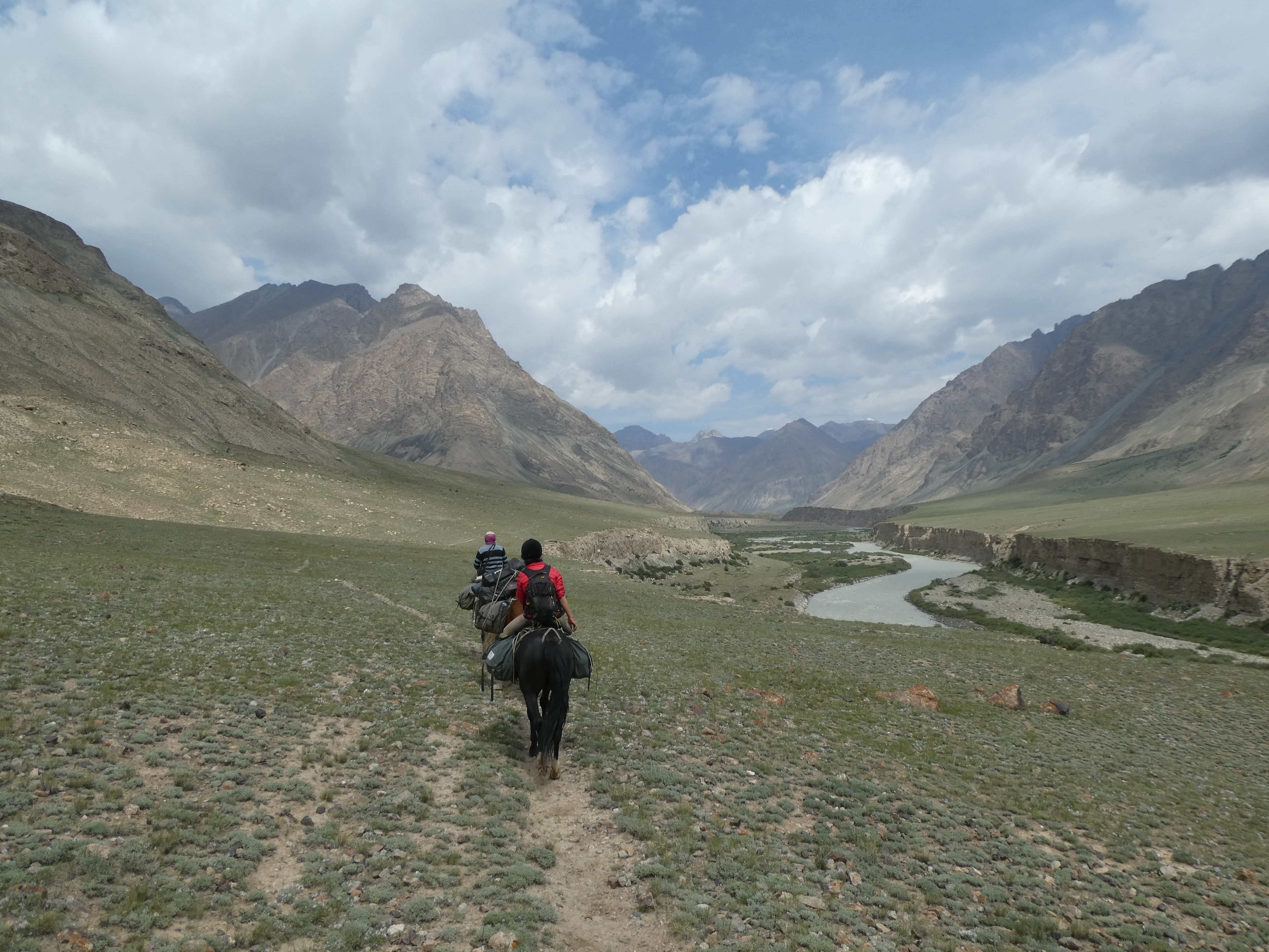 Nous suivons le vallon de Chon Bordou à cheval, où un nouveau piège-photo avec plusieurs passages de panthères nous attend, mais celui-ci s’est arrêté en novembre.