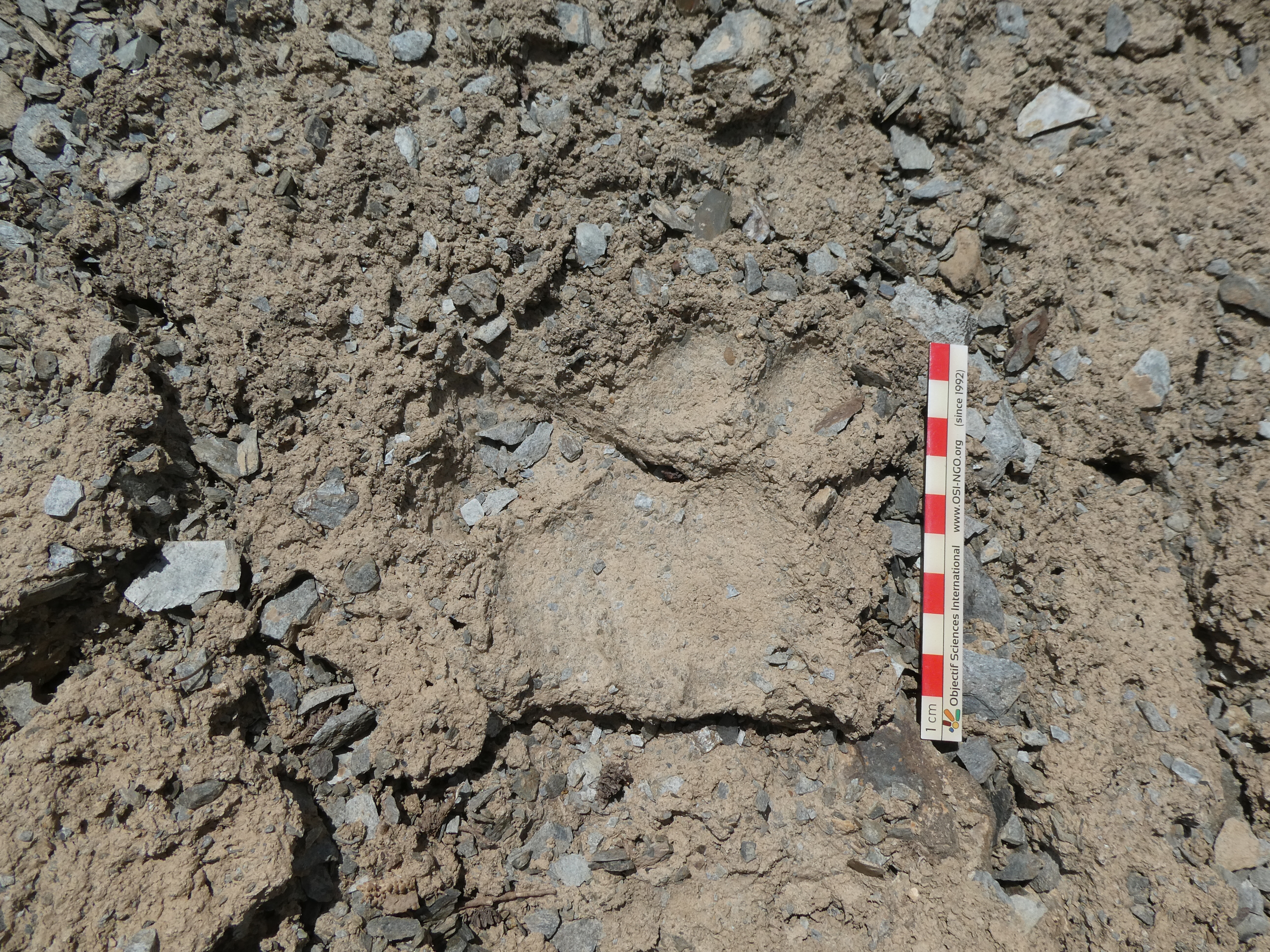 En route nous récupérons un piège-photo avec de super beaux résultats sont de nombreux passages de Panthère des neiges. Nous repérons aussi des indices de Panthère et d’Ours dans le vallon.