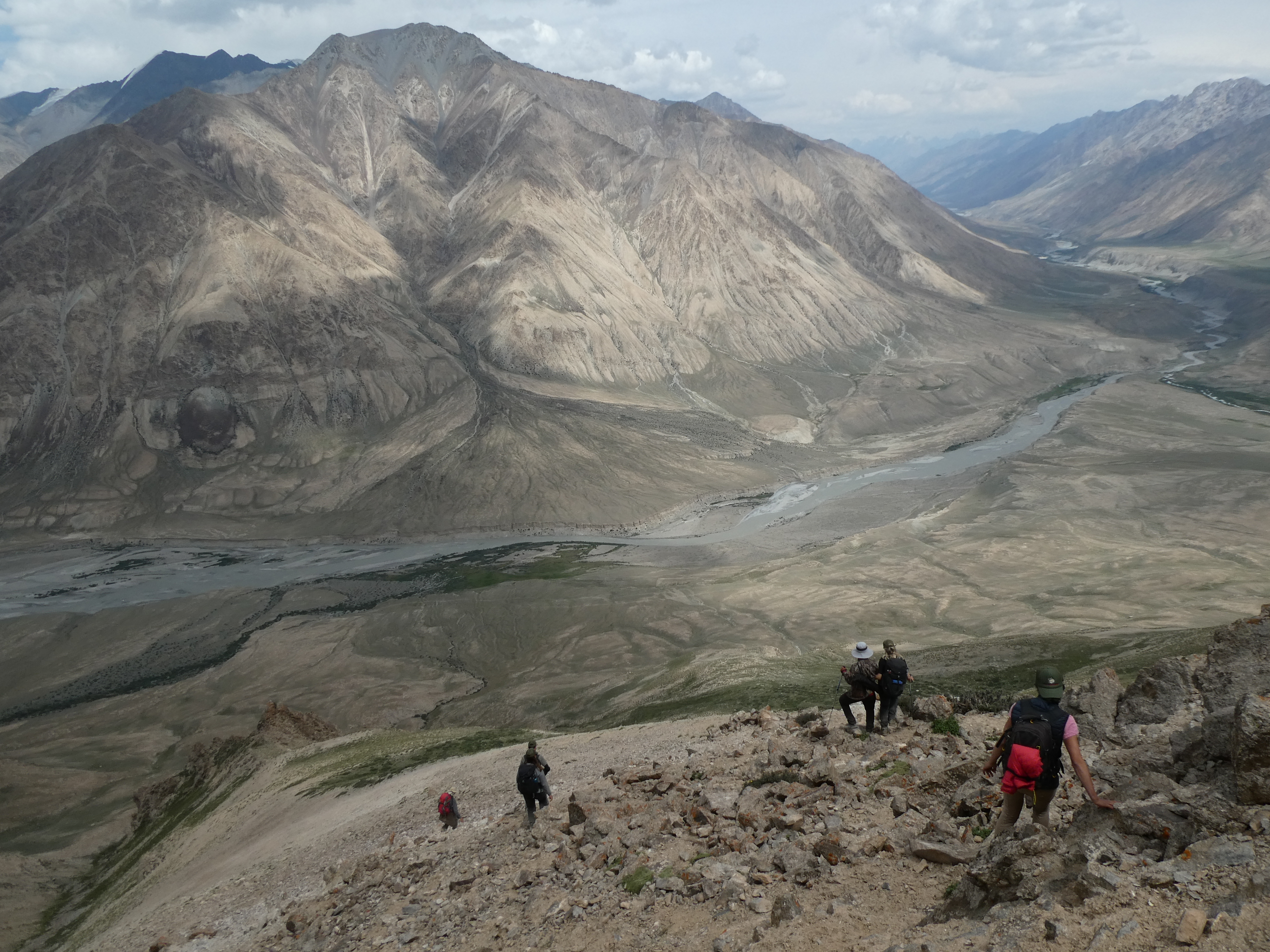 Dans le vallon de Solomo nous observons deux Gypaètes puis nous partons faire deux 2 transects en demi-groupes sur les crêtes avec une vue imprenable sur l’immense vallée de l’Eertash !