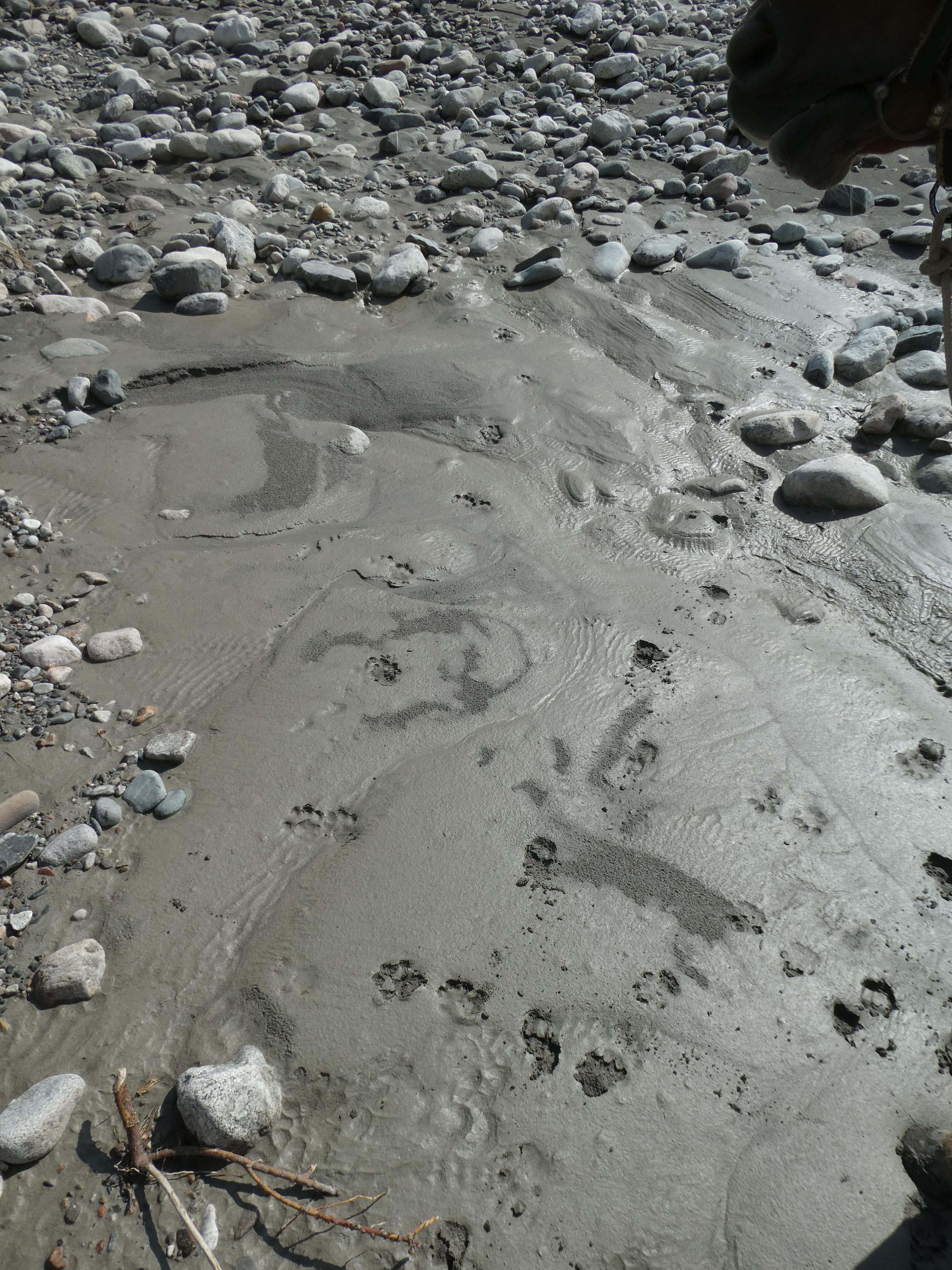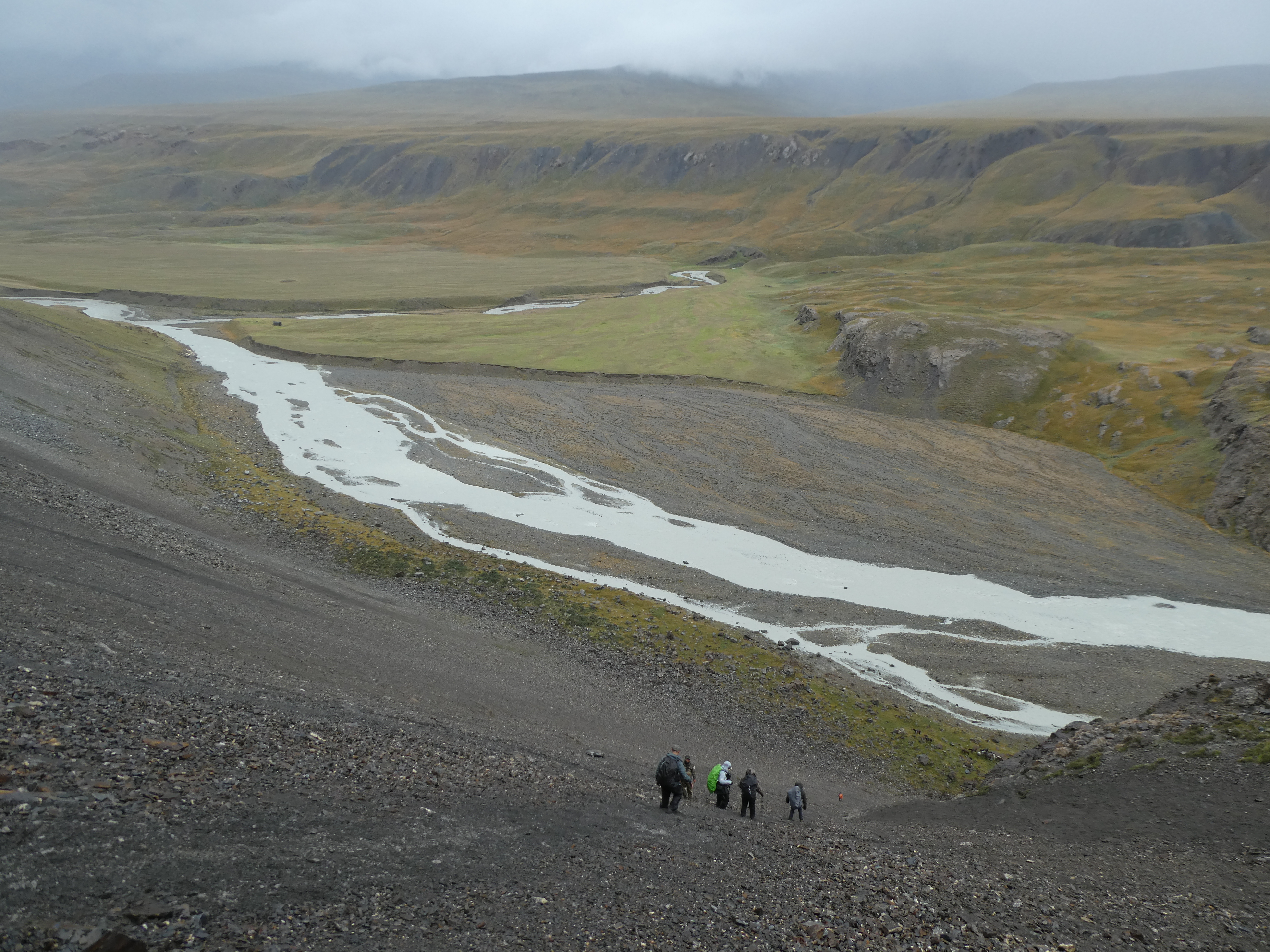 Après une sieste le groupe part pour un transect le long de la rivière Eertash, là ils découvrent peu d’indices excepté une piste d’une dizaine d’empreintes d’ours.