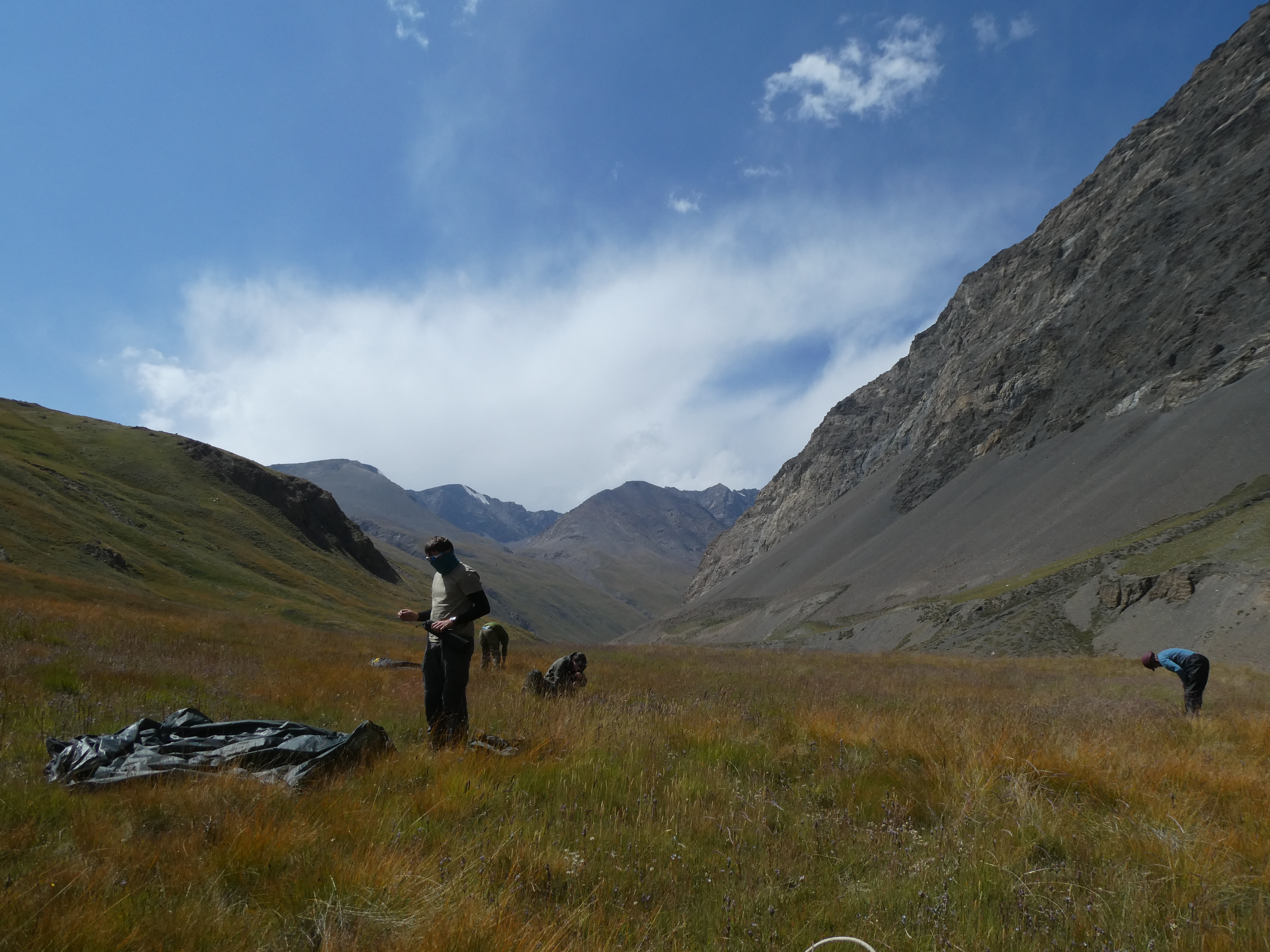 Une fois de retour au camp, l’équipe participe à des relevés botaniques pour un étudiant qui réalise sa thèse de Master et cherche à mieux comprendre le régime alimentaire des panthères des neiges et la place des végétaux herbacés comme ligneux dans celui-ci.