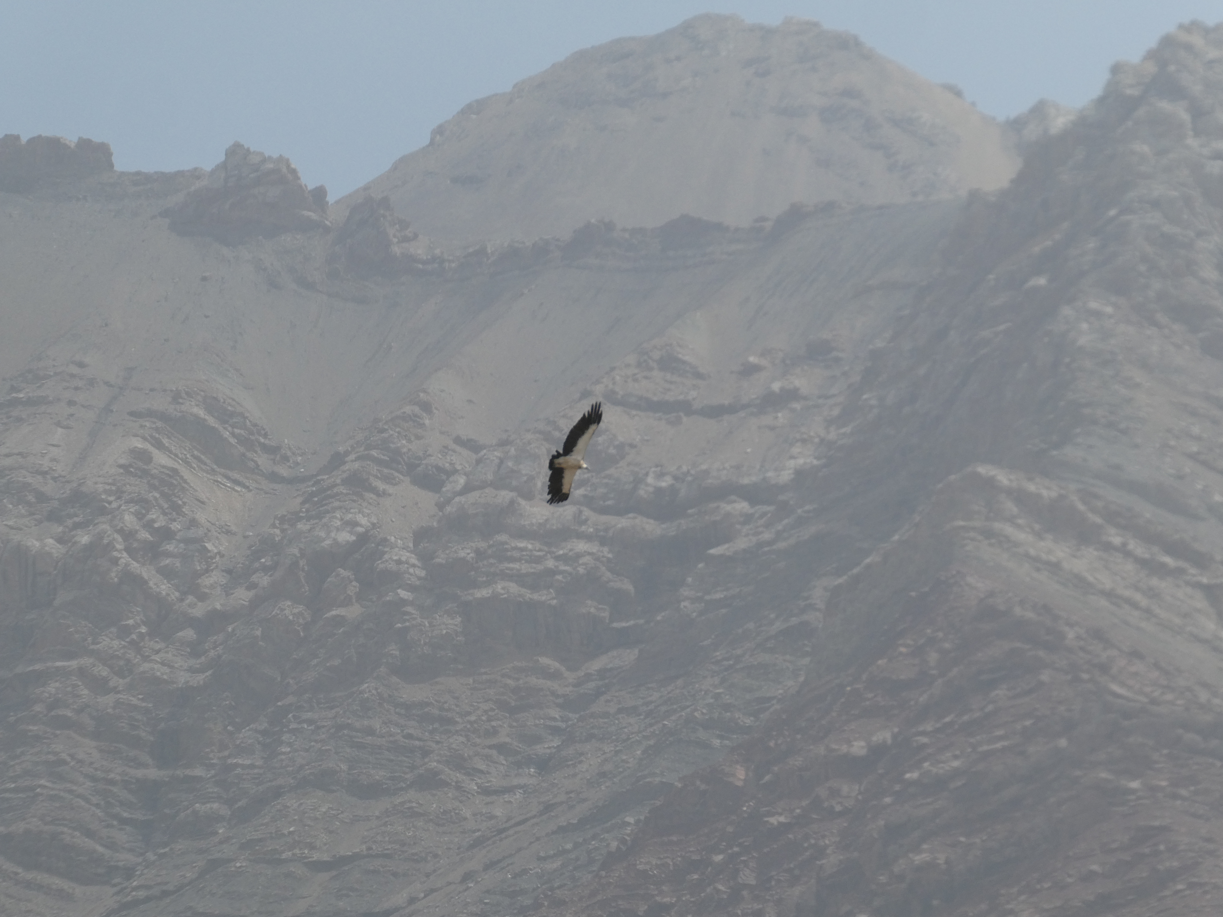 Un Vautour de l’Himalaya nous survole et se laisse bien observer, un gypaète barbu adulte vole un peu plus loin.