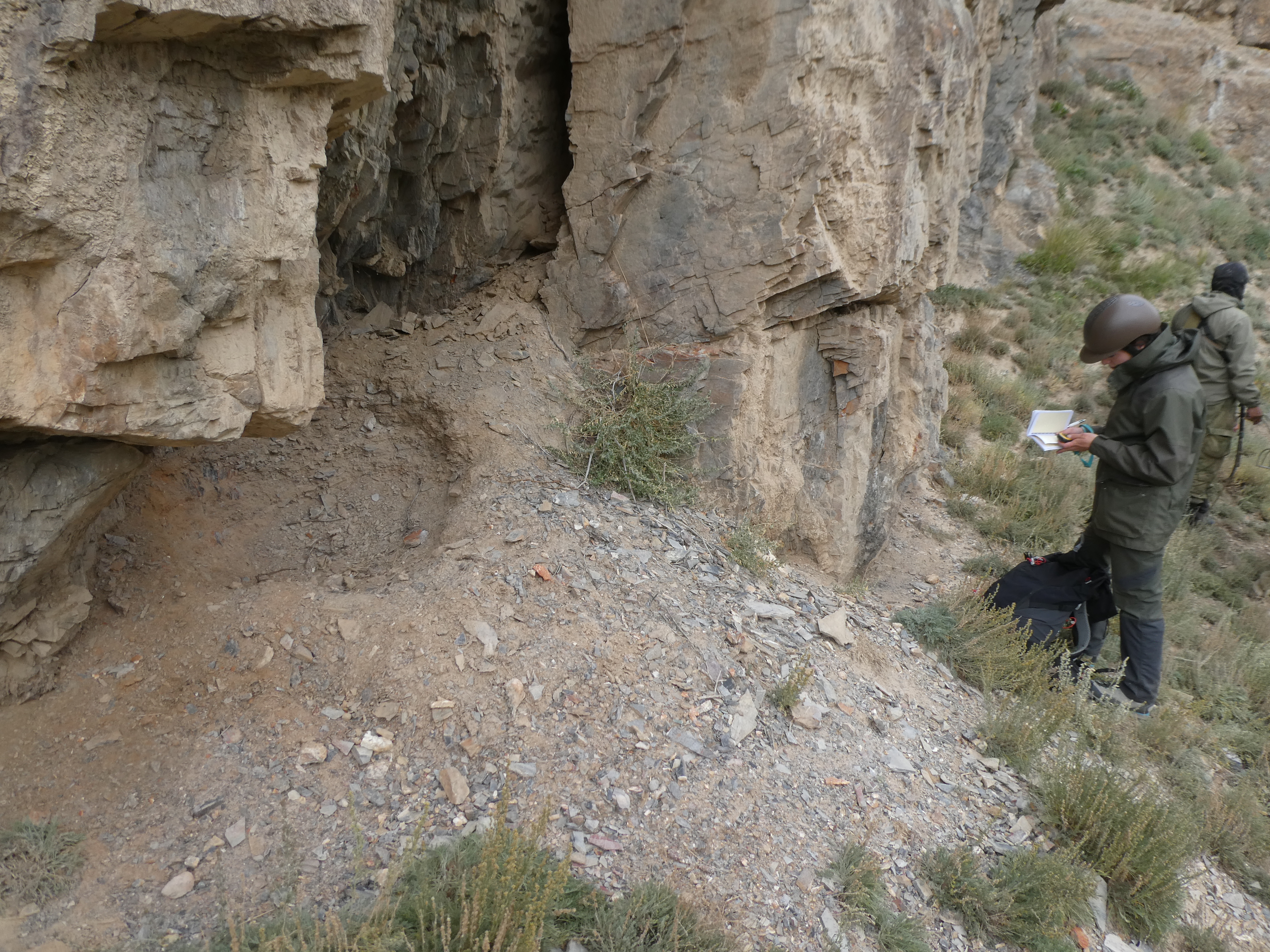 La deuxième équipe fait le transect sur la crête au dessus du camp, et trouve aussi des indices d’ours ainsi que de panthère des neiges, elle n’est donc pas loin !