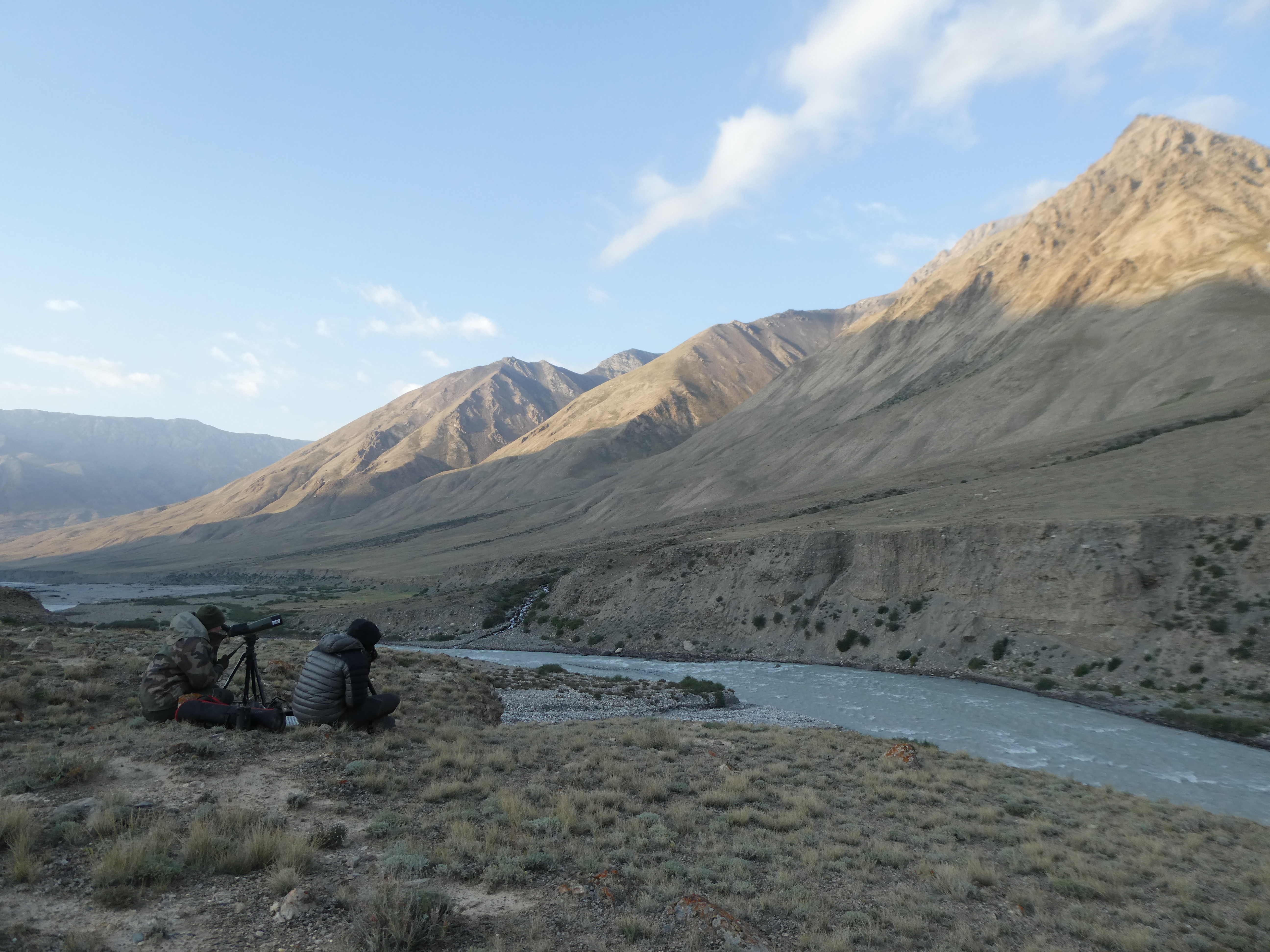 La nuit a été fraîche. Au petit matin nous observons de nombreux Ibex et Argalis sur les flancs de montagne qui nous font face, ainsi que de beaux Tétraogalles de l’Himalaya !
