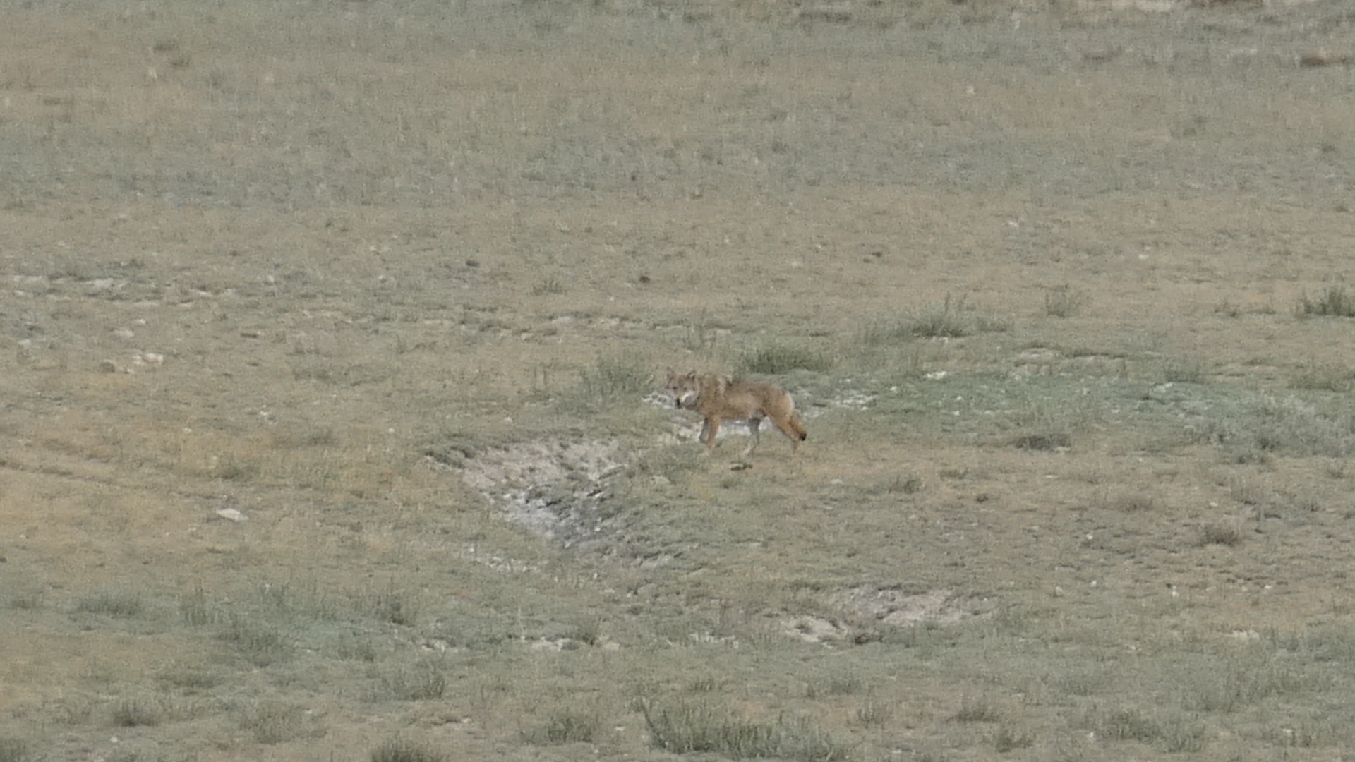L’aube nous offre de superbes observations : deux loups qui mulottent et de nombreux argalis.