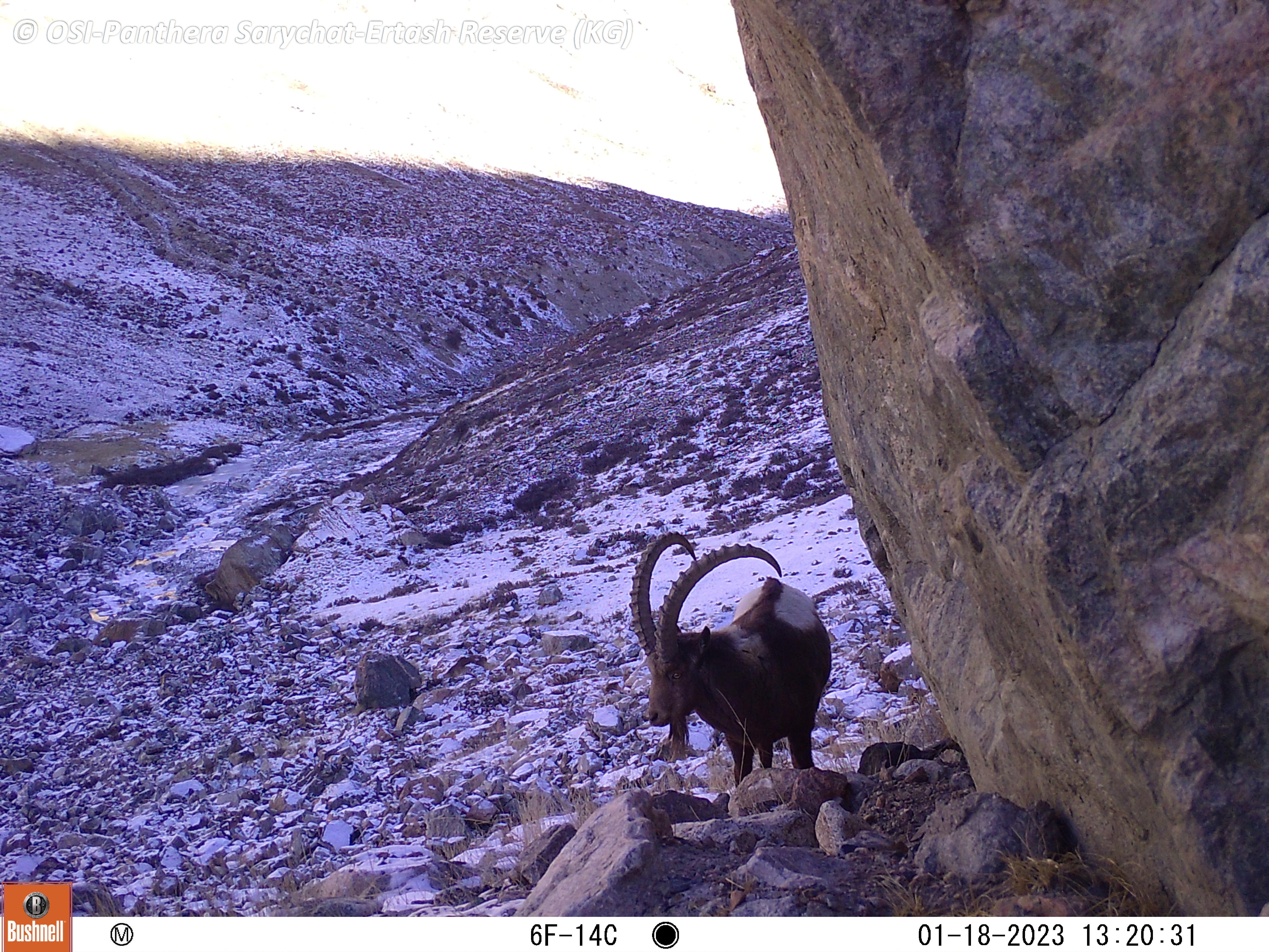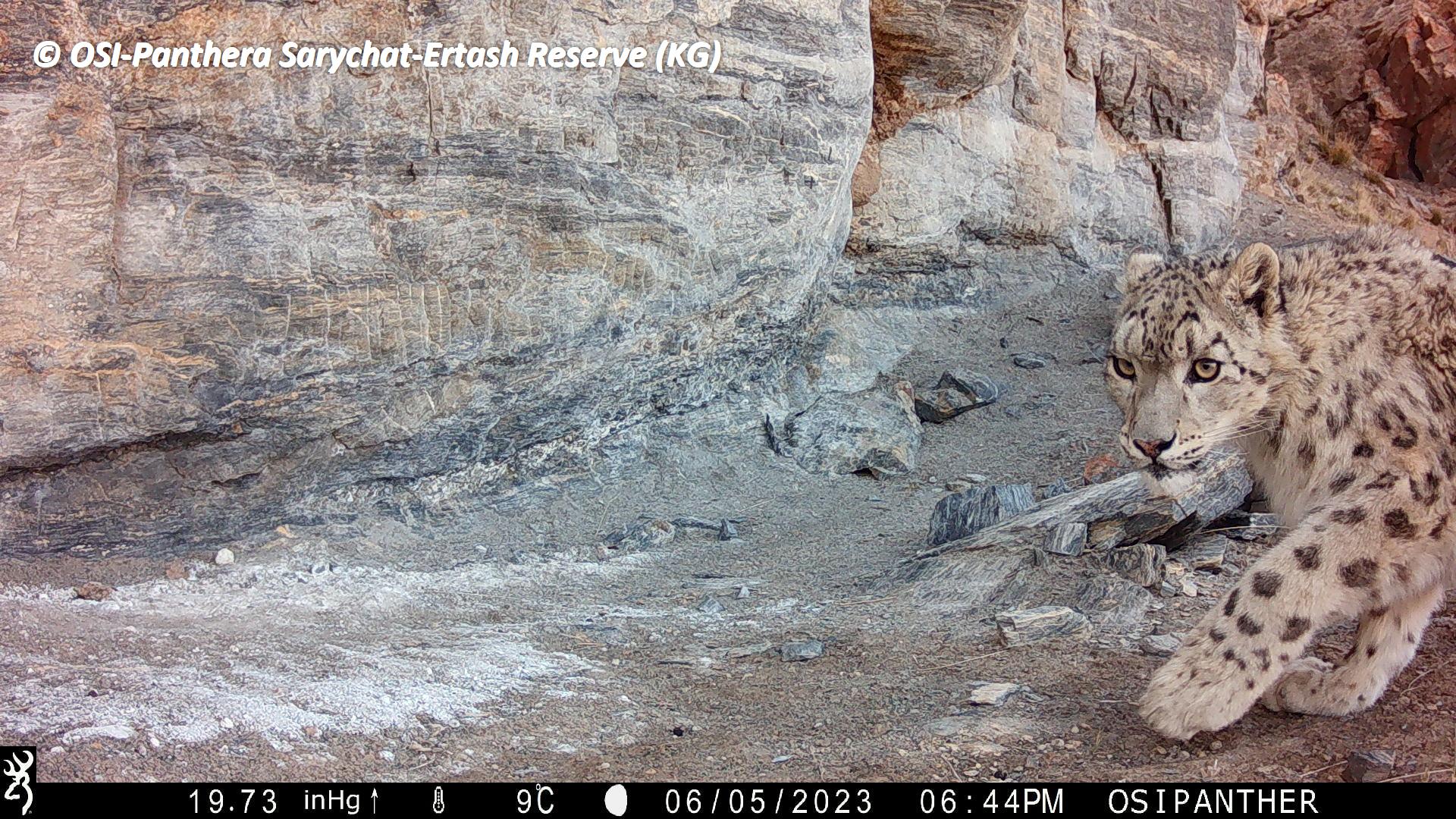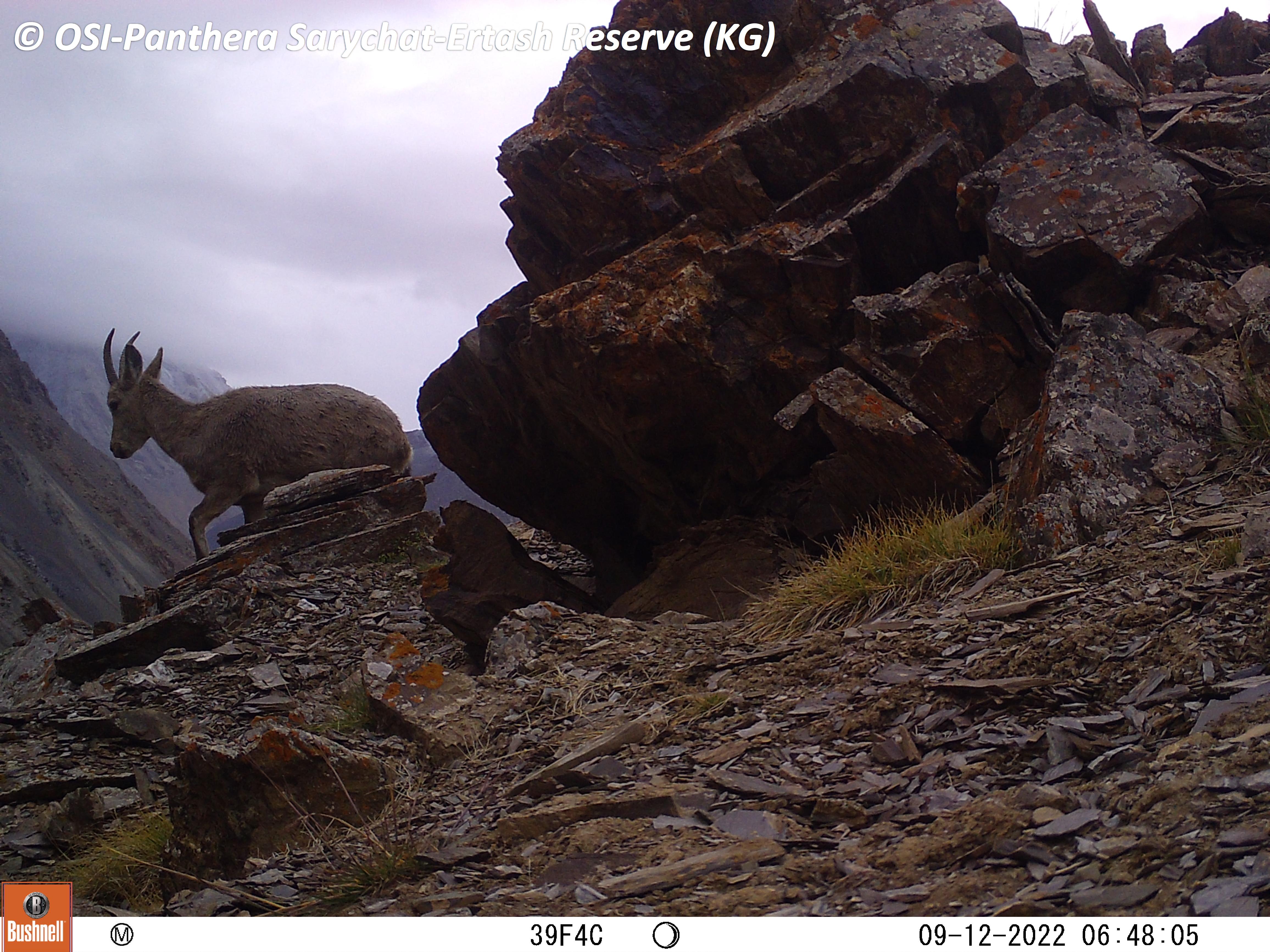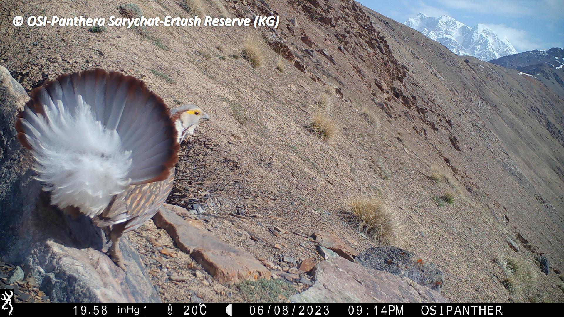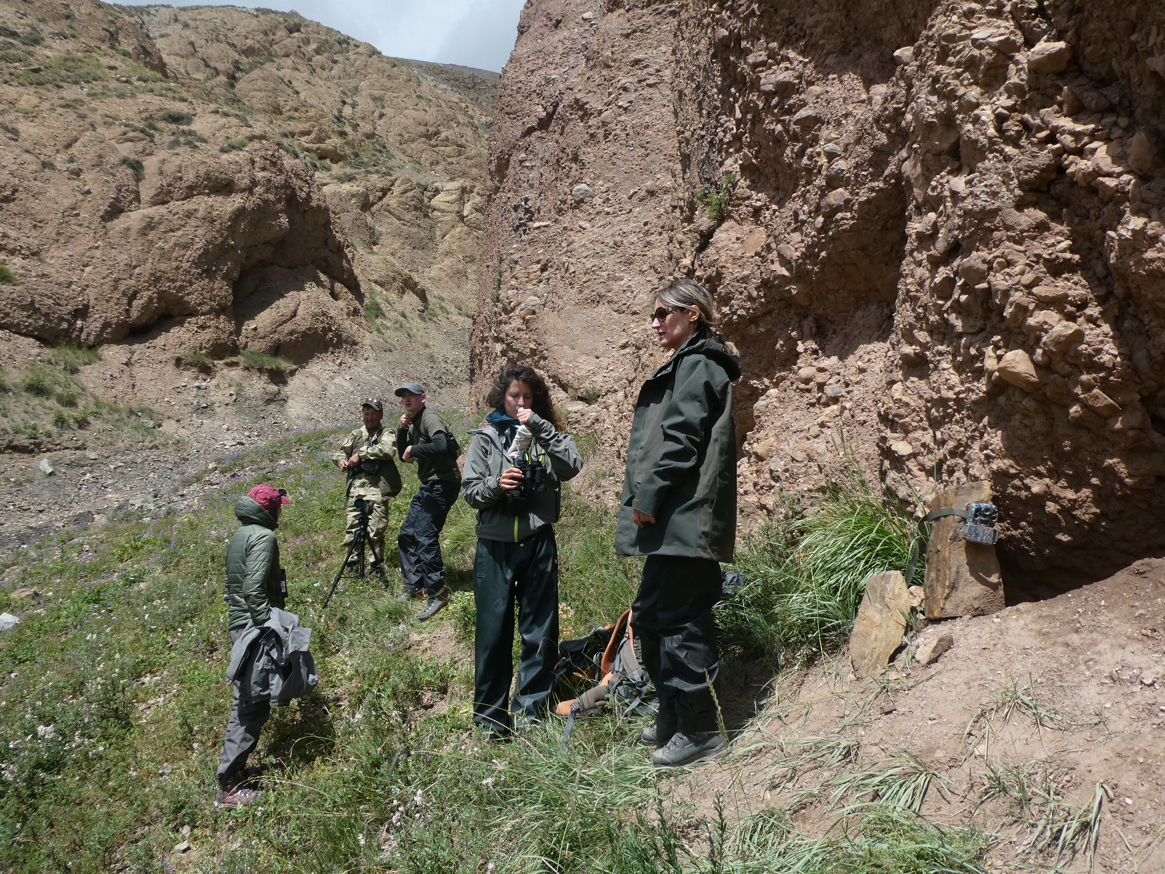 Le second groupe se rend dans le vallon de Kitchi Sary Etchki et y relève le piège photo qui a pu capter quelques passages de Panthère.