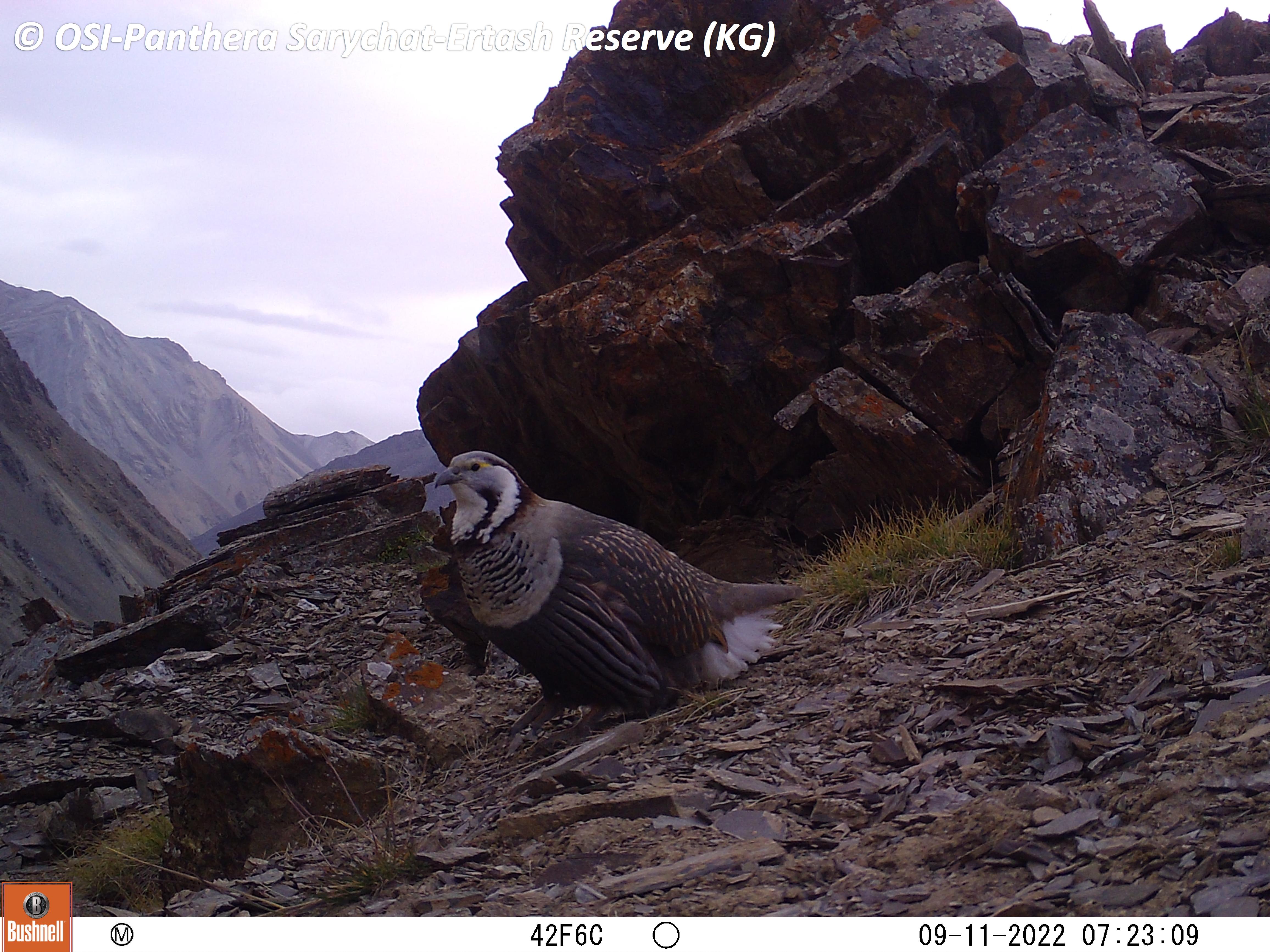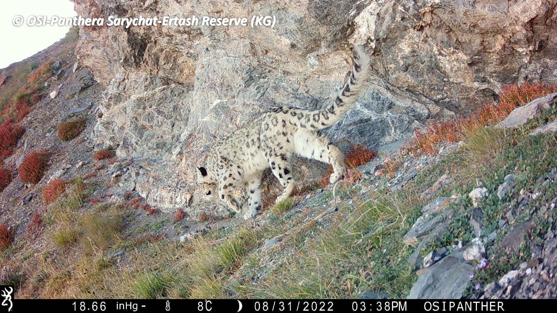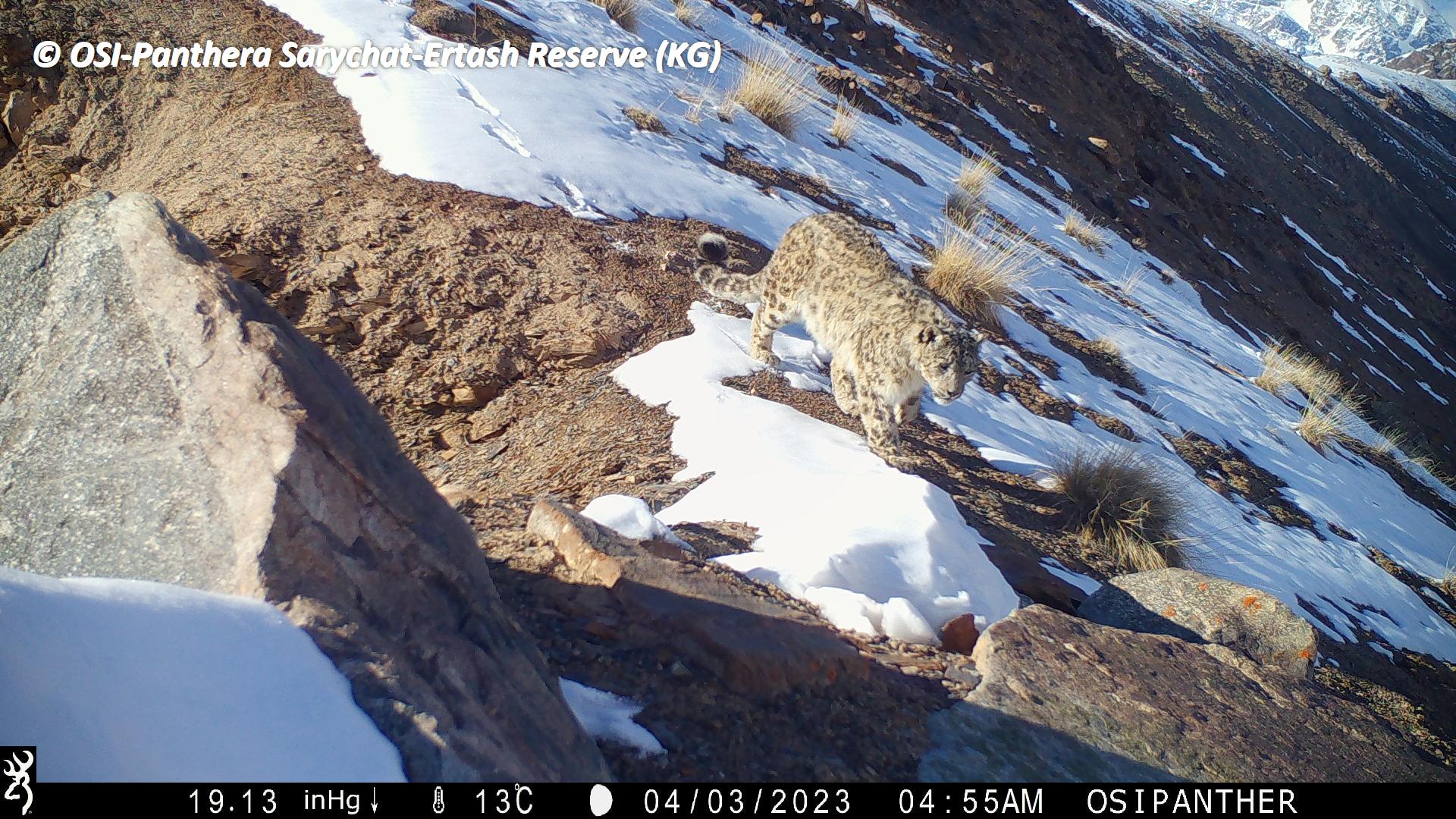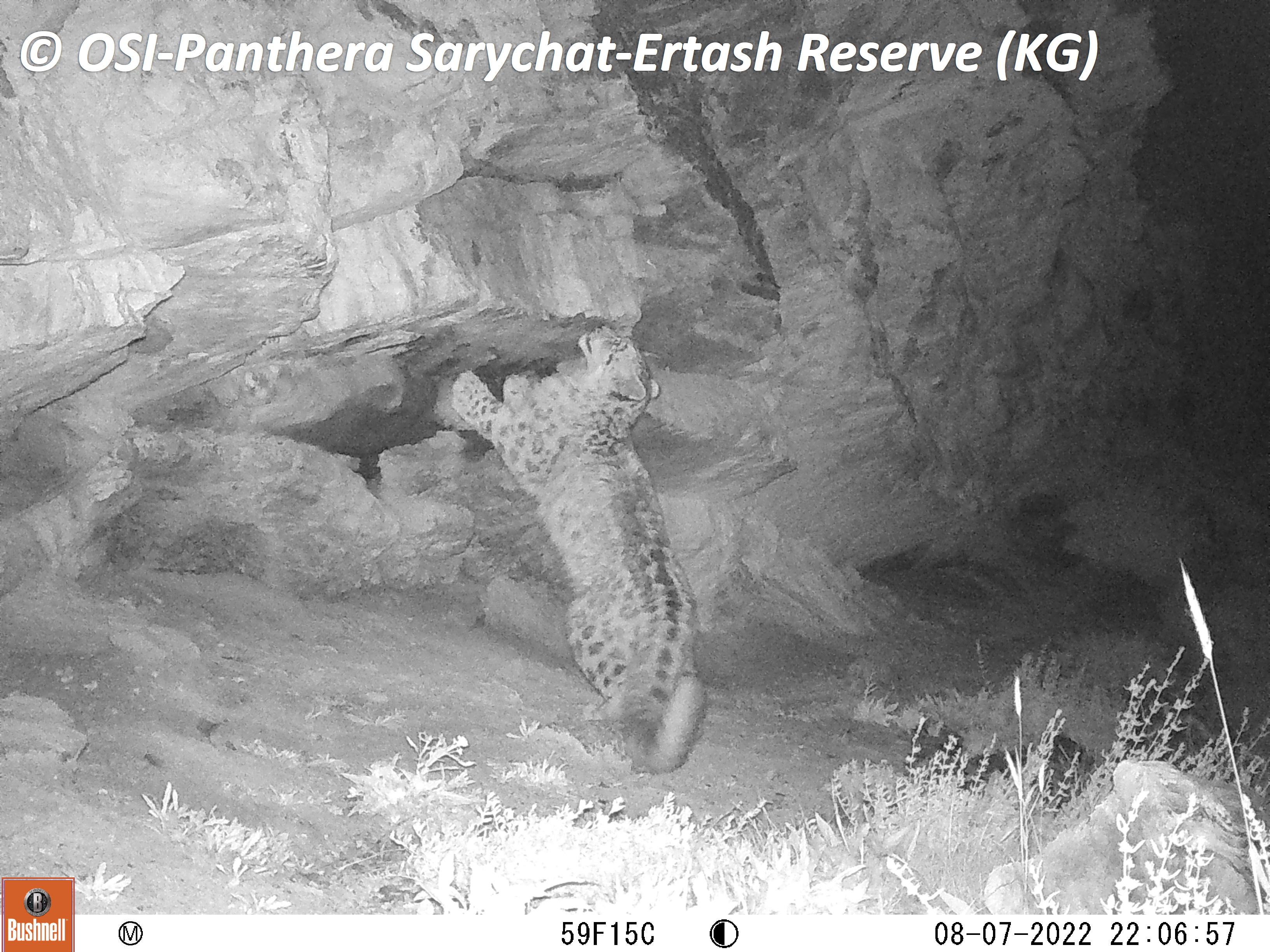 Le second groupe se rend dans le vallon de Kitchi Sary Etchki et y relève le piège photo qui a pu capter quelques passages de Panthère.