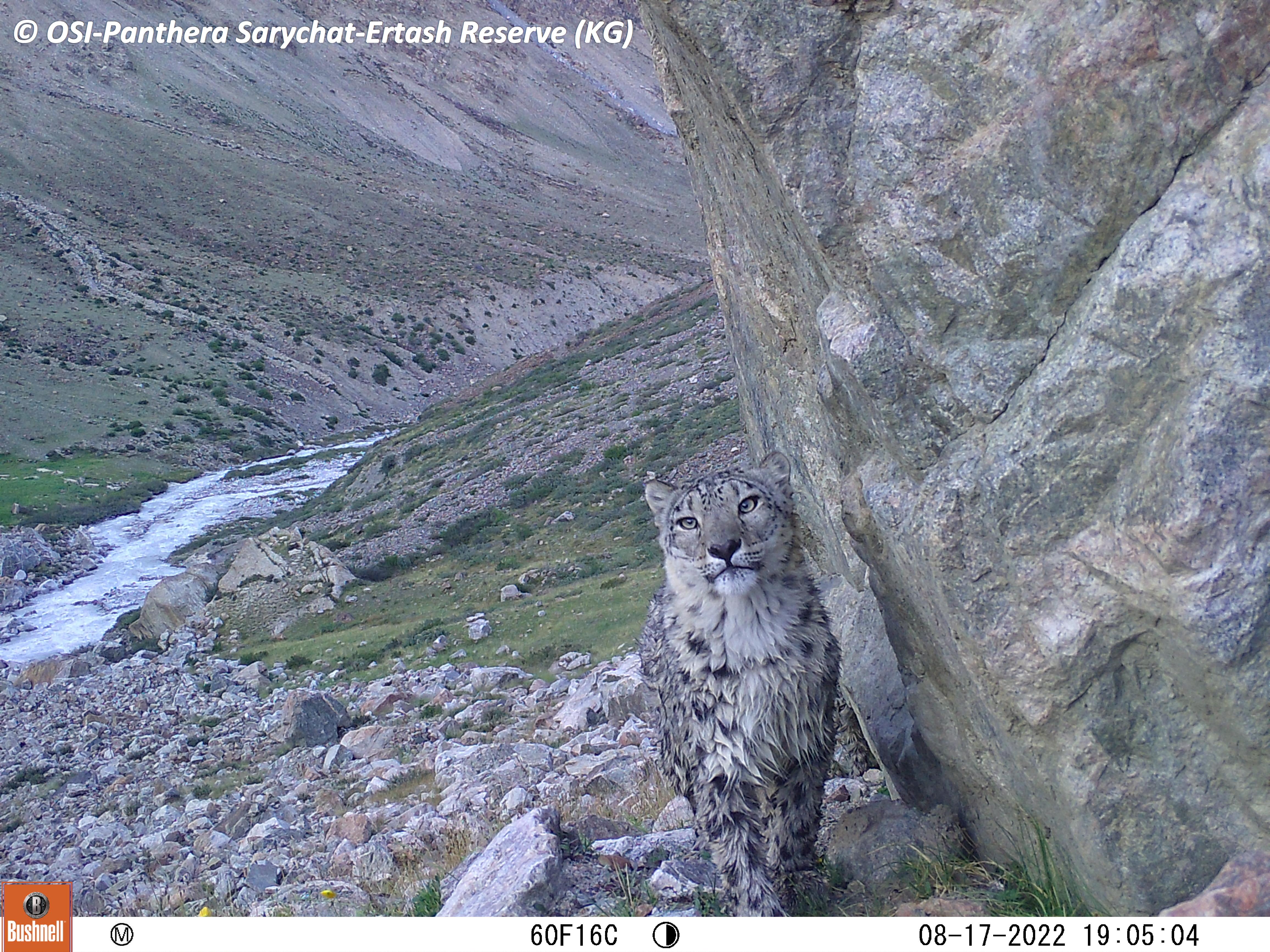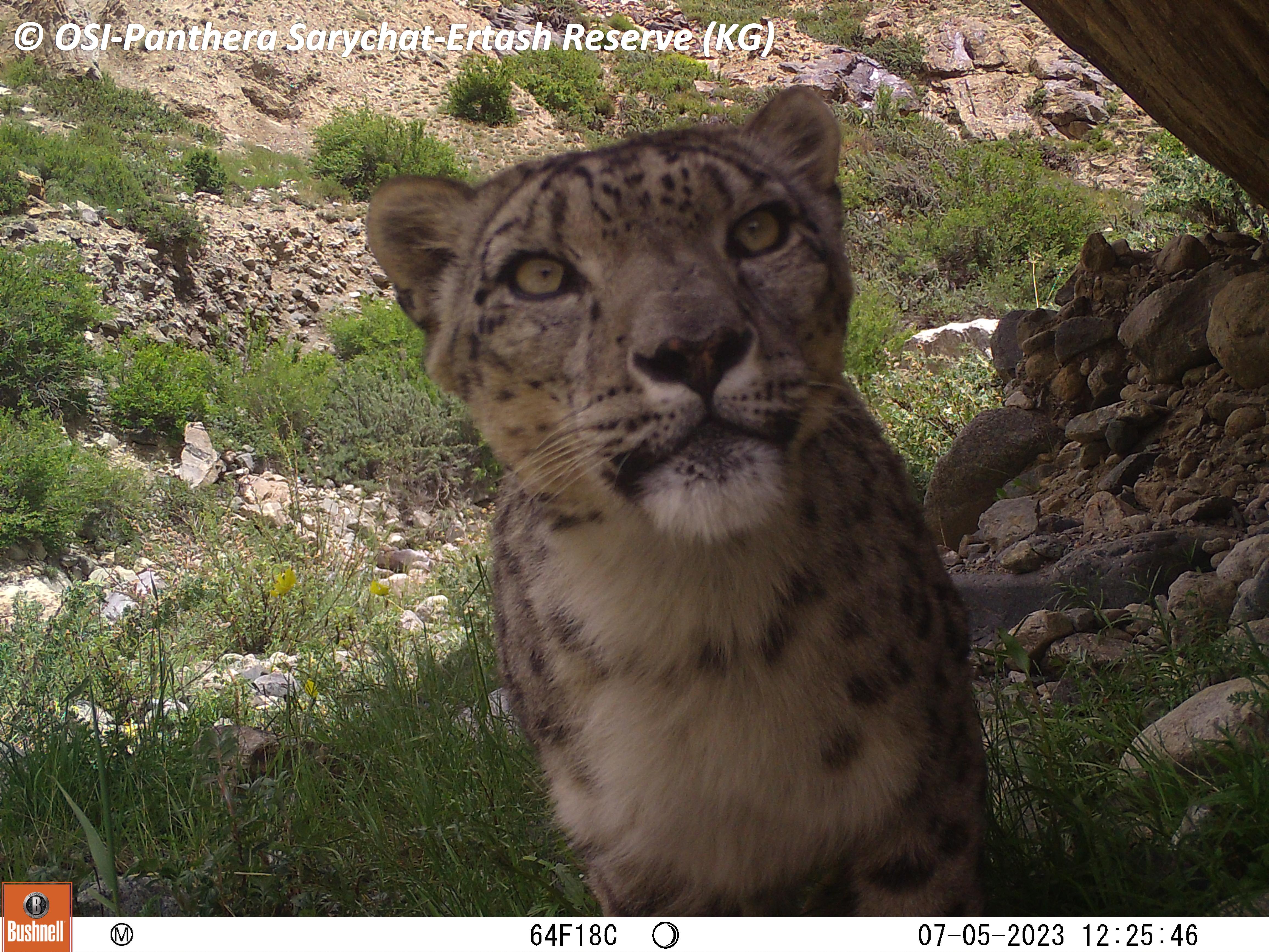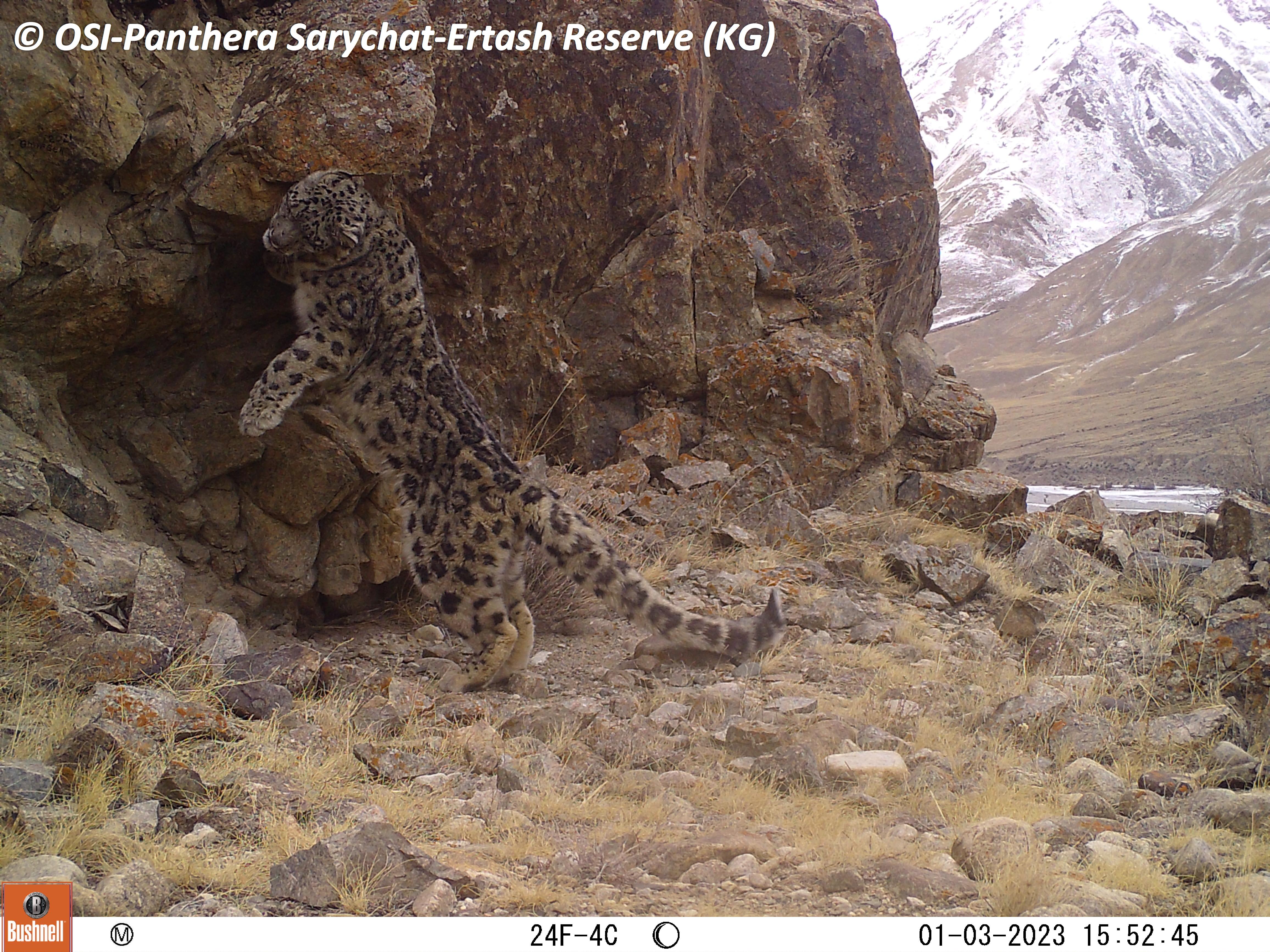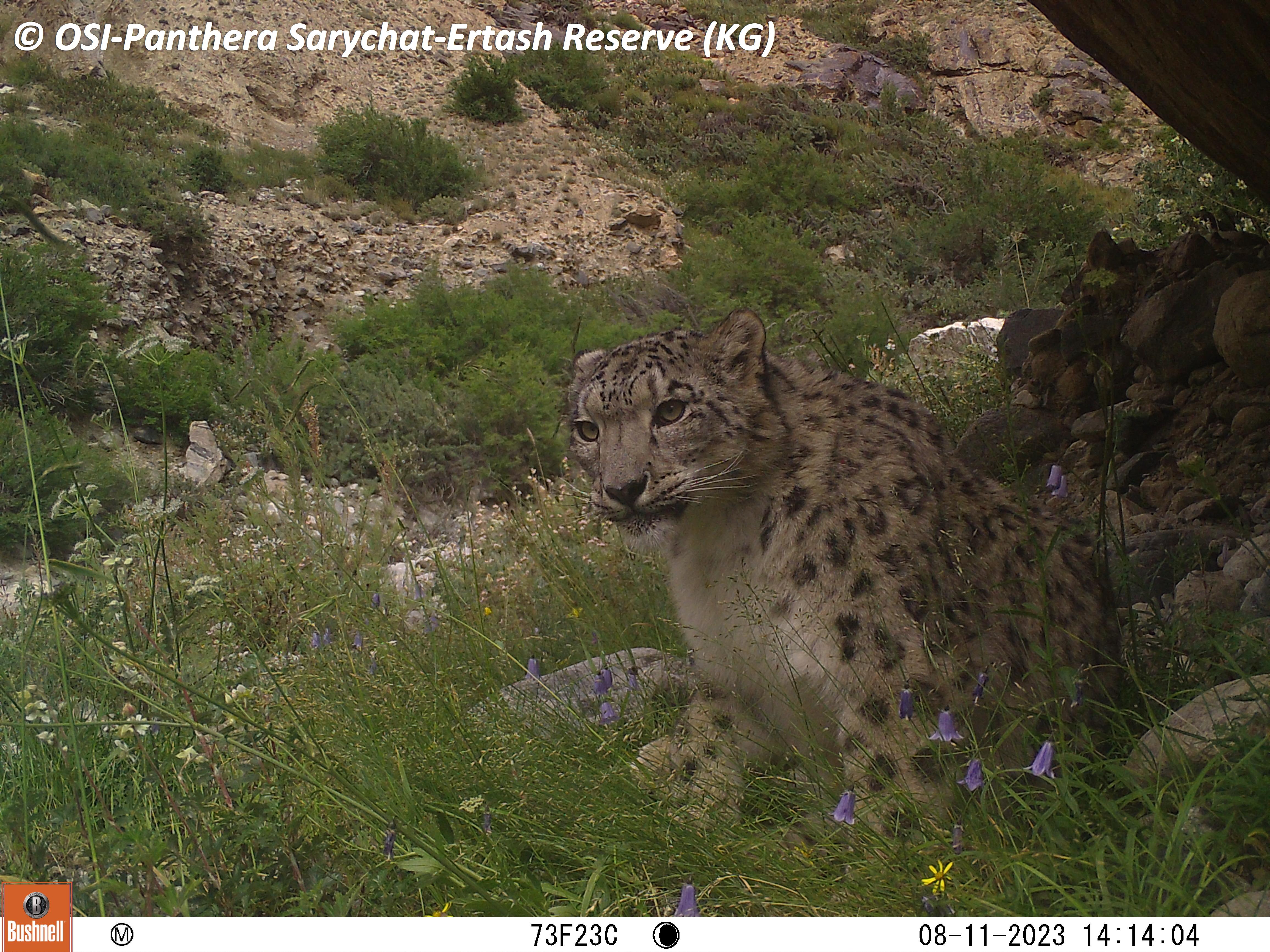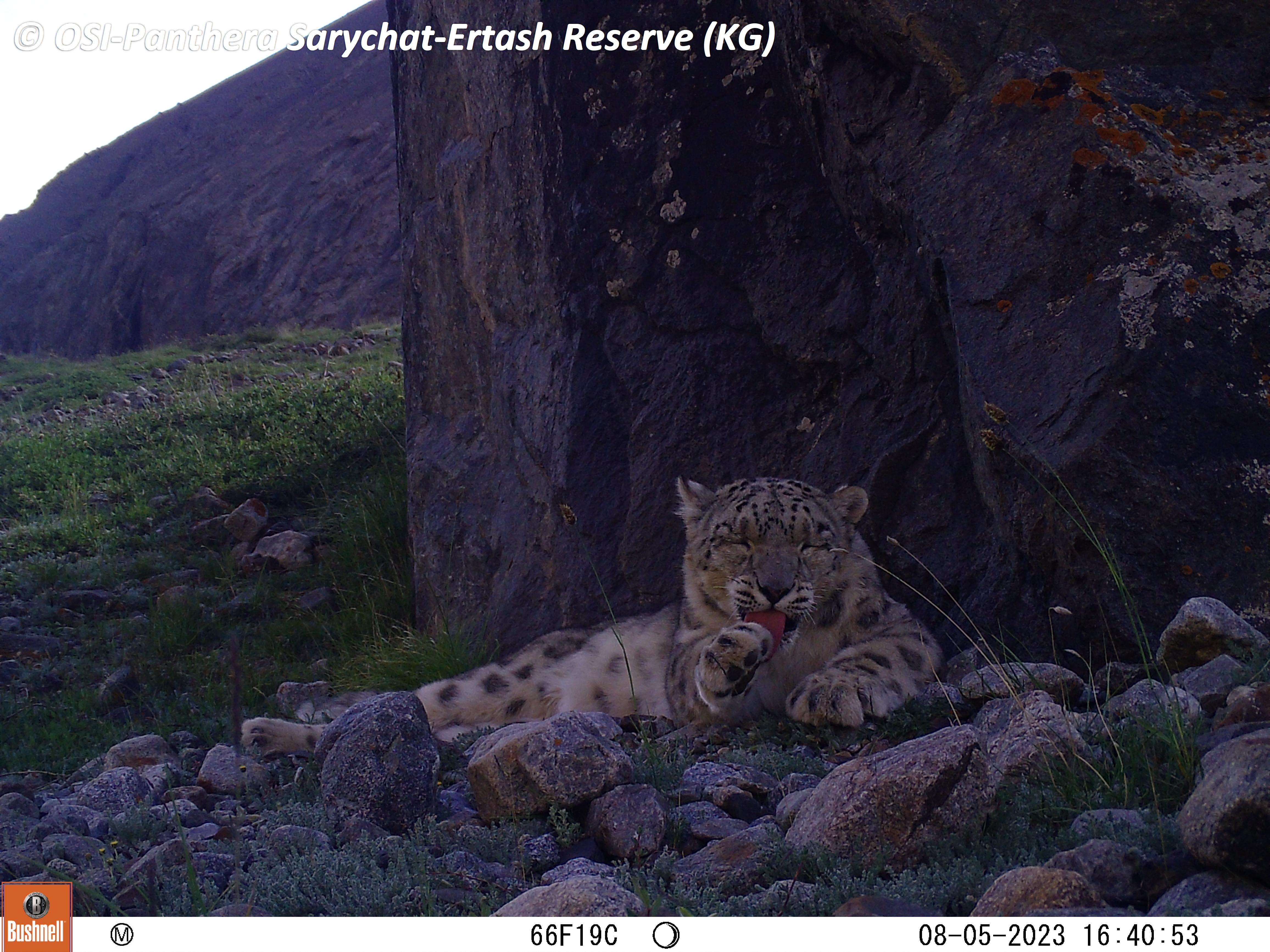 Le second groupe se rend dans le vallon de Kitchi Sary Etchki et y relève le piège photo qui a pu capter quelques passages de Panthère.