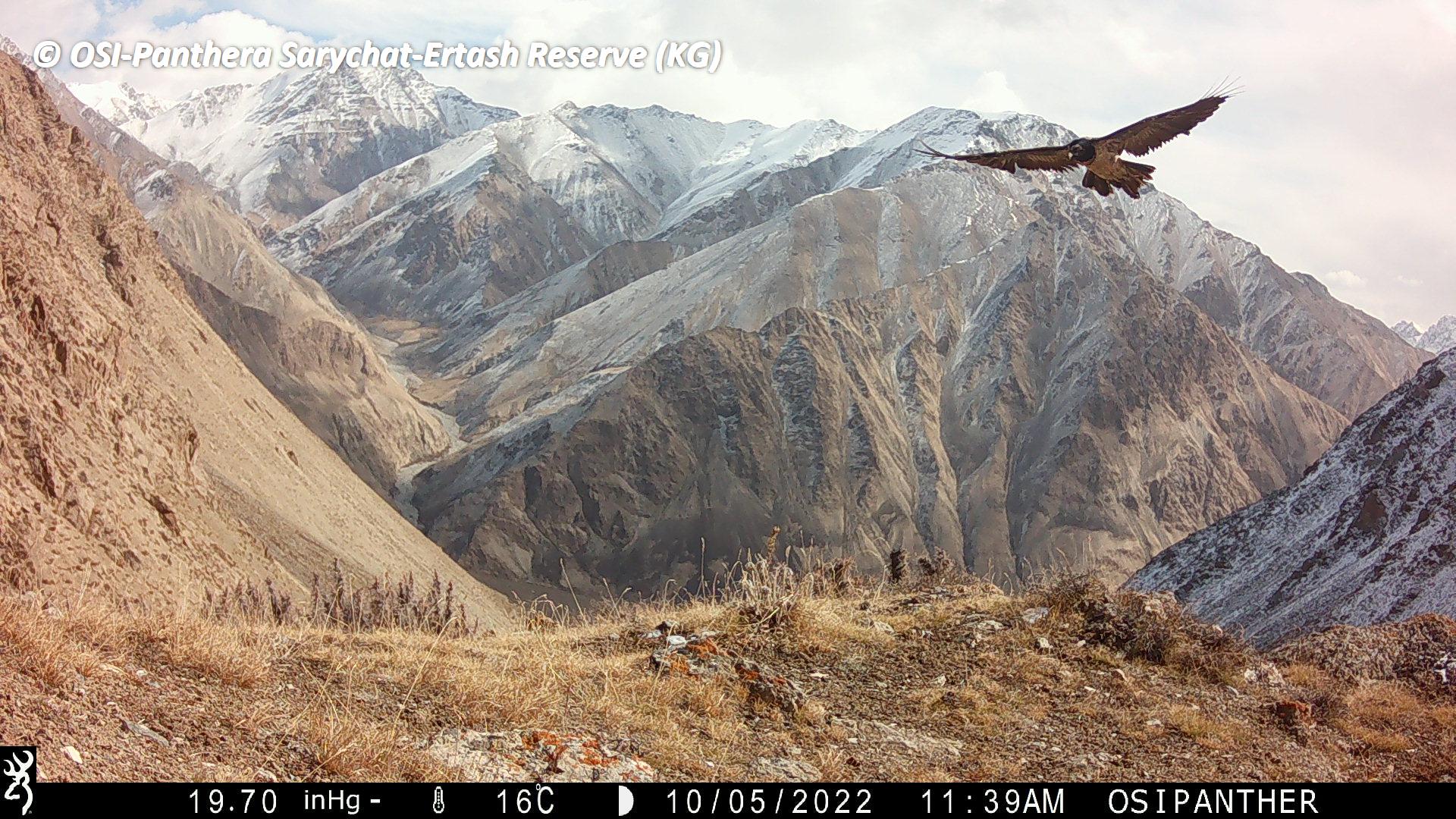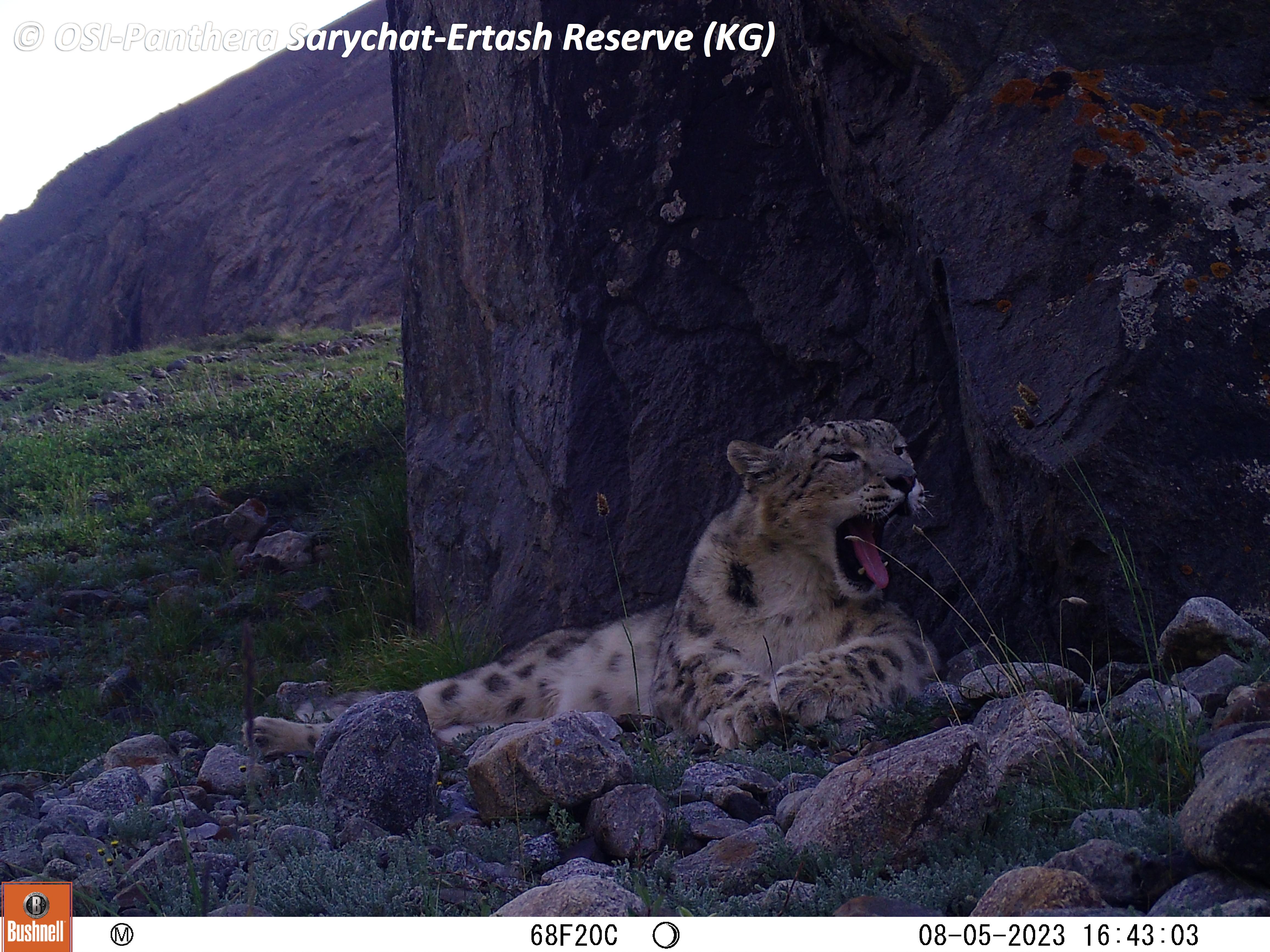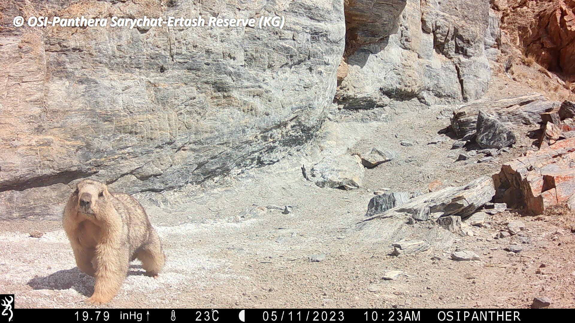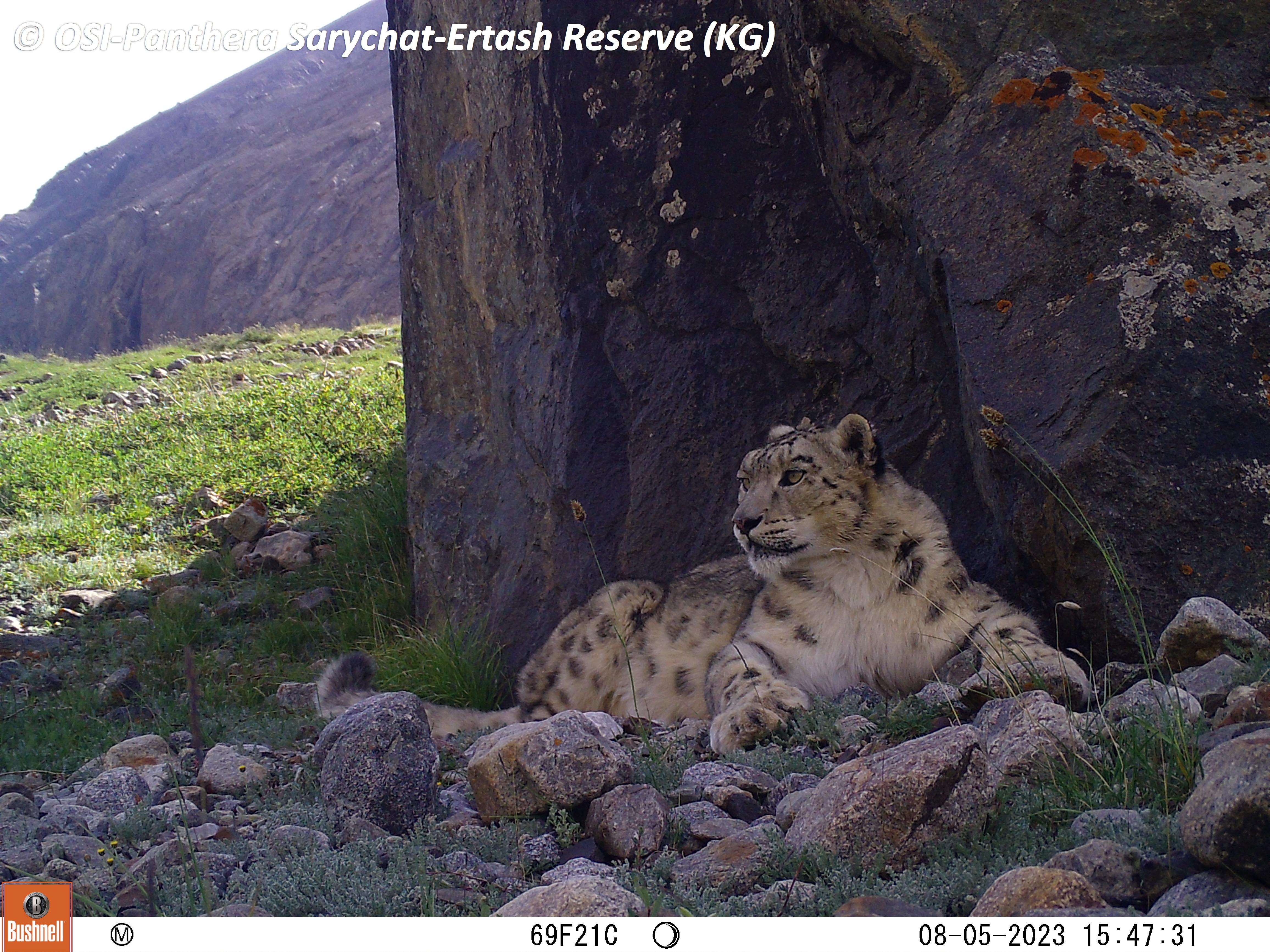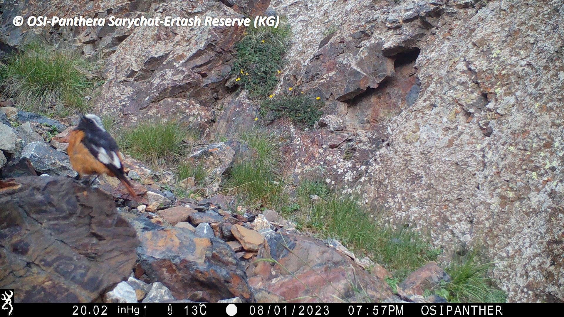 Le second groupe se rend dans le vallon de Kitchi Sary Etchki et y relève le piège photo qui a pu capter quelques passages de Panthère.