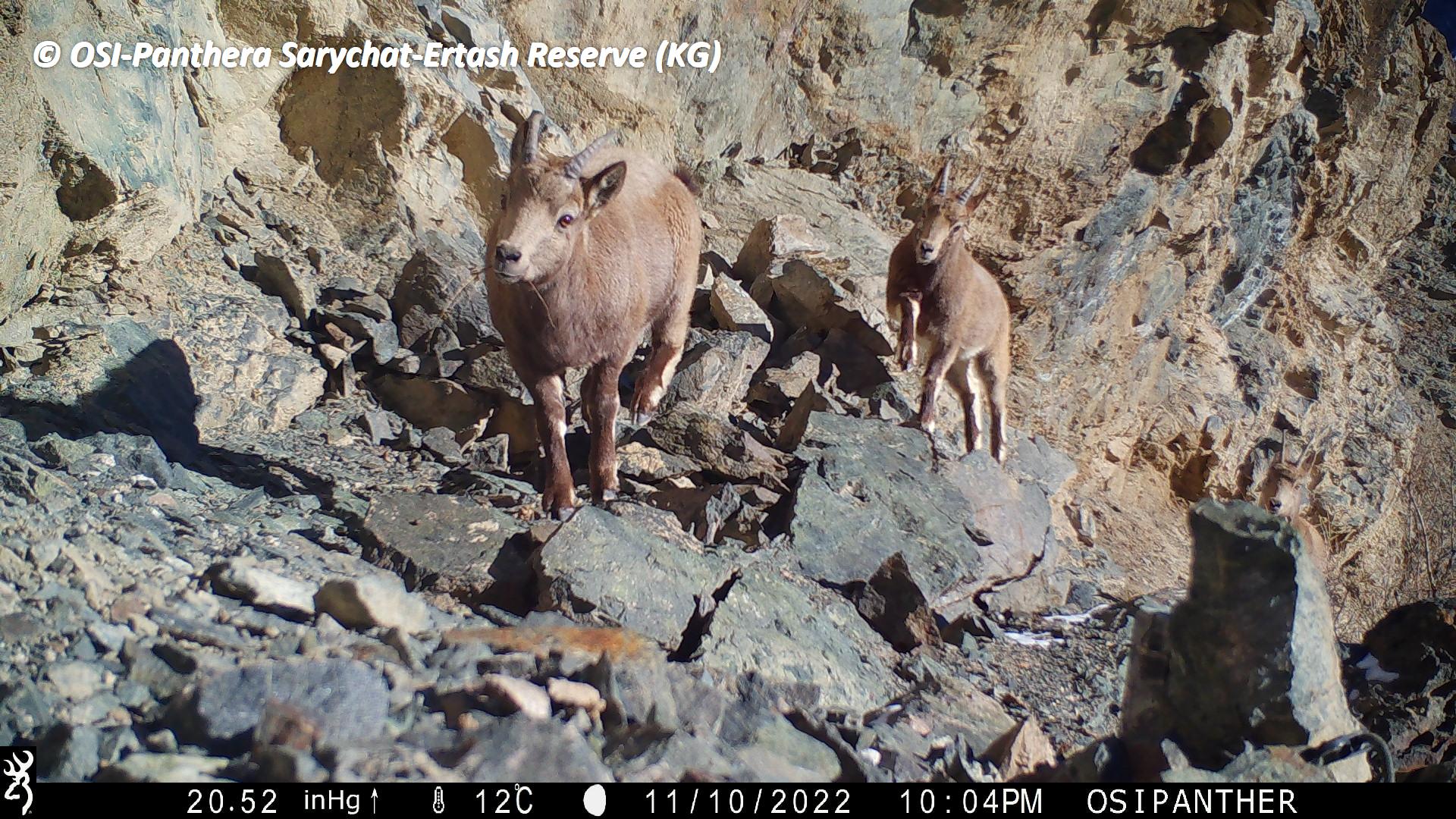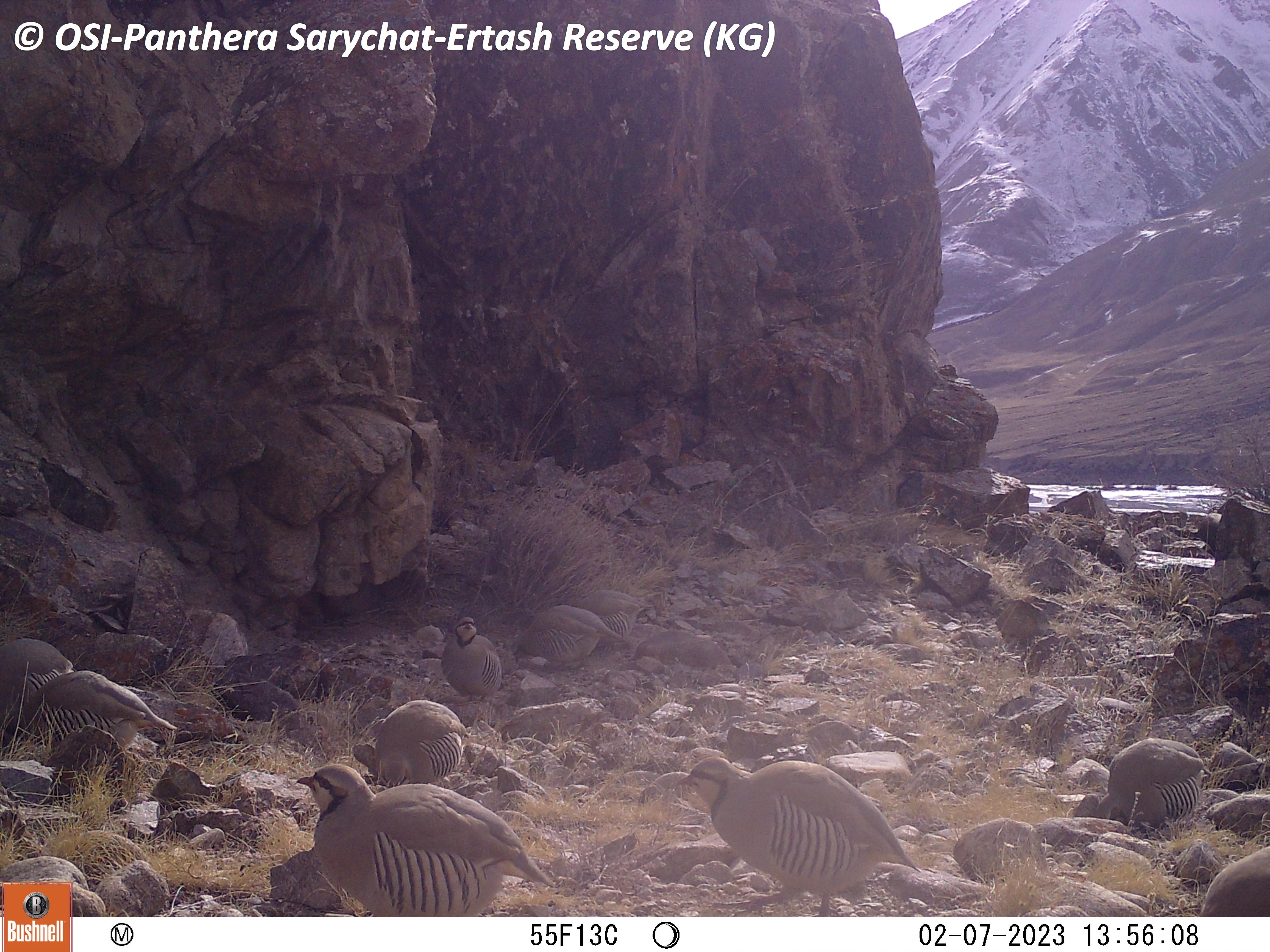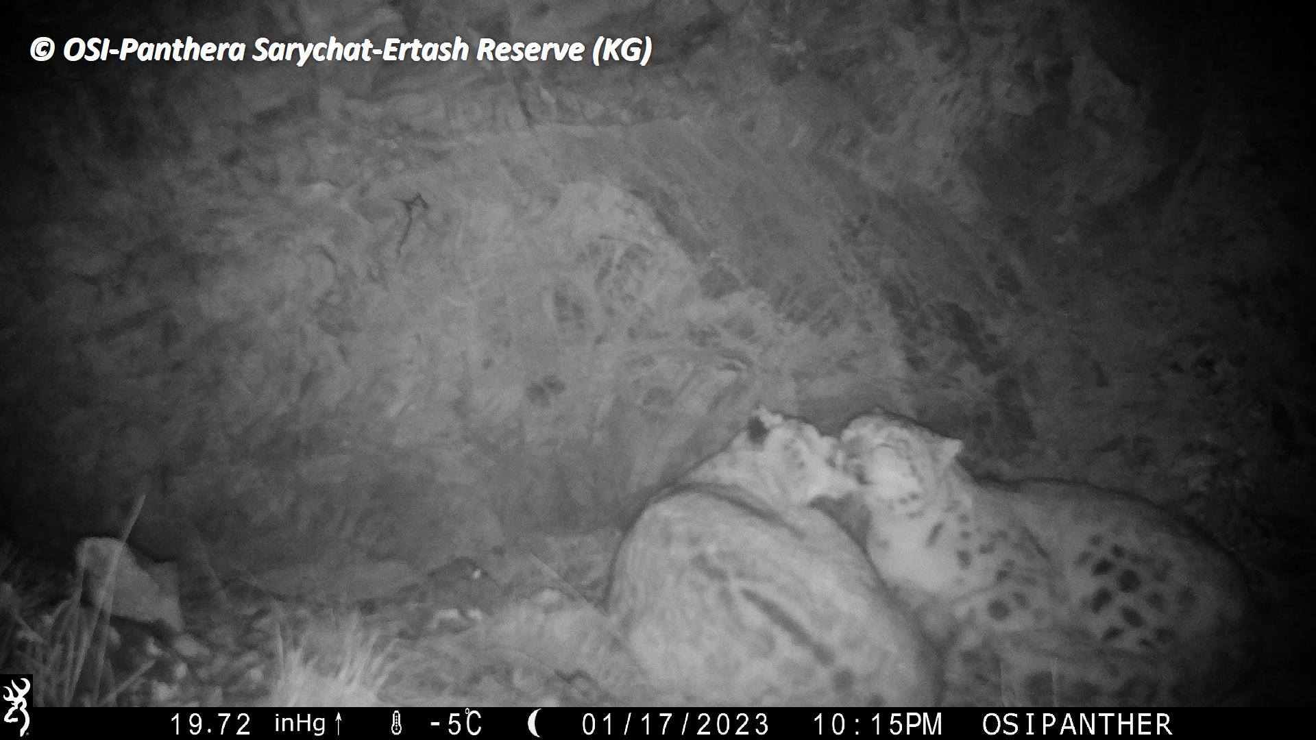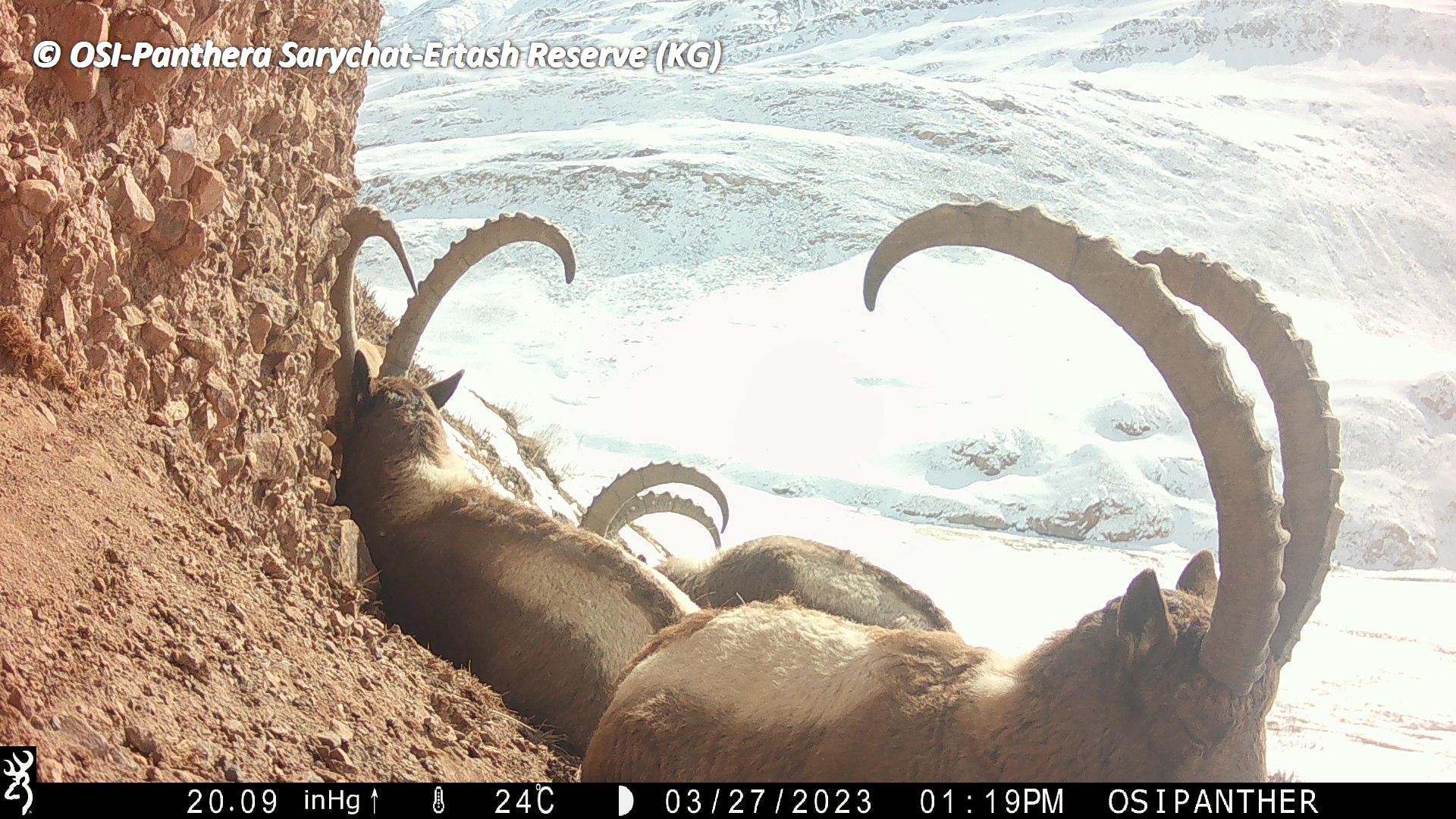 Au retour de la première équipe, petit pique-nique et on charge les chevaux. En route on en profite pour relever le piège photo situé à Kizil keregue. Mauvaise nouvelle, celui ci s’est arrêté en septembre 2022... Zut ! Cependant, lors de son fonctionnement il a tout de même ou enregistrer plusieurs passages de Panthère des neiges dont une femelle accompagnée d’un subadulte.
