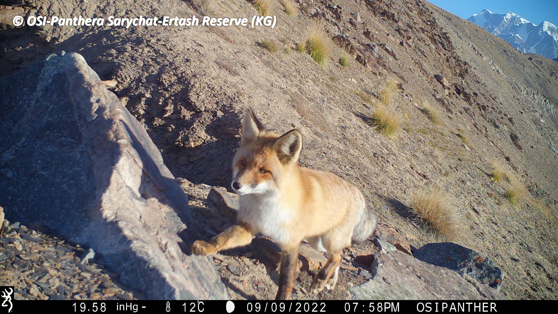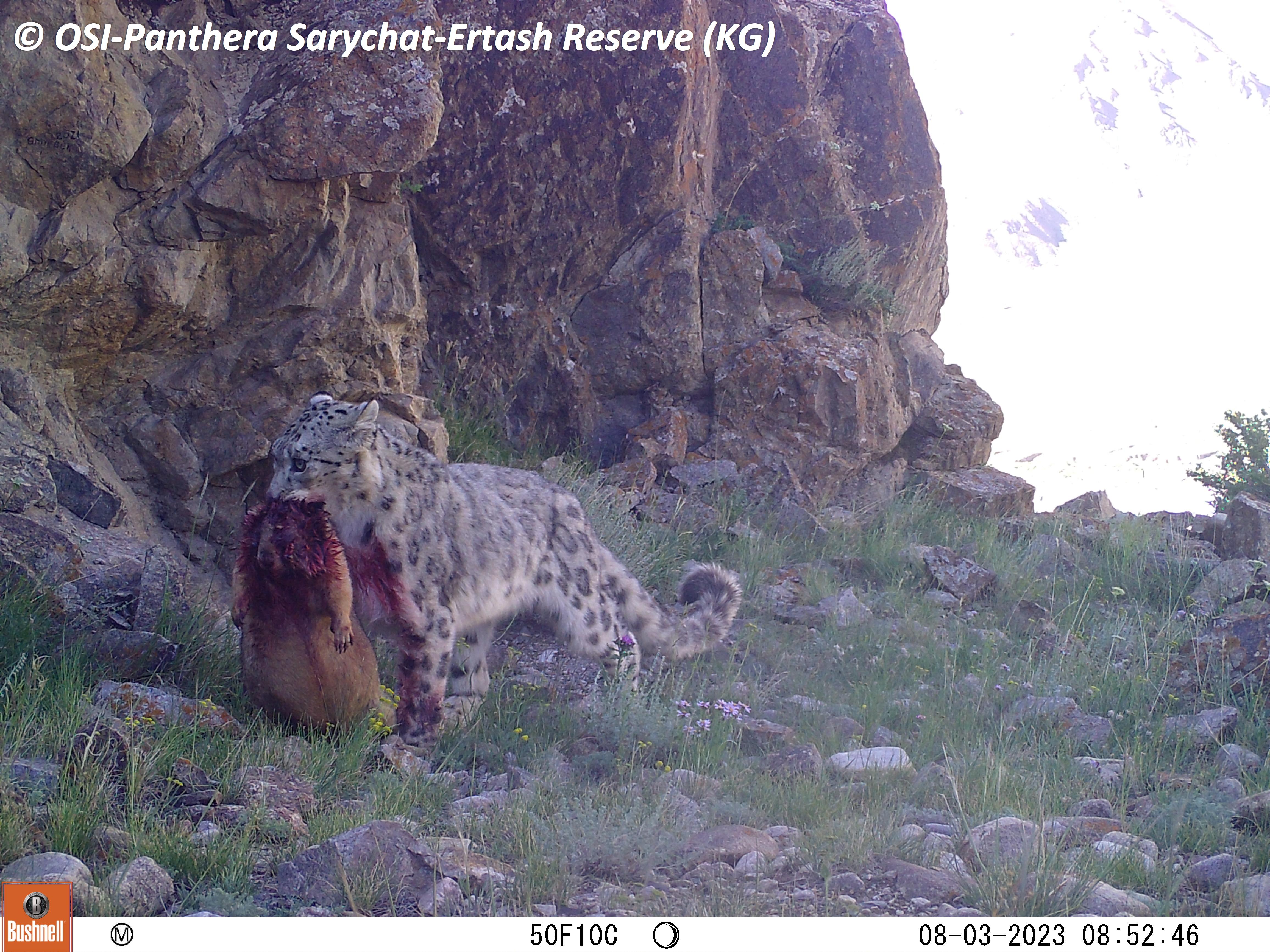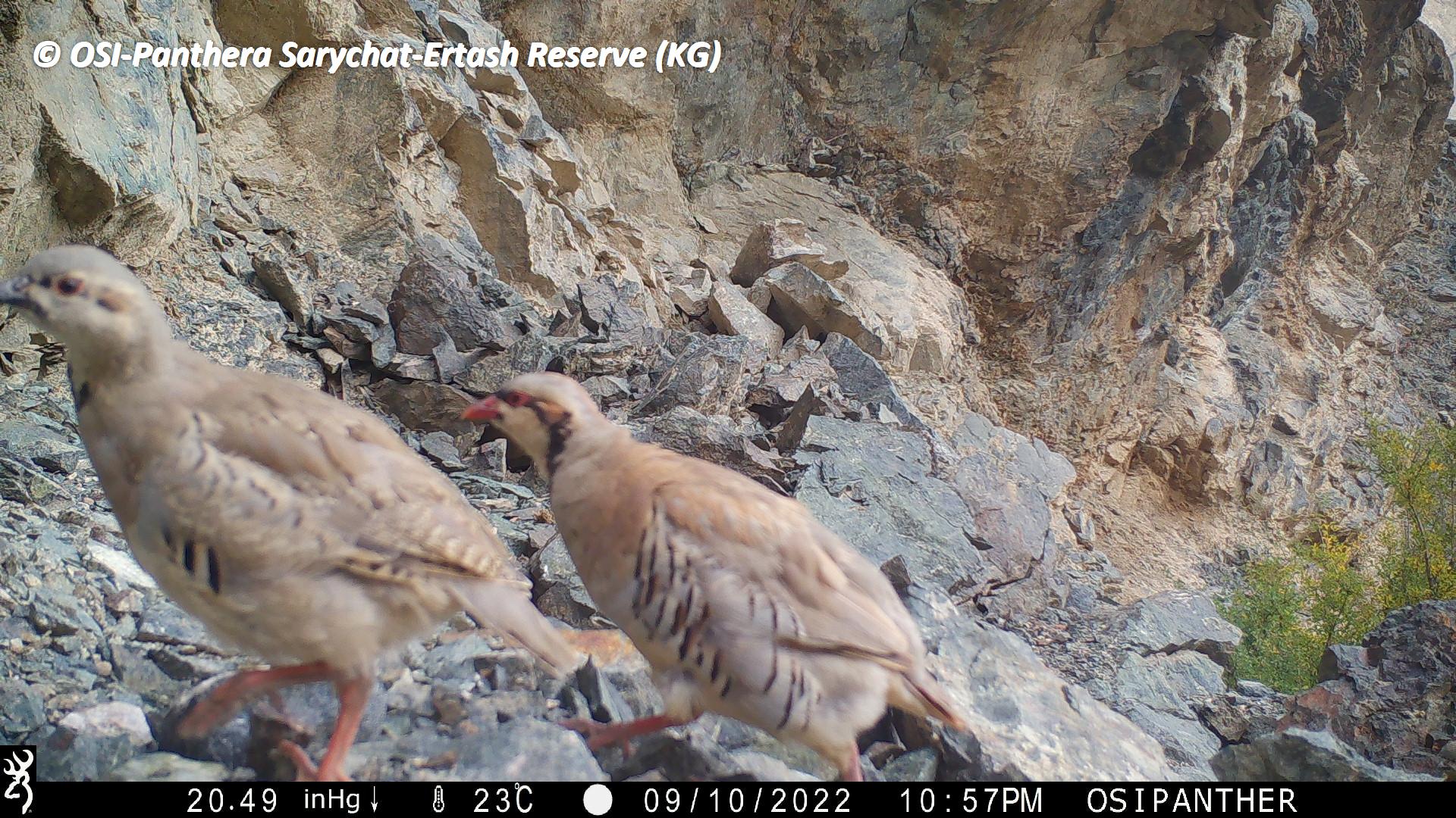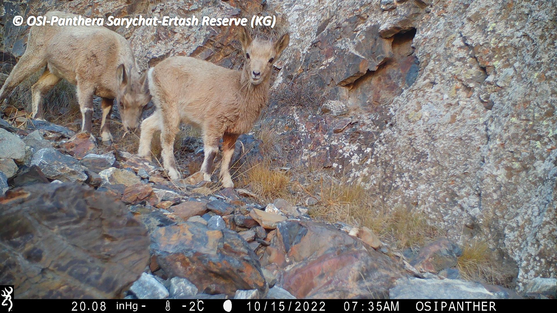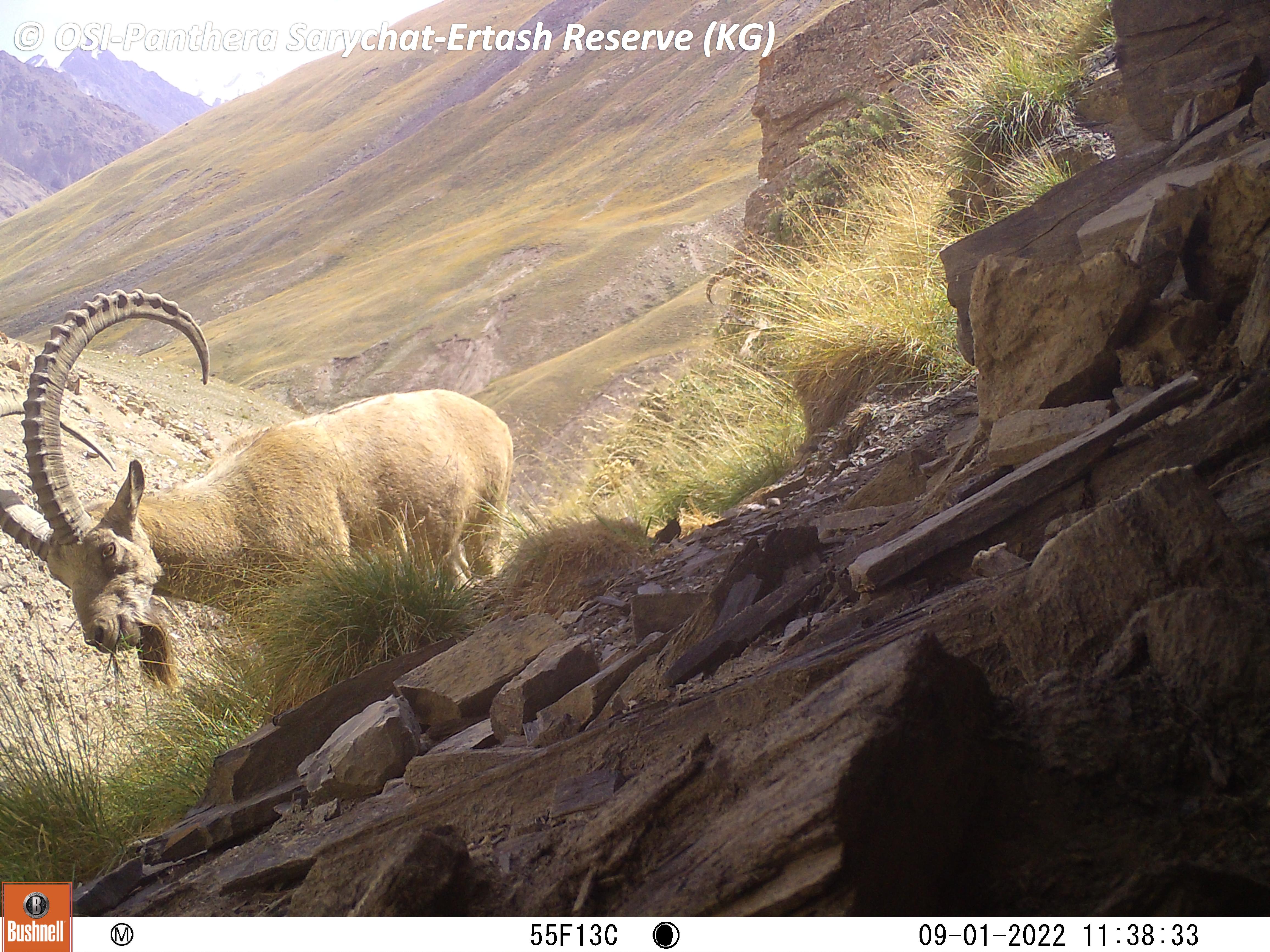 Au retour de la première équipe, petit pique-nique et on charge les chevaux. En route on en profite pour relever le piège photo situé à Kizil keregue. Mauvaise nouvelle, celui ci s’est arrêté en septembre 2022... Zut ! Cependant, lors de son fonctionnement il a tout de même ou enregistrer plusieurs passages de Panthère des neiges dont une femelle accompagnée d’un subadulte.