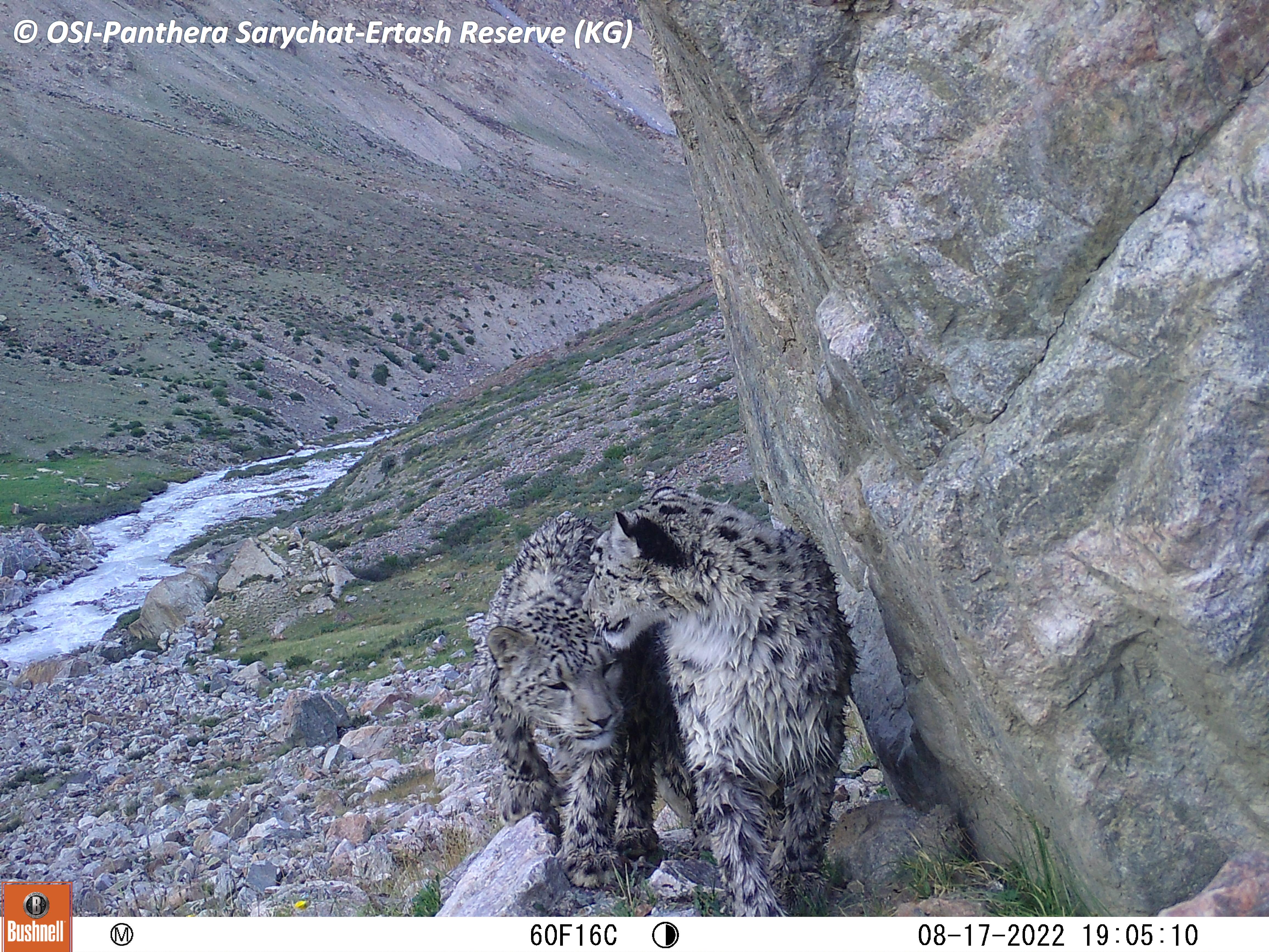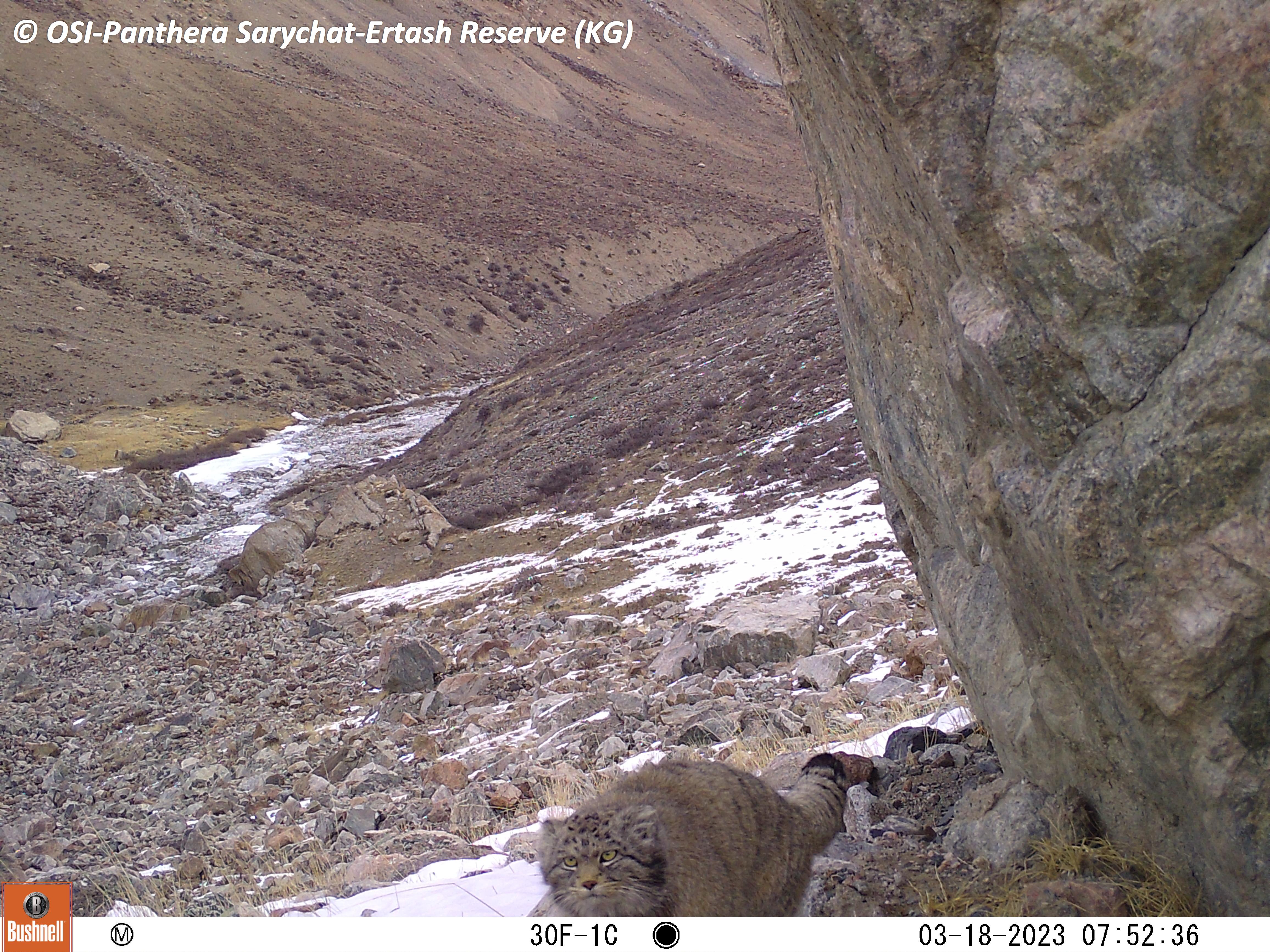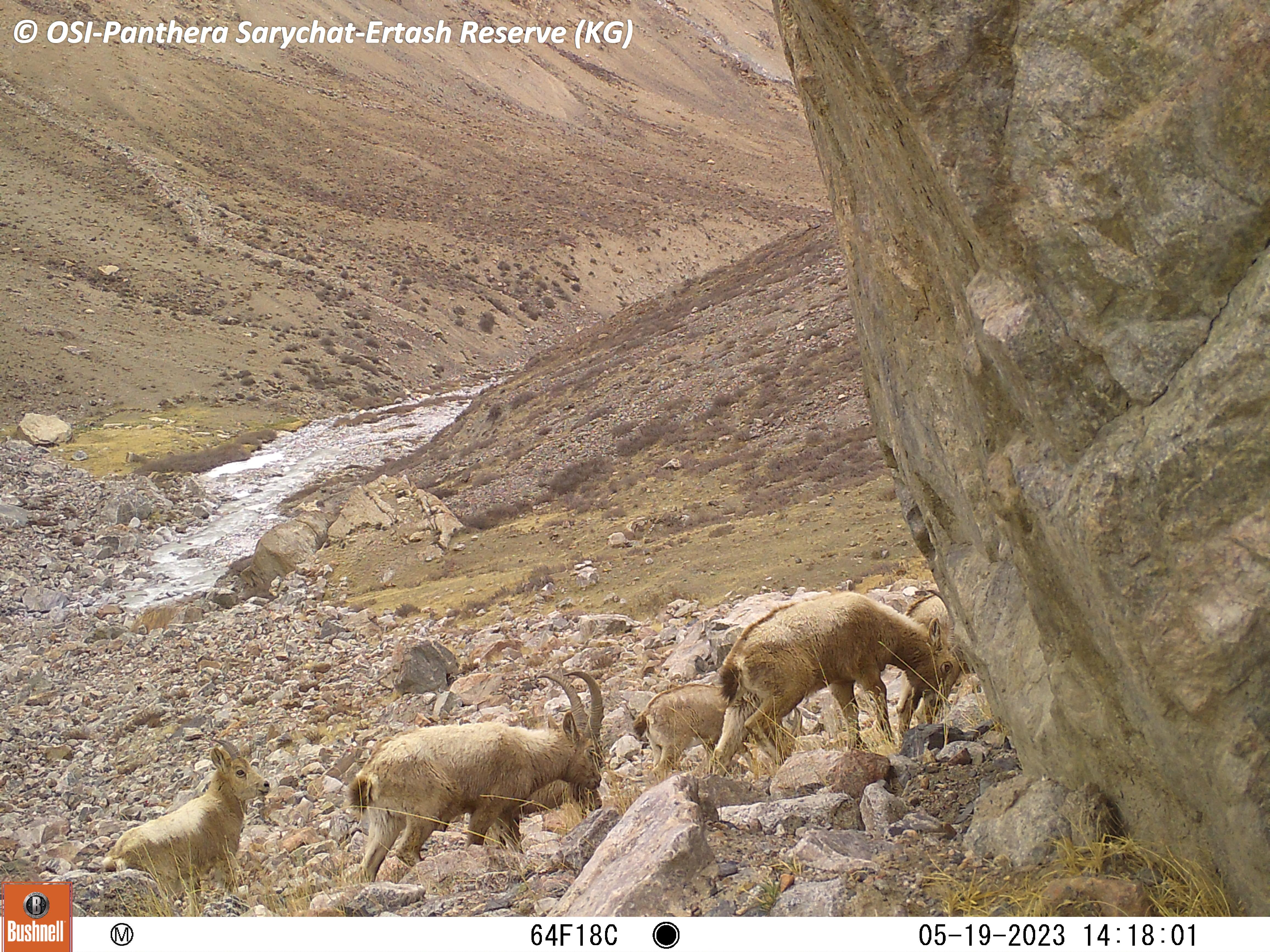 Le Groupe 2 part à cheval en rive droite du torrent Jaman Suu (« les eaux mauvaises » au sens de « dangereuses ») et sur le piège photo découvre du loup de l’ours et du Manul ! Le fameux chat de Palas, encore plus rare que la panthère des neiges.