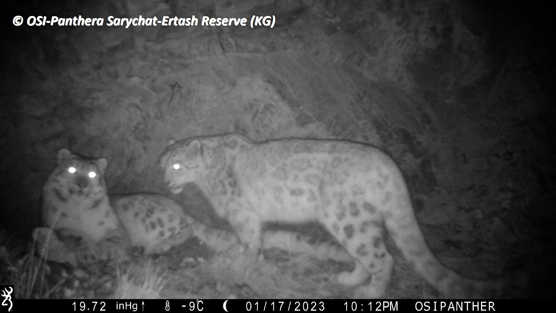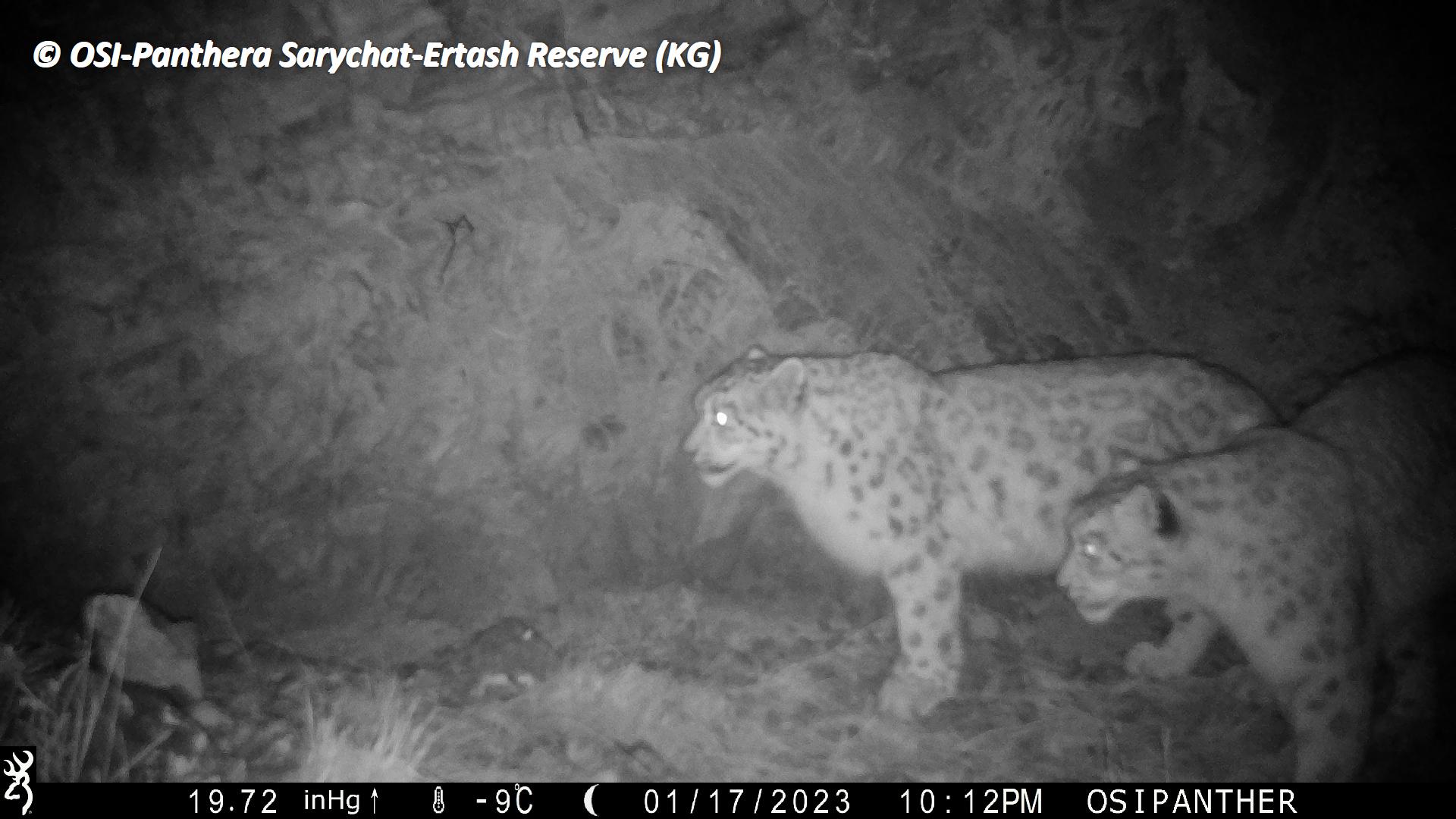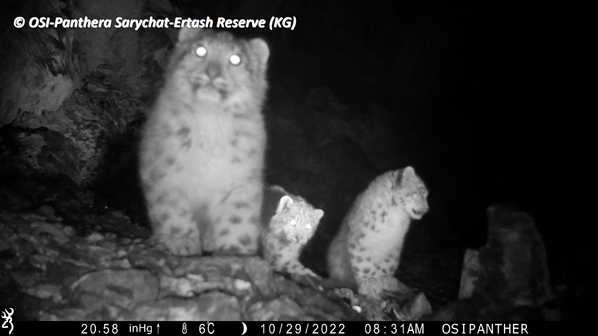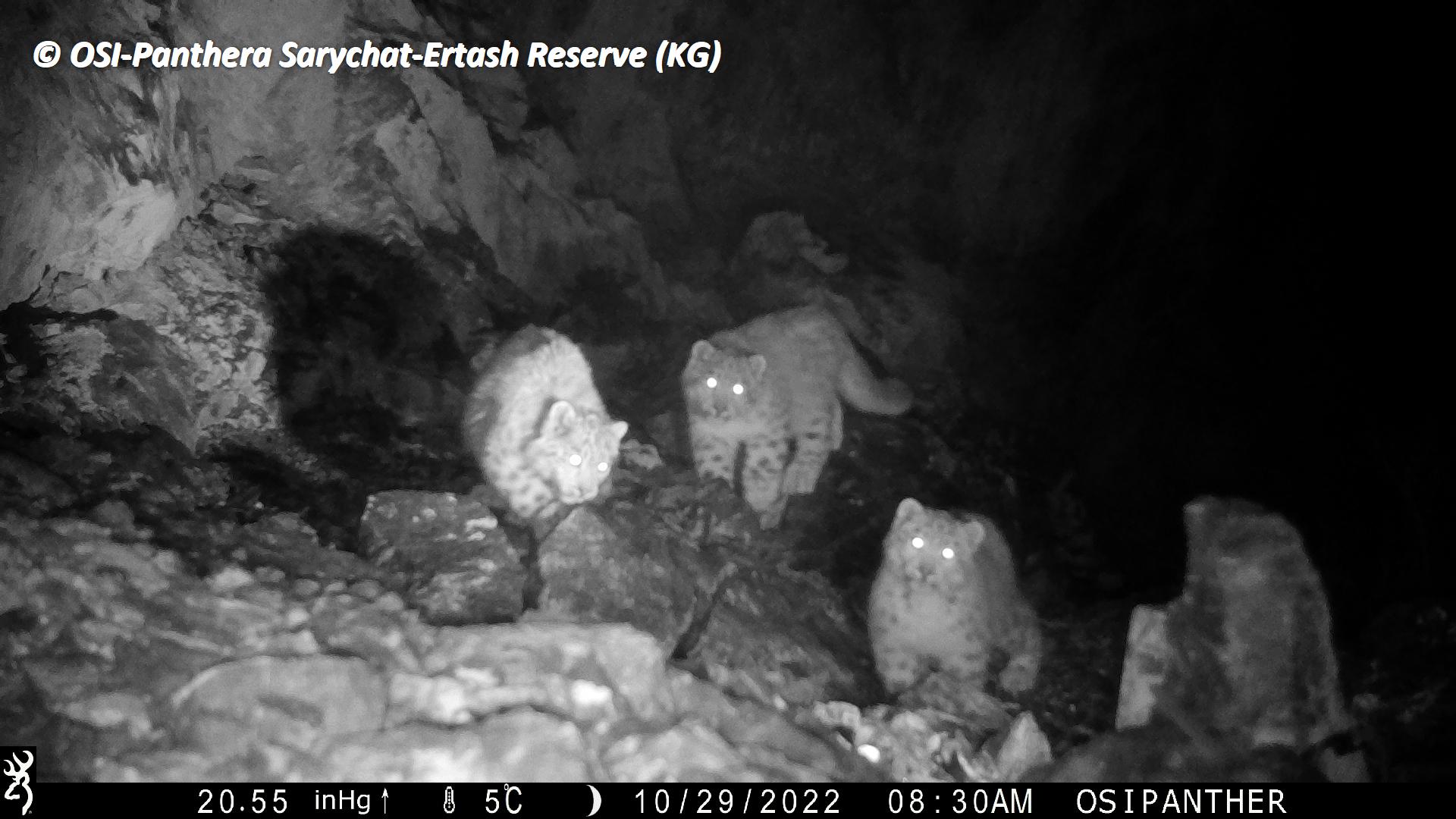 Sur le piège photos relevé on observe plusieurs panthères des neiges !