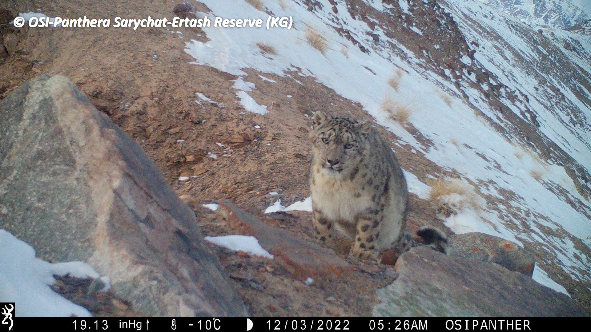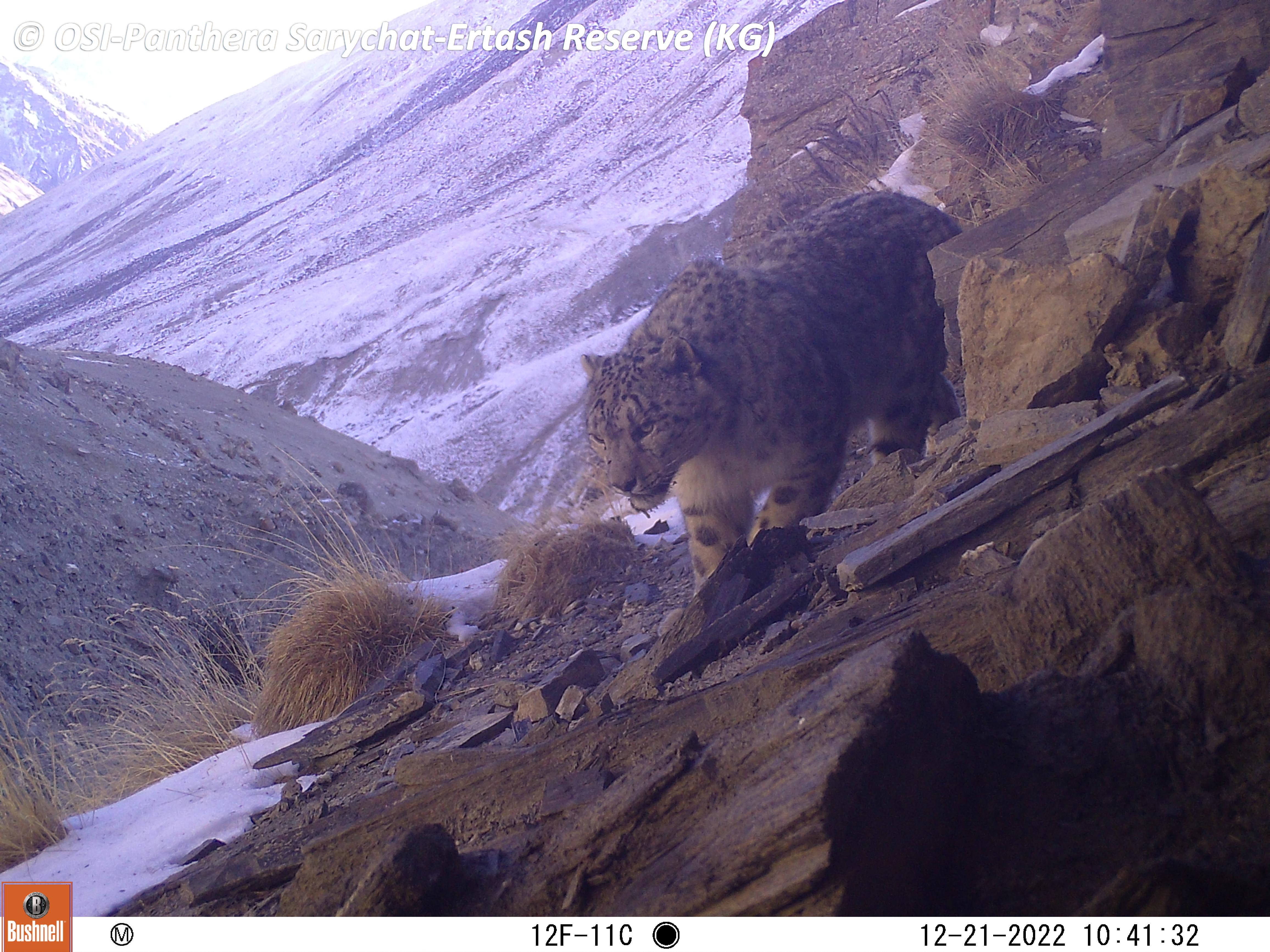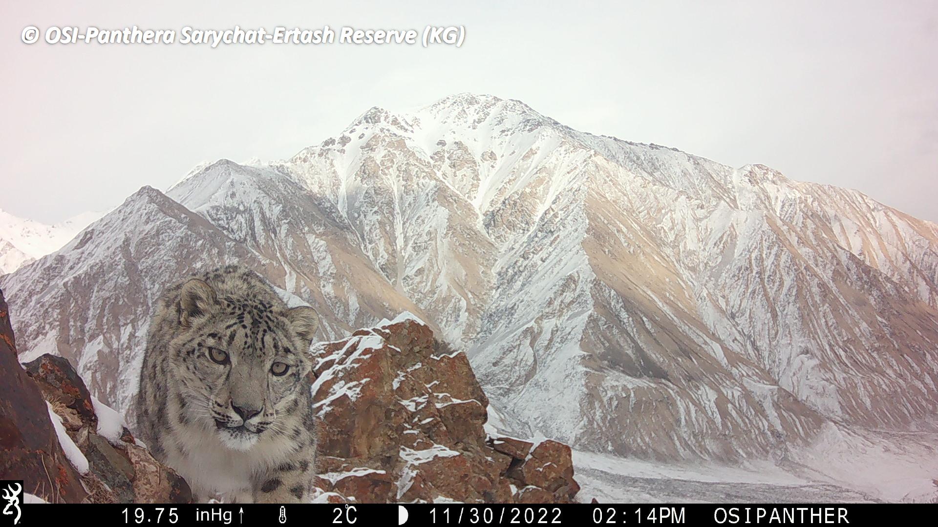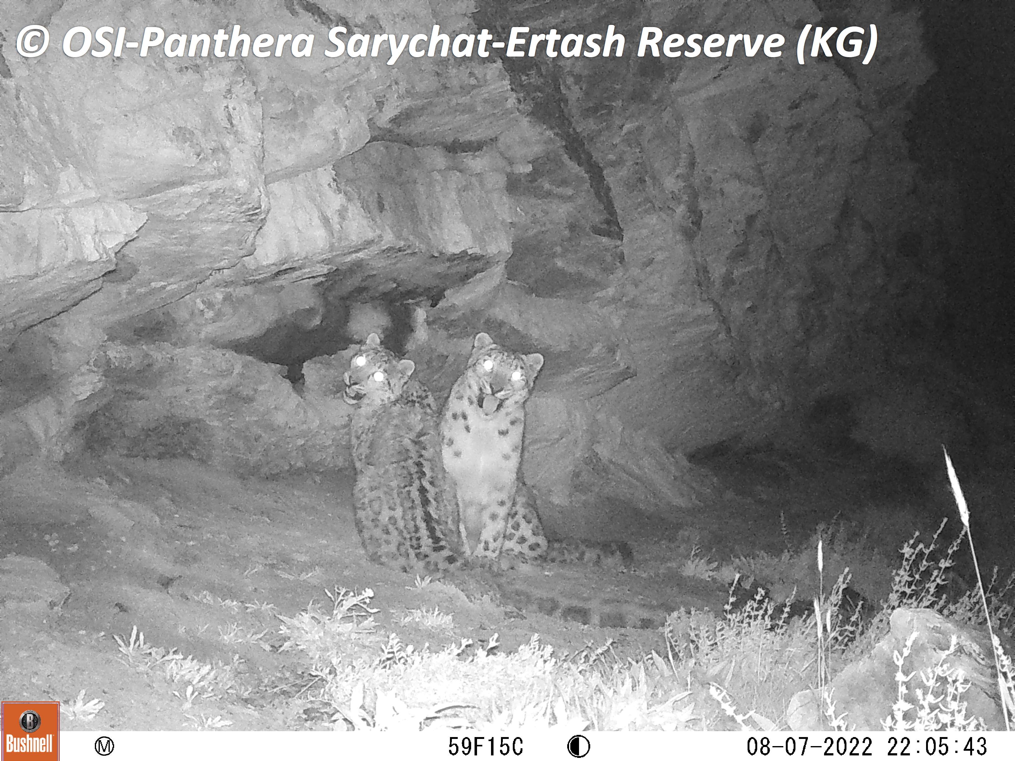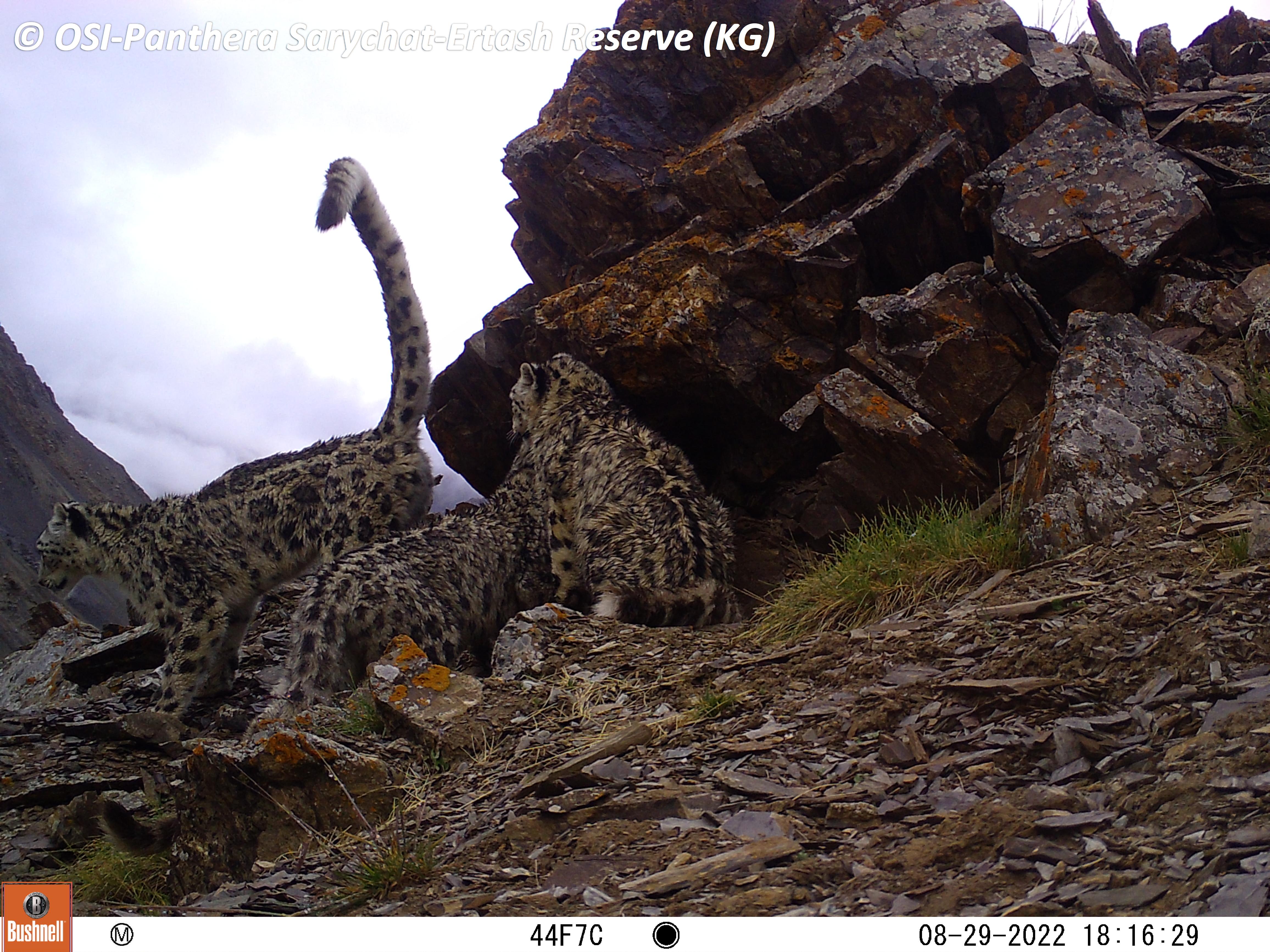 Sur le piège photos relevé on observe plusieurs panthères des neiges !