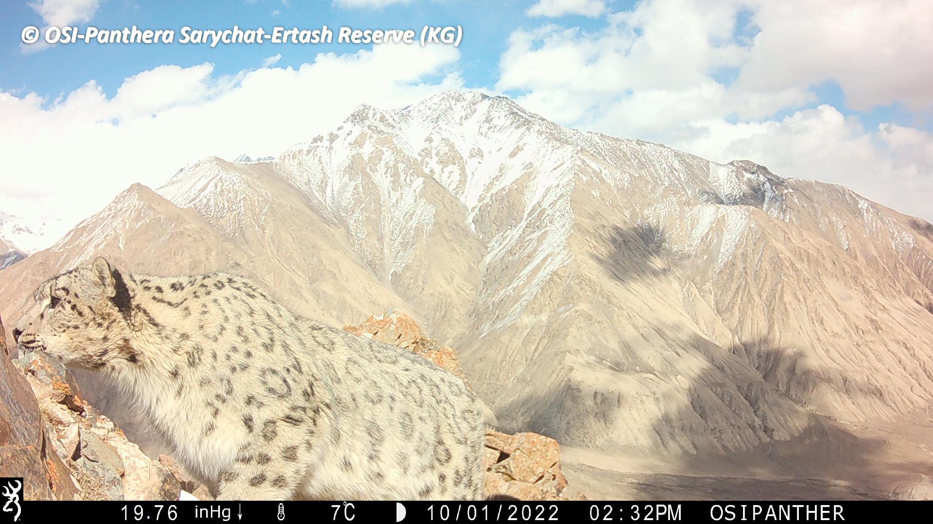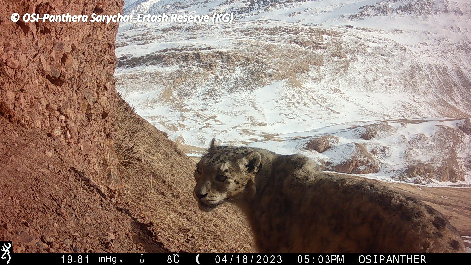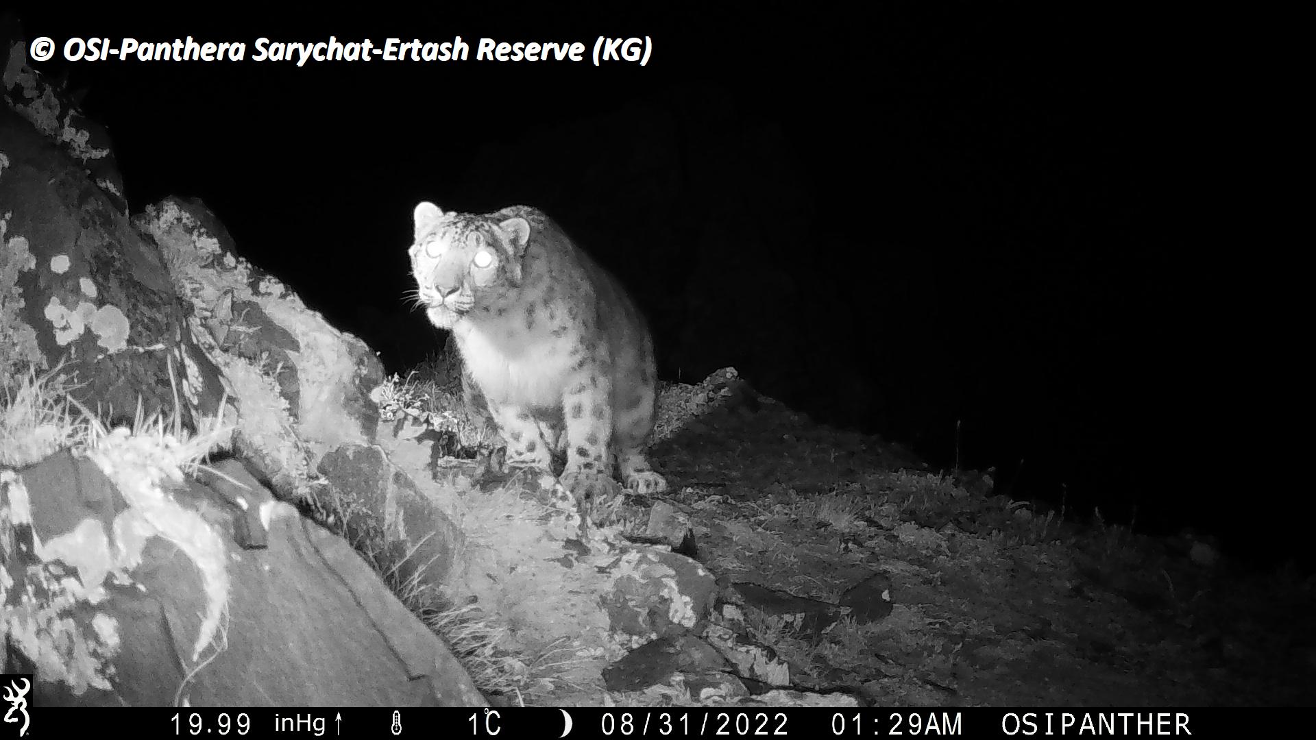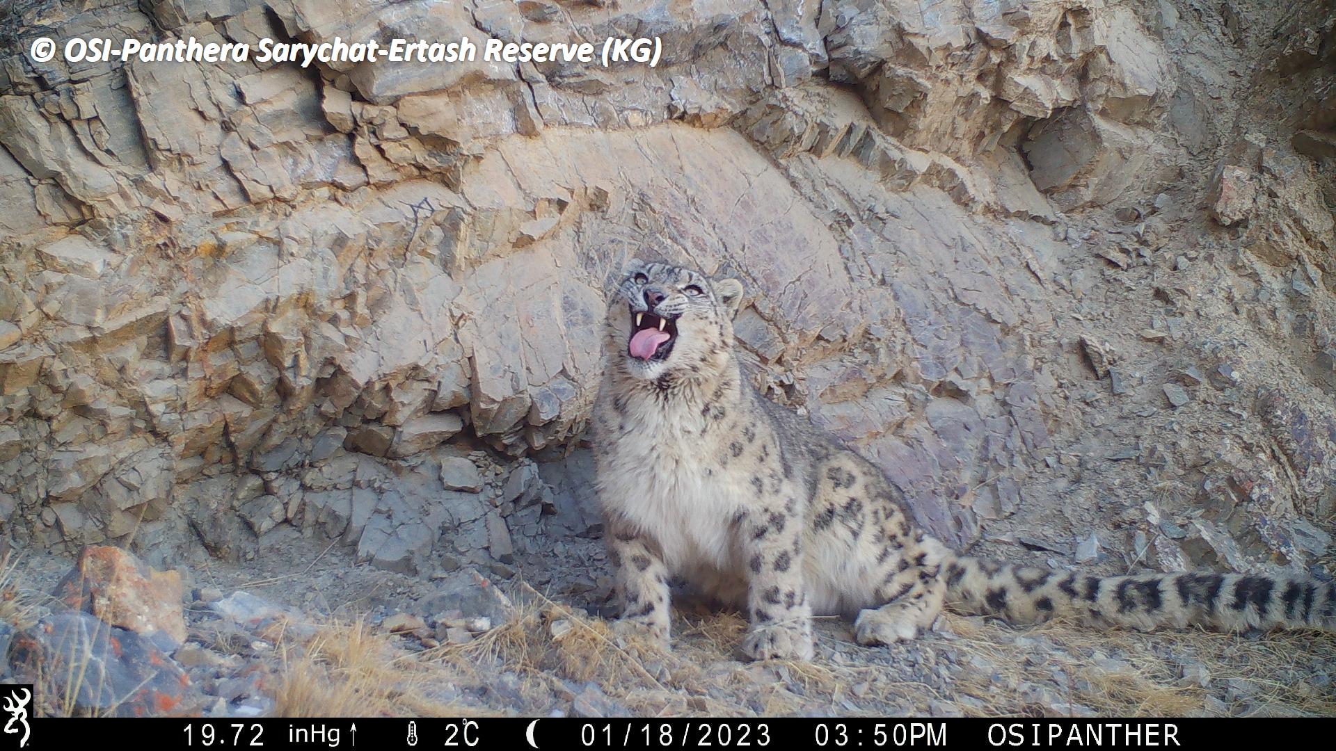 Sur le piège photos relevé on observe plusieurs panthères des neiges !