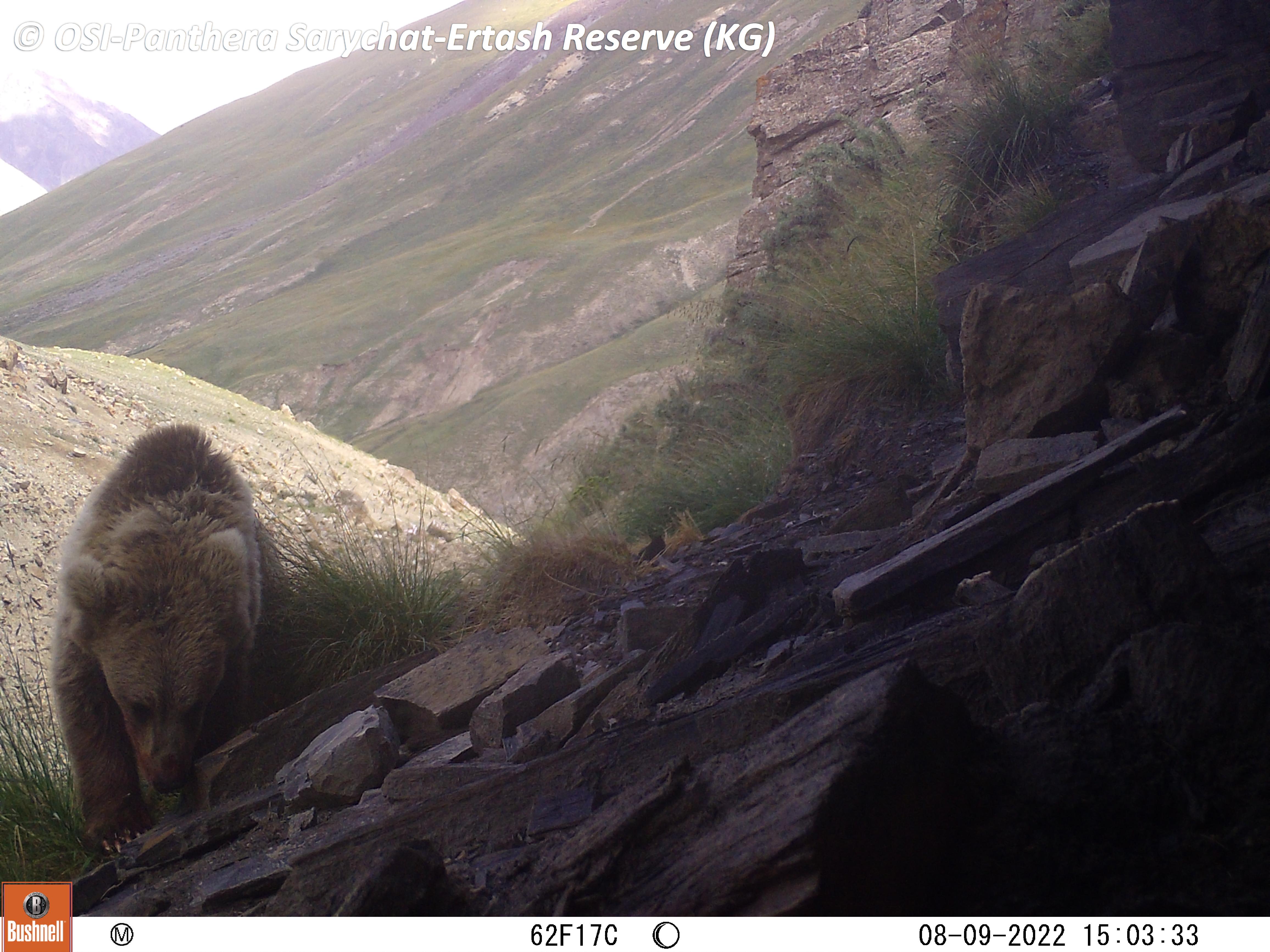 Le groupe descend sur le camp de Solomo en bord de rivière, et réalise un transect à pied au bord du torrent Ertash. Il trouvera des empreintes de panthère ainsi que des poils du félin, empreintes de sanglier et crottes d’ours !