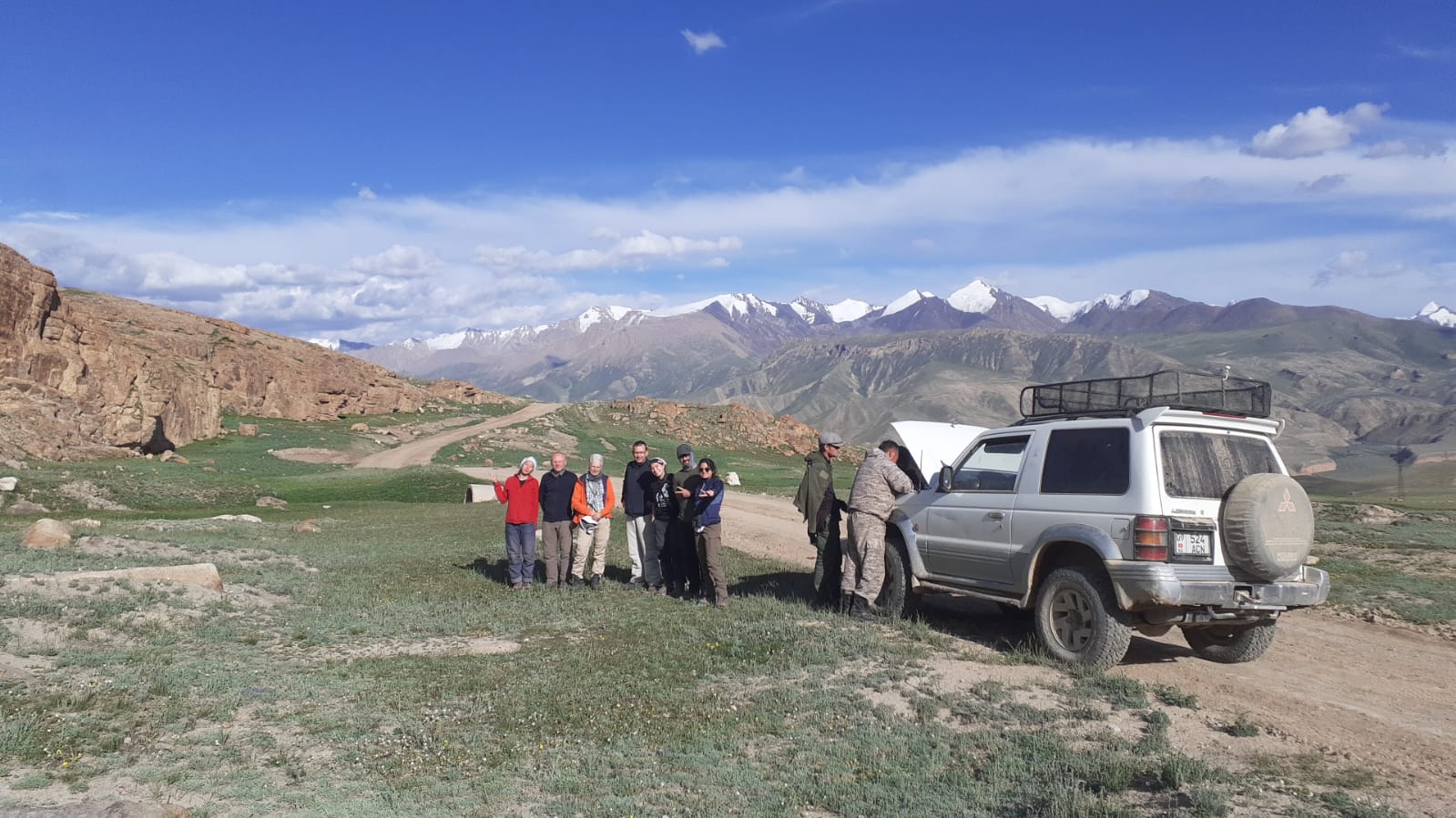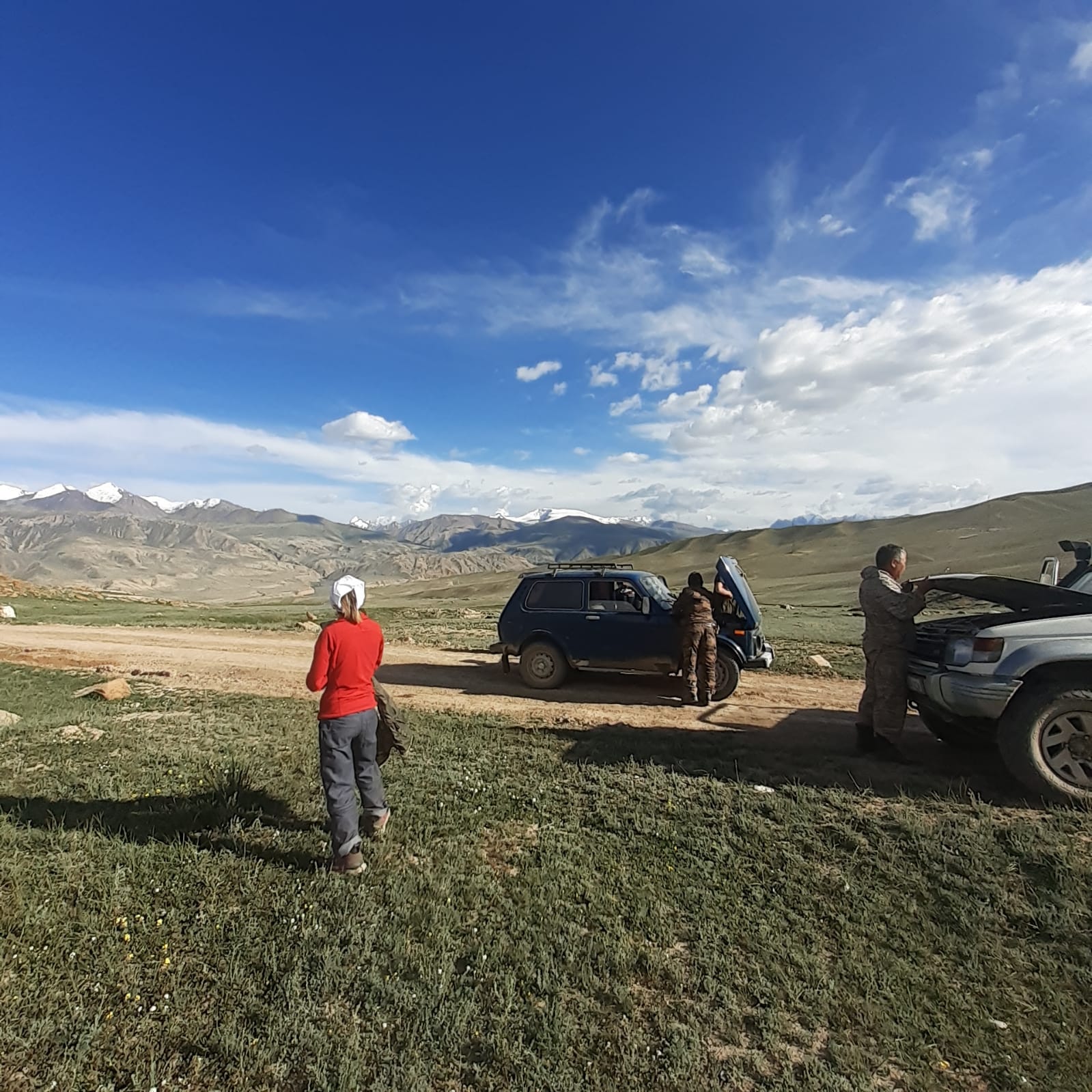 Comme souvent vu l’état des pistes, l’équipe a du s’arrêter en route pour quelques réparations.