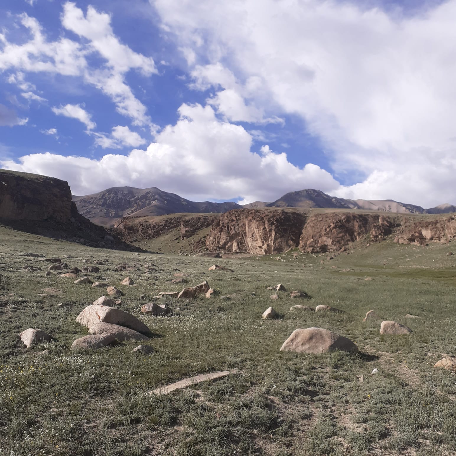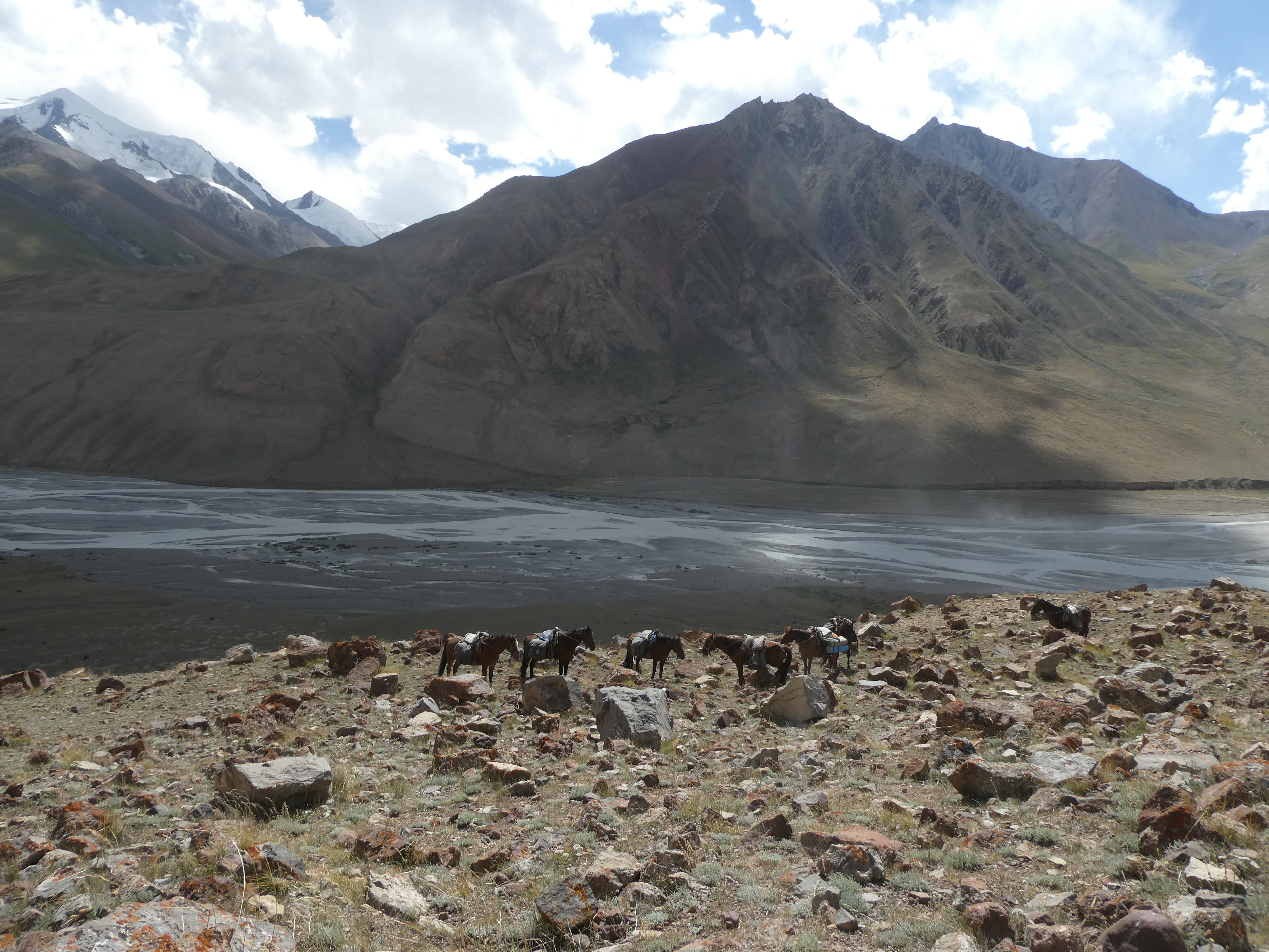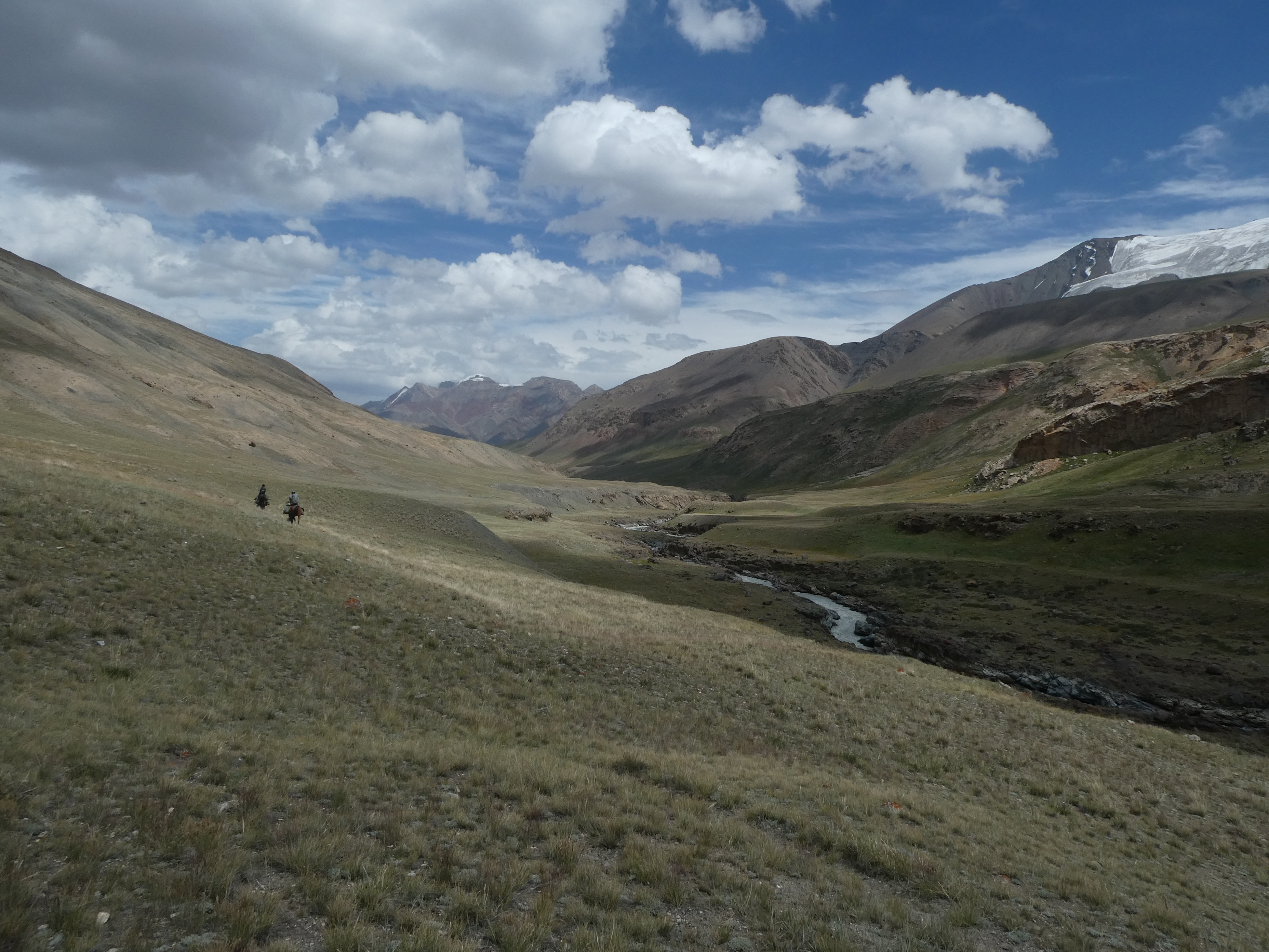 Anvar est parti directement à Koiendou avec le cheval de bat. Nous faisons un détour par le vallon de Tchong Kashkateur en espérant observer de gros mâles mouflons ou des loups...
