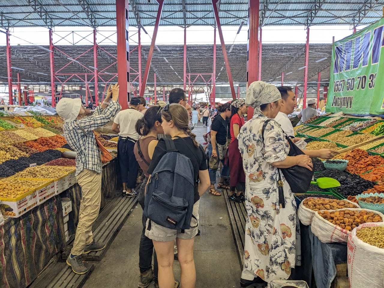 On arrive à Bishkek en début d’après-midi, on dépose rapidement les affaires avant de filer à Osh bazar faire les souvenirs. Comme toujours le groupe est hyper efficace, ils font le plein de fruits secs puis on file au restaurant.