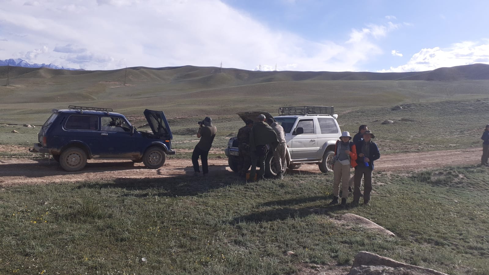 Voilà donc l’équipe qui attendait ce matin les jeeps de la réserve pour partir vers Koyundu avec l’irremplaçable Ulan que l’on connait depuis plus de 10 ans sur la réserve, Omourbek le doyen des gardes, et Tchimchtik (l’oiseau) un nouveau garde très loquace vu son sobriquet...