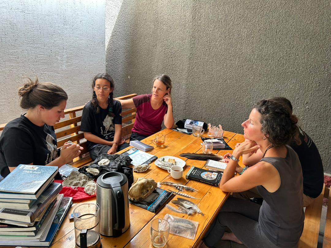 Anne-Lise présente le programme scientifique mais aussi de la mission, montre les moulages d’empreintes de loups, la reproduction d’un crâne de Panthère des neige (offerte par le MNHN), des empreintes d’Argali, d’Ibex, loup et panthère, tous ces mammifères que l’équipe pourra rencontrer dans la réserve de Sarychat Ertash - un écrin de vie sauvage à l’autre bout du Kirghizstan, perdu en haute montagne dans le contrefort de la chaine des Tien Shan, sur de hauts plateaux, vallées steppiques, à la frontière chinoise - . Une sorte de chimère tant qu’on y a pas mis les pieds et qui vous transporte à jamais une fois entre aperçu. Mais aussi poils d’ours, plumes de vautours... un trésor naturaliste avant de partir sur le terrain !