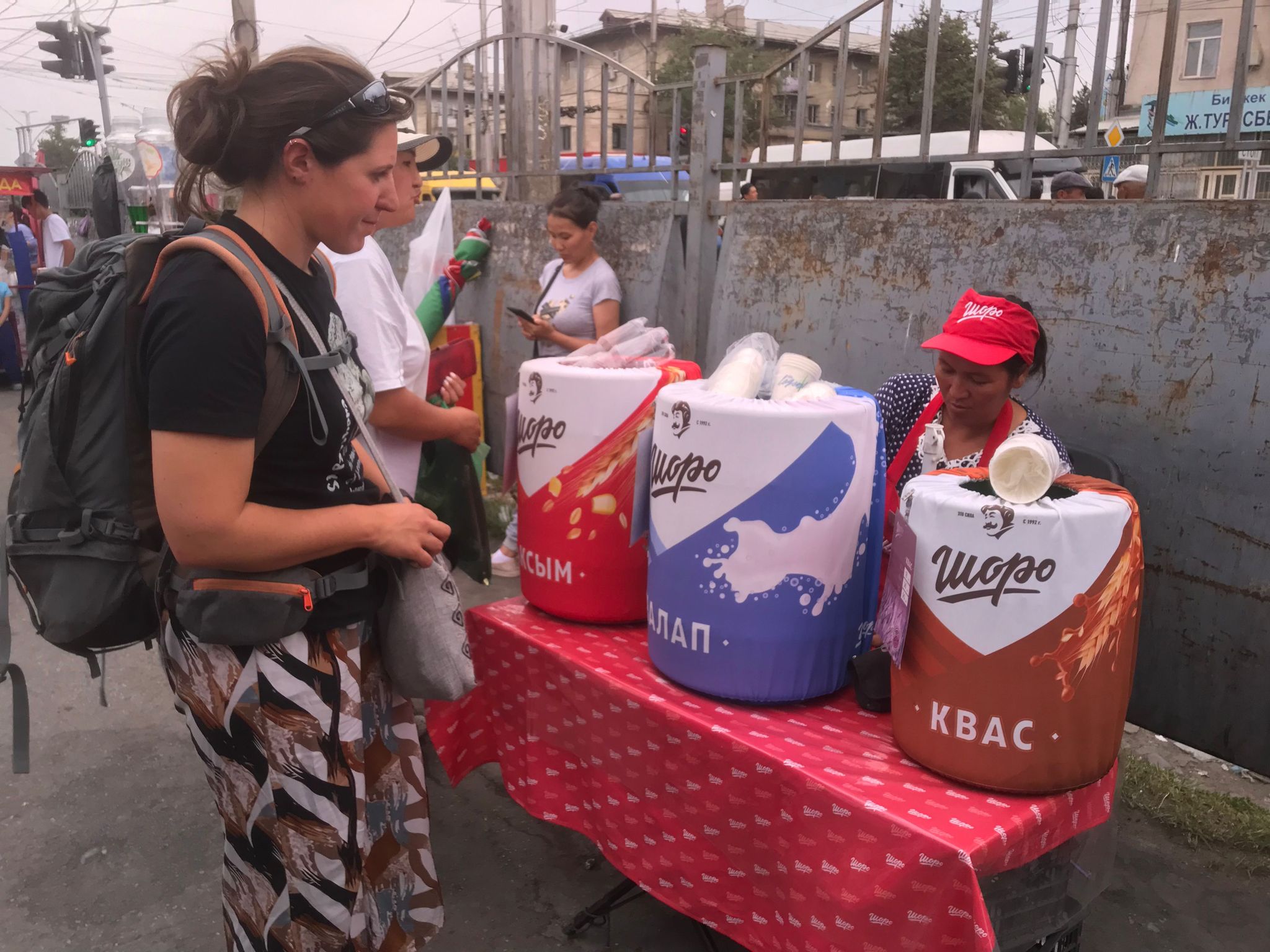 Et si on goûtait les boissons locales pour se rafraîchir ? Un Chalap ? C’est un « Ayran » dilué dans de l’eau (L’Ayran est du lait fermenté, comme chez nous le lait Ribot ou le Kéfir) ; ou bien encore un Kvas ? (квас = boisson acidulée) plutôt d’origine russe à base de pain noir de seigle, de miel et levure. Il parait que c’est bon pour le transit gastro-intestinal légèrement alcoolisé car fermenté.