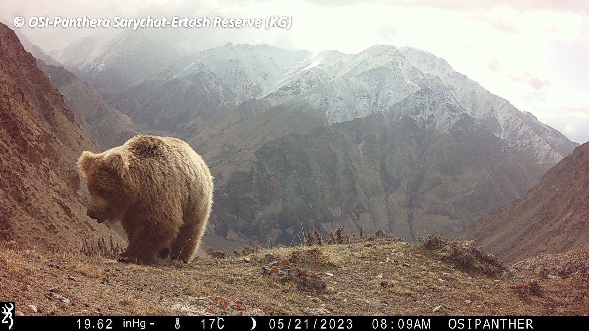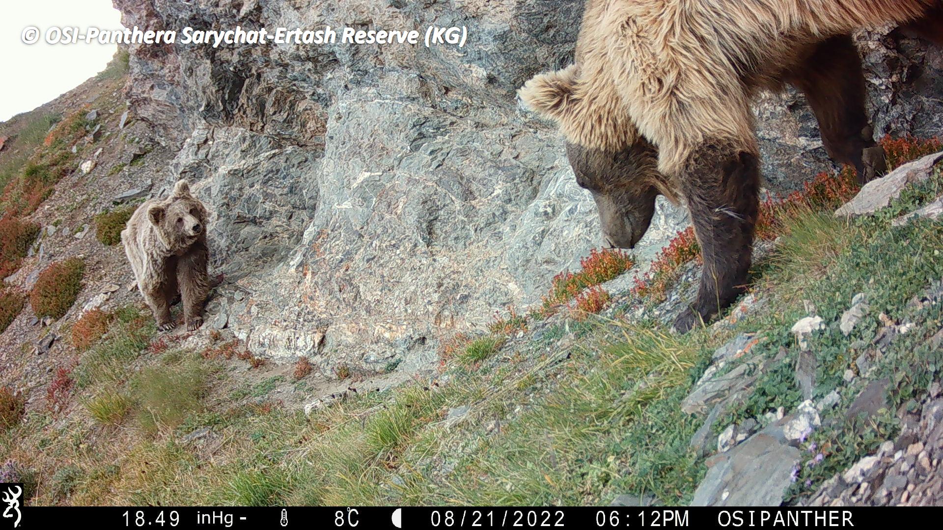 Un des pièges photos est HS depuis avril 2023, probablement abîmé par un ours. Mais on y observe malgré tout des photos de panthères, d’un sanglier et d’ours dont un jeune.