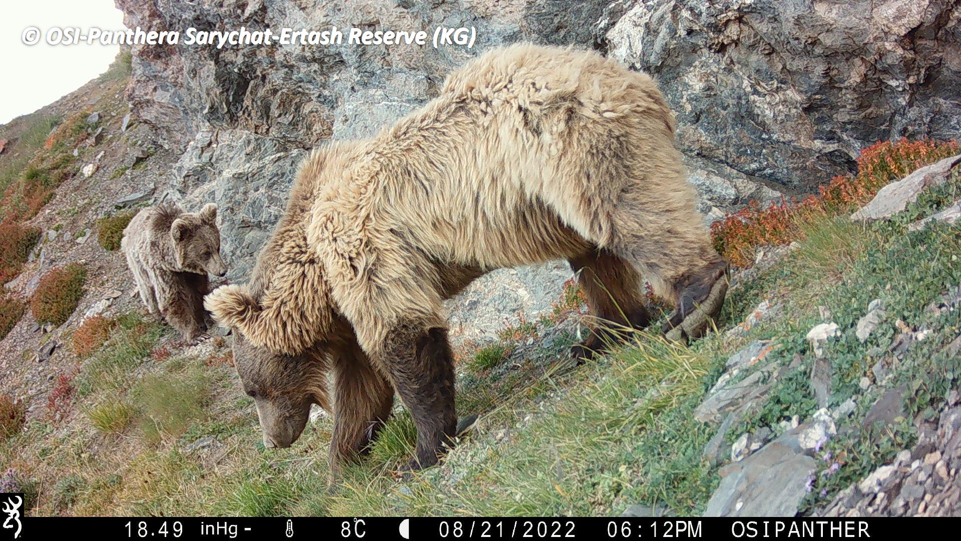 Sous le vallon de Uch Baital nous avons aussi eu la chance de faire une superbe observation d’un Ours brun d’environ deux ans pendant 5 longues minutes. Il sortait du vallon insouciant, bomdissant, glanant, il est descendu vers nous puis il a finit par nous entendre ou sentir, il s’est arrêté avant de prendre la fuite et de traverser tout le versant pour sortir sur une petite crête. Nous étions en fin d’après-midi, la lumière sur ses poils créait un halo qui l’entoura tout le temps de l’observation.