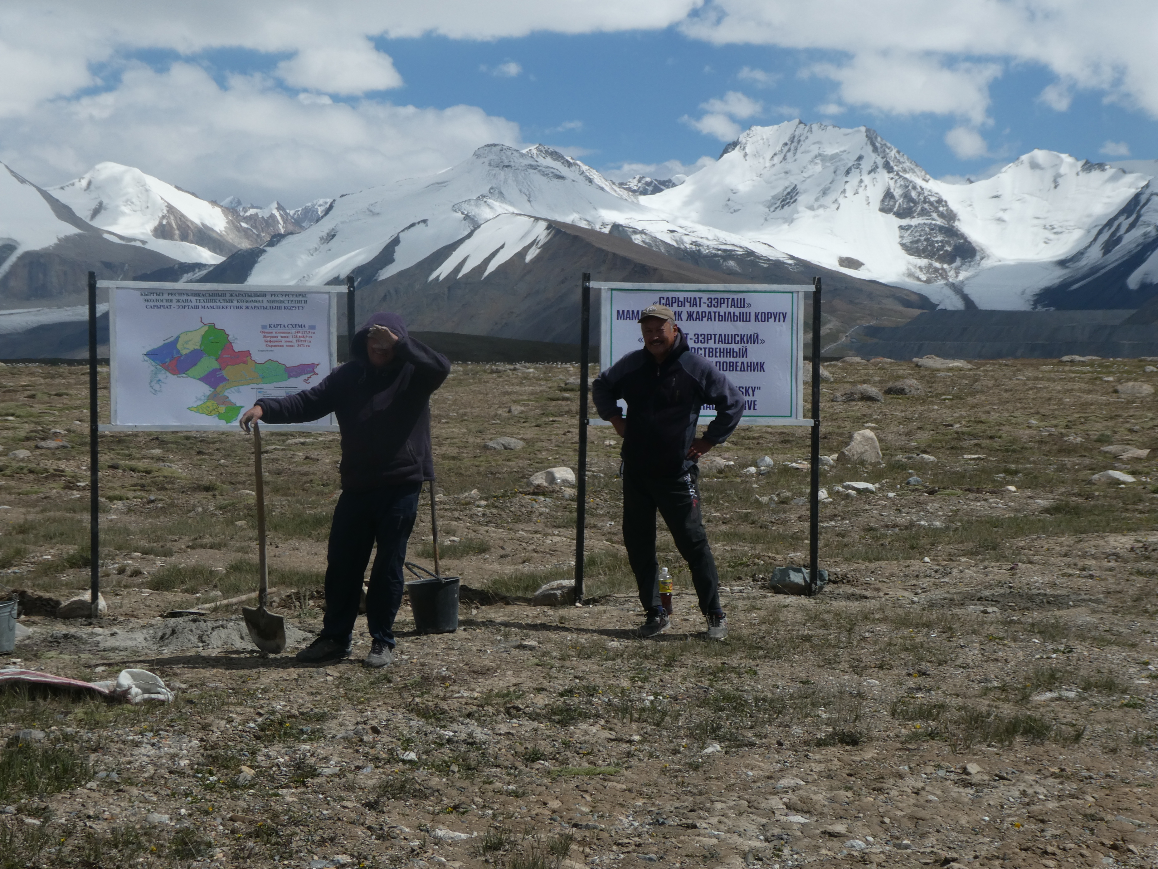 Après le passage obligé à Uch Kochkon (village des gardes) pour l’enregistrement au second poste militaire (poste frontalier car nous sommes à moins de 50 km de la frontière chinoise), l’équipe file sans encombre jusqu’aux portes de la réserve de Sarychat.
