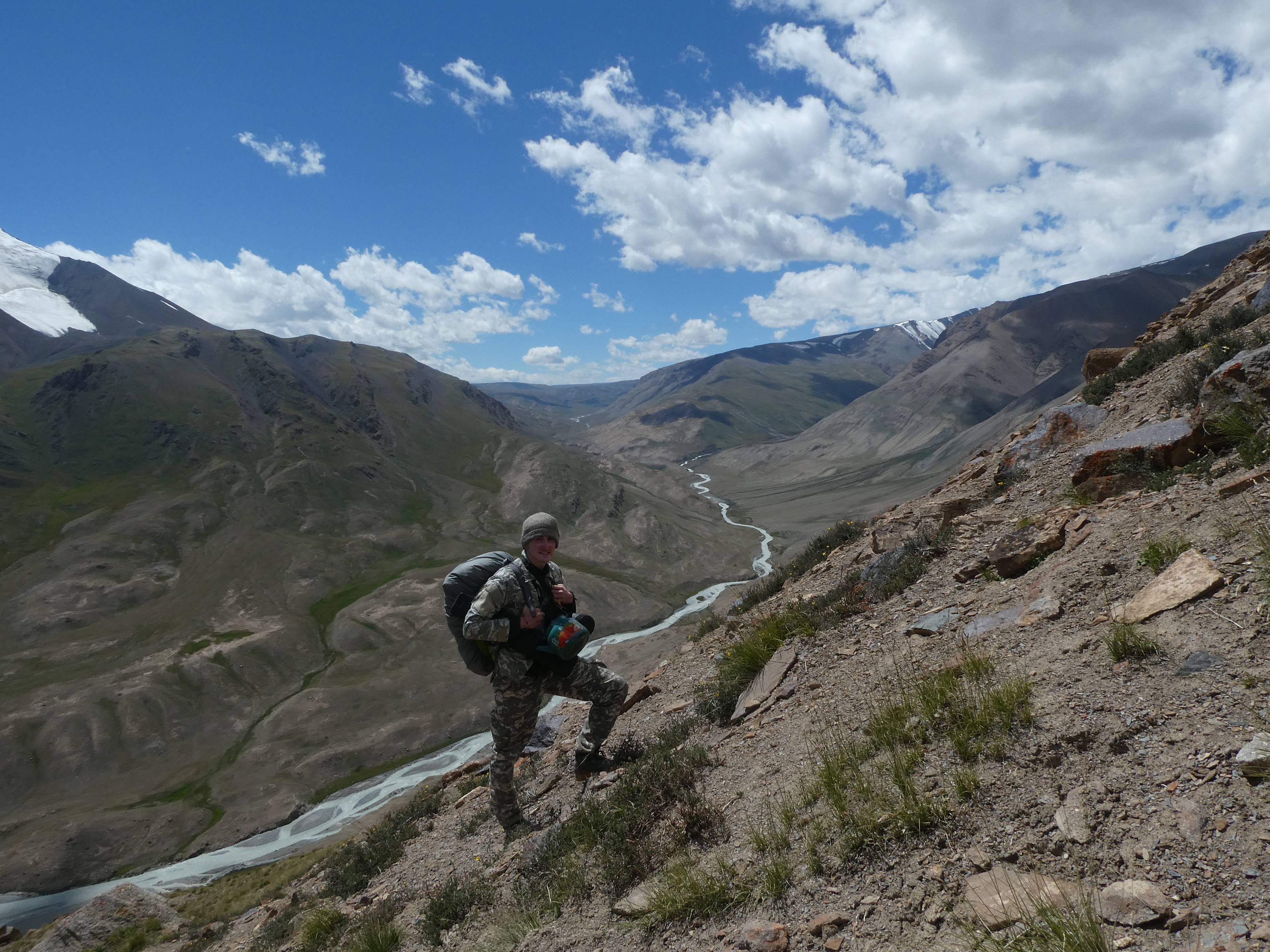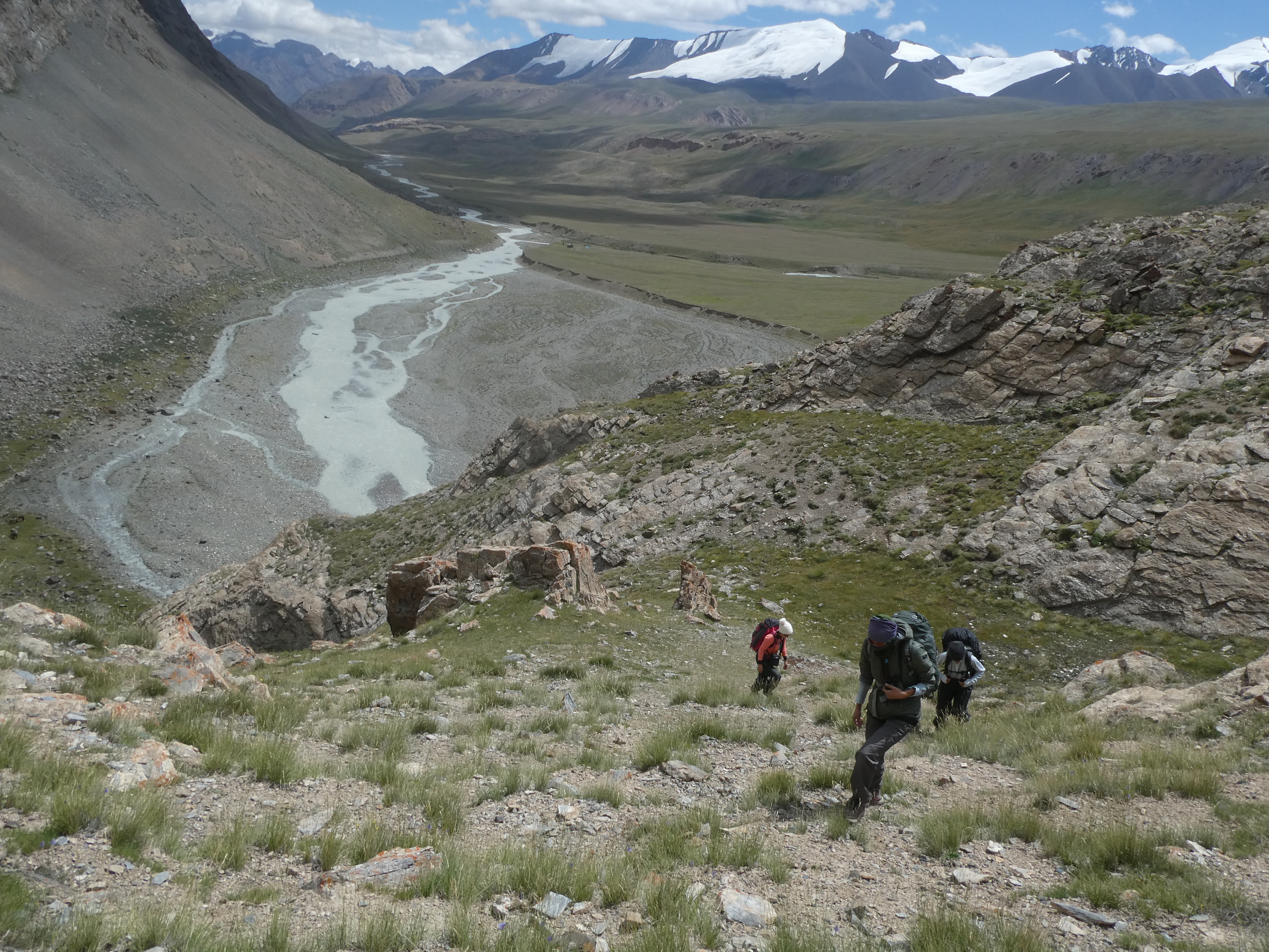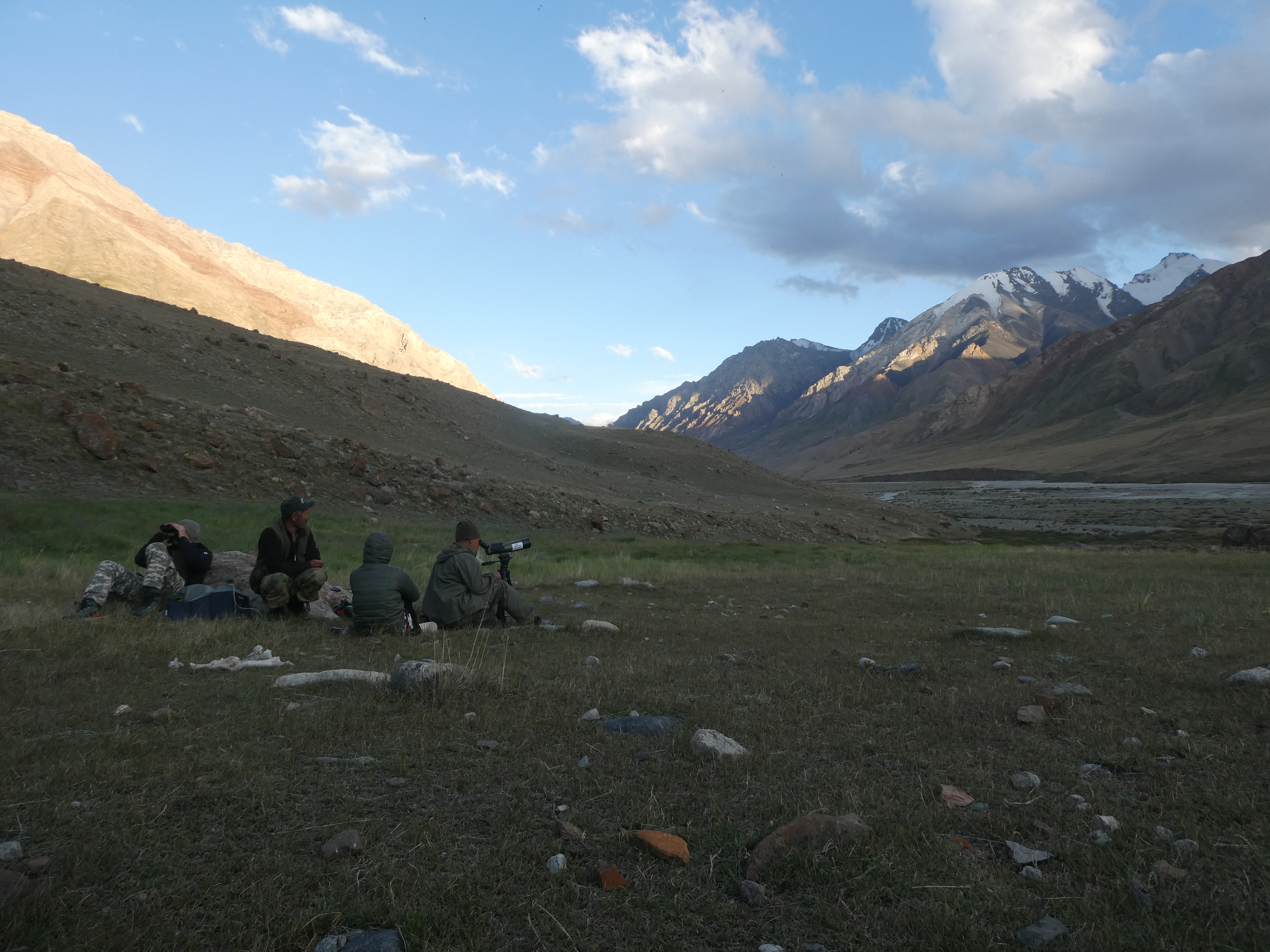 Démarrage de la montée vers le col où ils ont pu observer des Yacks (très peu manipulés par leurs propriétaires au Kirghizstan) et quelques argalis (mouflons de Marco Polo, très prisés par les chasseurs et braconniers, y compris dans la réserve bien que protégés sur cet espace).