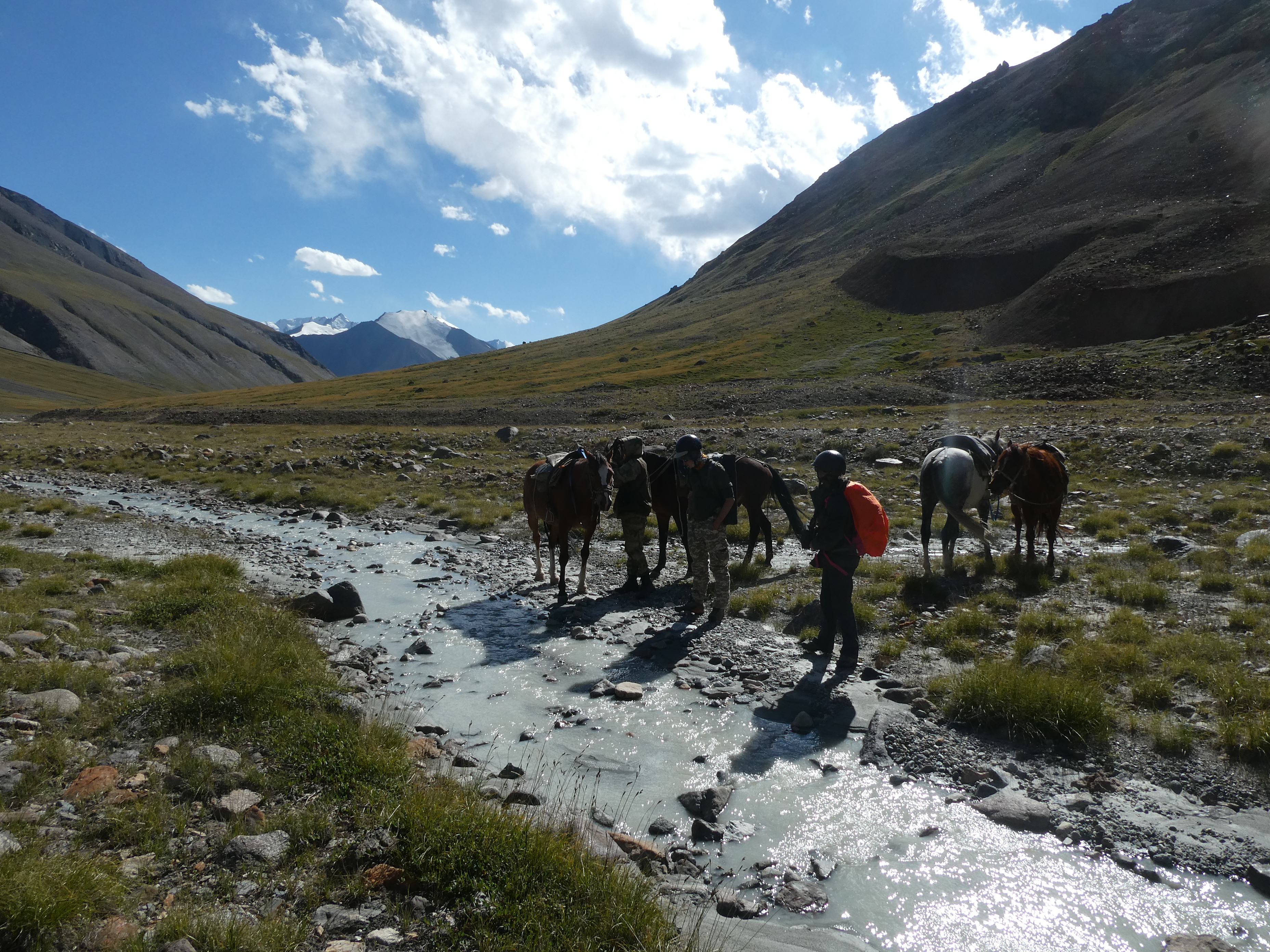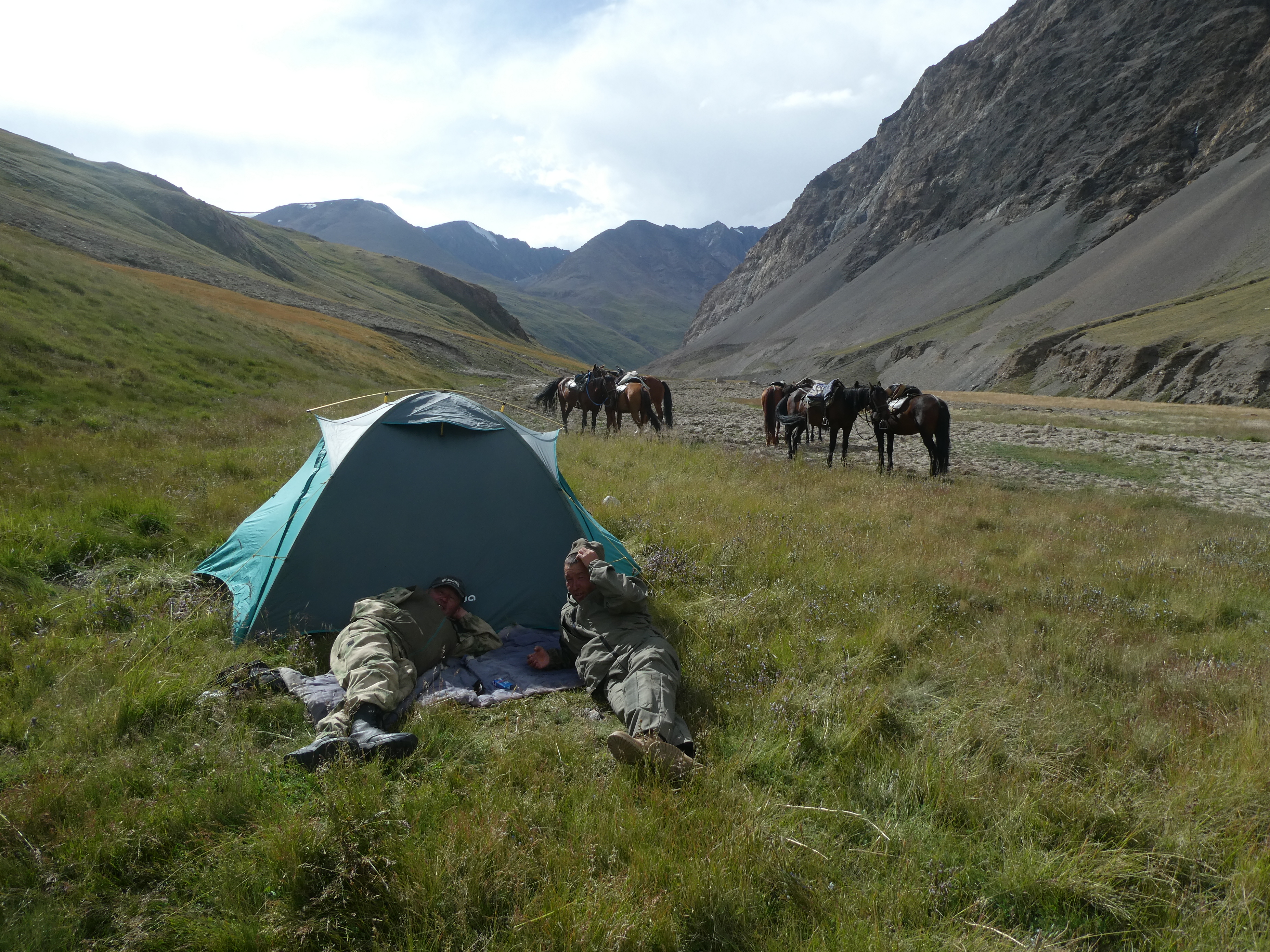 Un petit message hier soir via le téléphone satellite. Le groupe est à Kuyundu au camp zéro (point de départ de l’expédition accessible en 4X4). Le groupe découvre la vallée (Kuyun = lièvre). En fin d’après-midi ils sont allés observer une aire d’aigles royaux à la longue vue, elle est inoccupée cette année. On profite souvent de cette journée pour s’acclimater un peu à l’altitude (le camp est déjà à 3400m) mais ils ont gagné en fraicheur. L’endroit est sauvage au bord d’un torrent de montagne, avec les troupeaux. Il leur manque 4 chevaux mais ils ont bon espoir que la situation se règle demain matin pour le départ vers le col de Sarychat, puis la descente vers l’Ertash, la vallée sauvage qui sera leur terrain de jeu désormais.