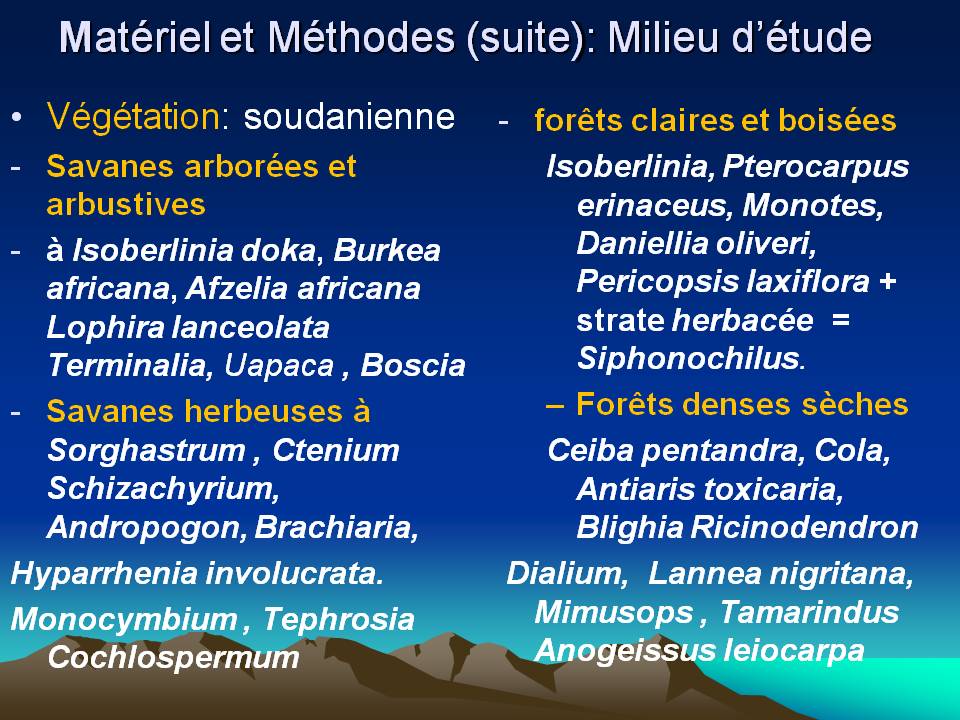 [23] Houinato, M.R.B. 2001. Phytosociologie, écologie, production et capacité de charge des formations végétales pâturées dans la région des Monts Kouffé, Bénin. Thèse de doctorat. Fac.Sc.Lab. de Systématique et de Phytosociologie, ULB. Bruxelles, Belgique. 219p