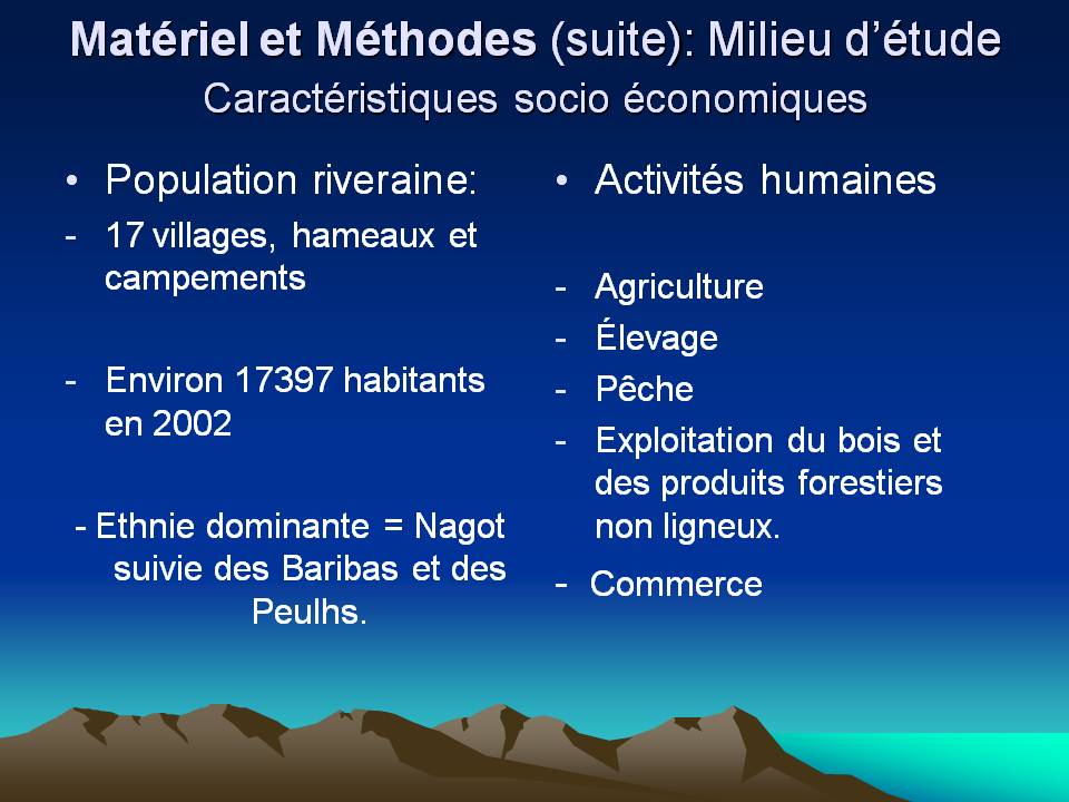Une population riveraine de la forêt classée de Wari-Maro d’environ 17 397 habitants est établie dans 17 villages, hameaux et campements [25]. Les principaux groupes socioculturels sont les Nagots (autochtones) représentant l’ethnie dominante, les Baribas et les Peulhs qui mènent des activités agropastorales et halieutiques. Les problèmes qui menacent la forêt classée de Wari-Maro sont le braconnage, les feux de brousse tardifs, l’exploitation illicite du bois, les pâturages illicites par les pasteurs transhumants, la pêche avec des méthodes prohibées. Afin de contrôler la forte pression anthropique nocive à la durabilité de la forêt et qui se traduit par une raréfaction progressive de la faune [8], le Projet d’Aménagement des Massifs Forestiers (PAMF) a été mis en œuvre de 2002 à 2007 [26].