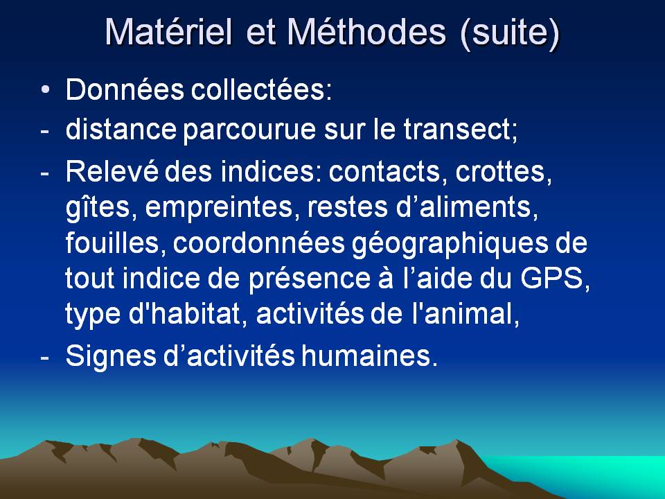 Une distance totale de 654 km a été parcourue pour les 2 recensements effectués en 2004-2005 et en 2006-2007. Un 3e inventaire est actuellement en cours sur le même itinéraire.