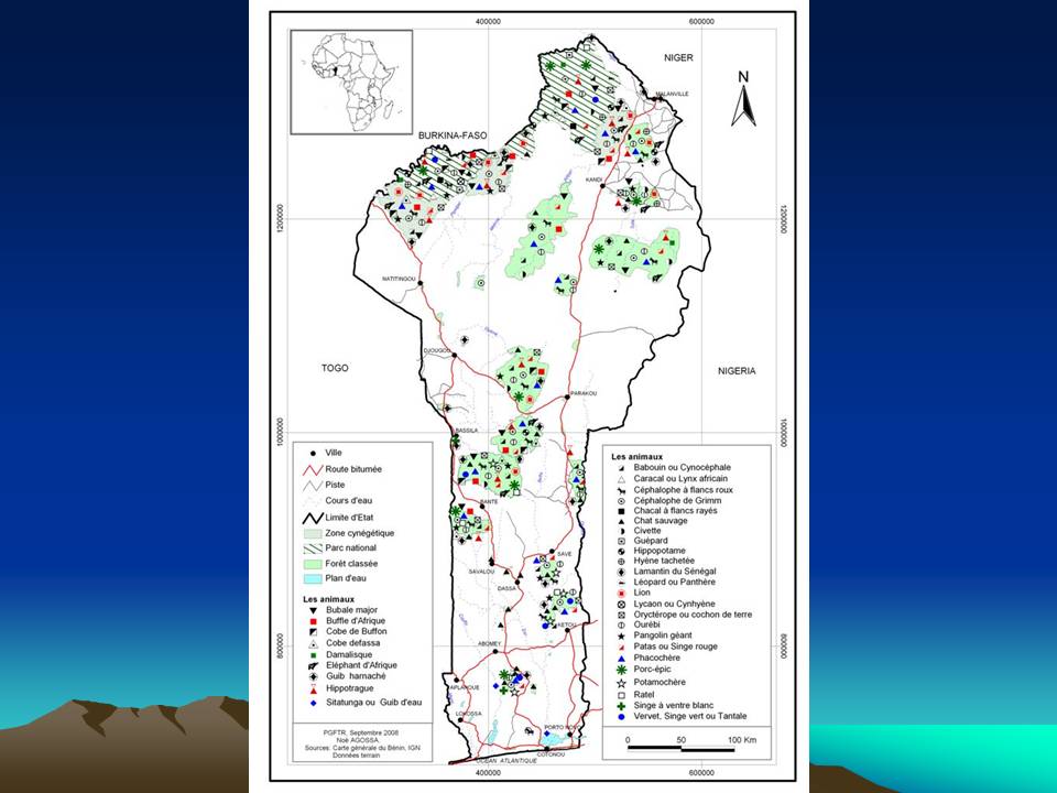 [8] Sinsin, B., Daouda, I., Ahokpè, E. 1998. Abondance et évolution des populations de mammifères des formations boisées de la région des Monts Kouffé au Bénin. Cahiers d’Ethologie, 18 (2) pp 261-281.